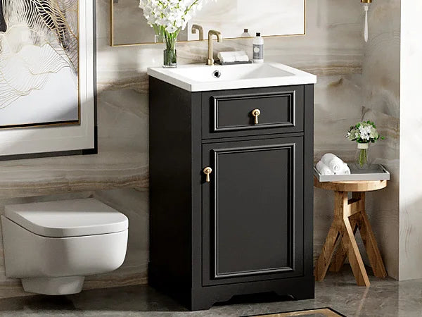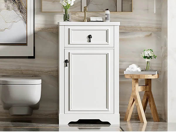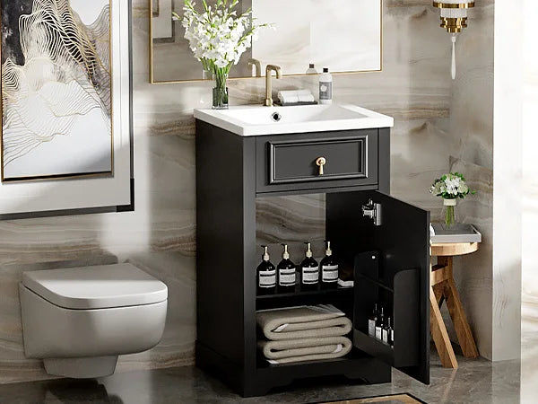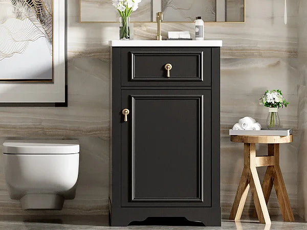 20-Inch Bathroom Vanity with Ceramic Sink, Soft Close Door, Adjustable Shelf, and Door-Mounted Storage Rack