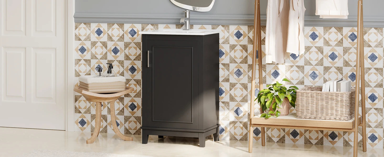 20 Inch Modern Small Bathroom Vanity Cabinet With Ceramic Basin- 20*14.5*33.3 Inches,Ample Storage