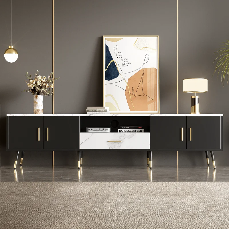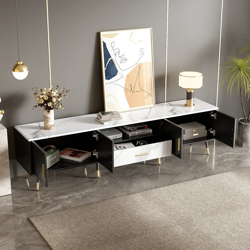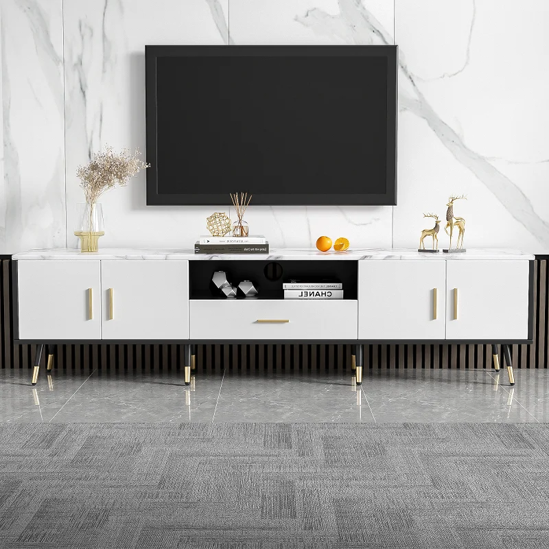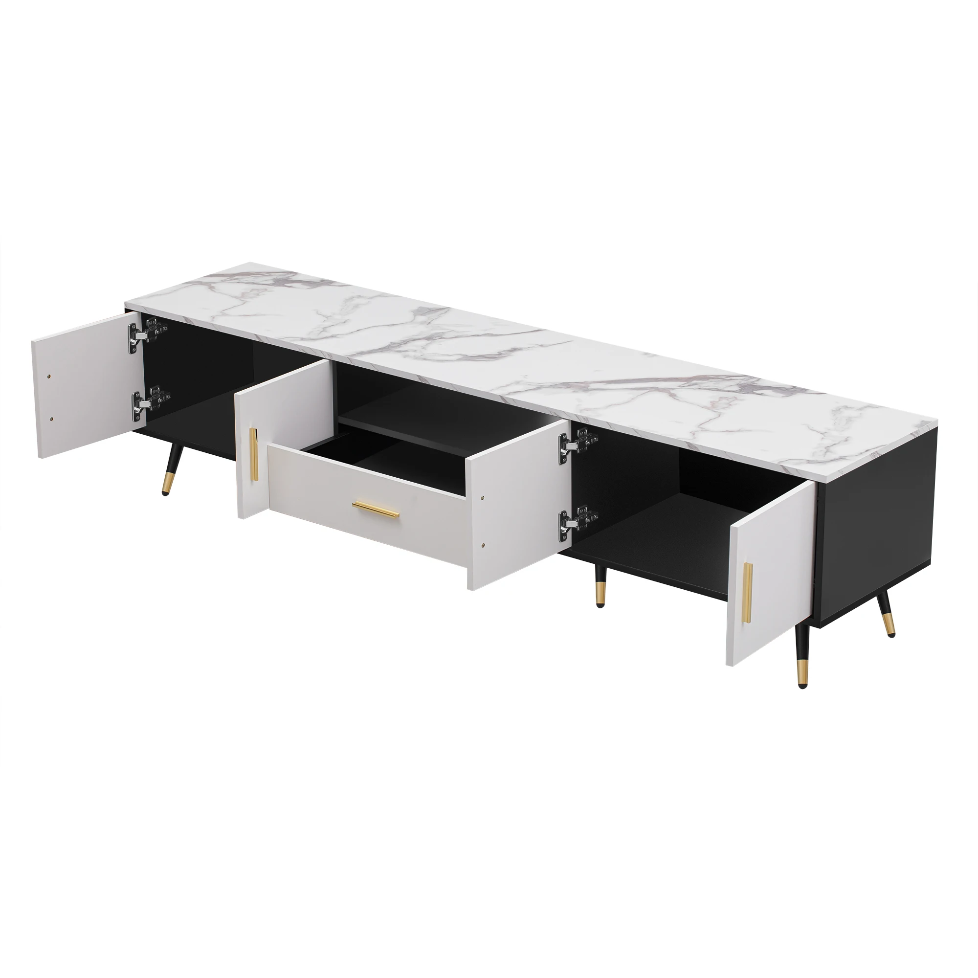 71'' Modern TV Stand with 2 Cabinets& Open Compartments, Entertainment Center for TVs up to 80''