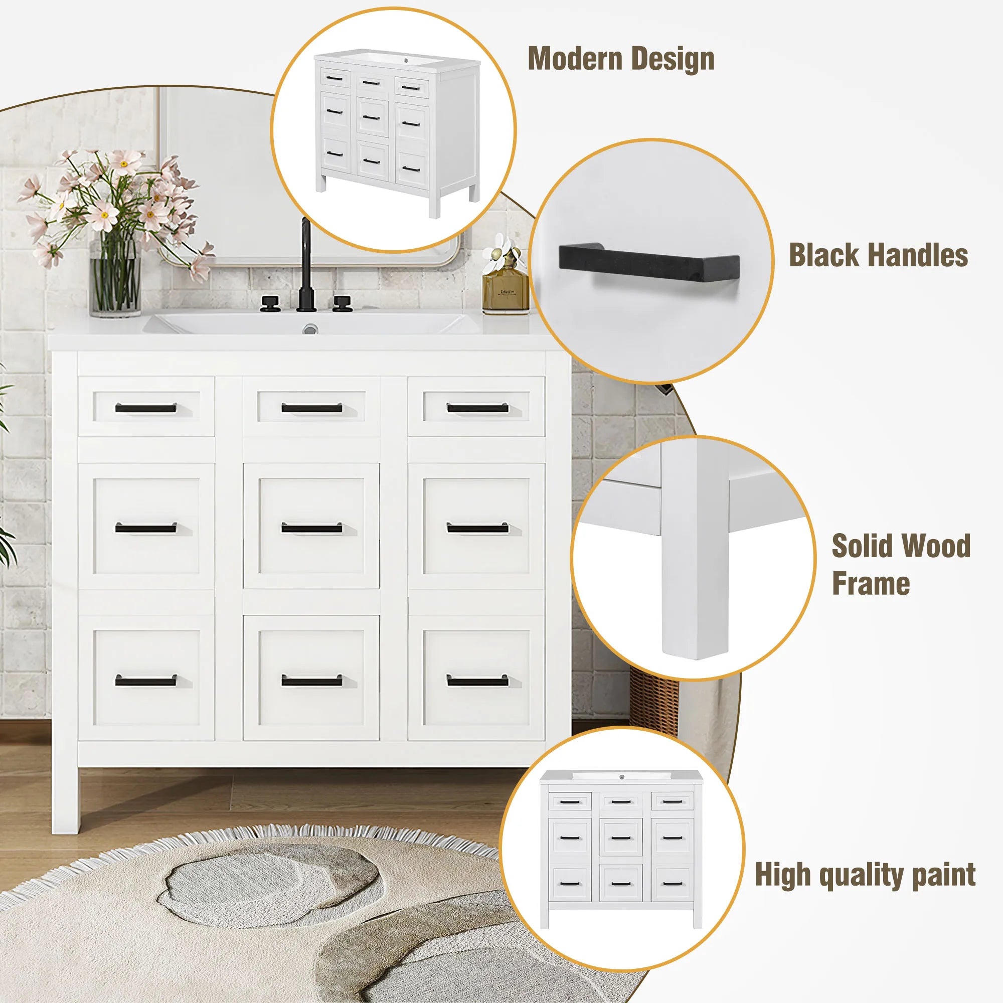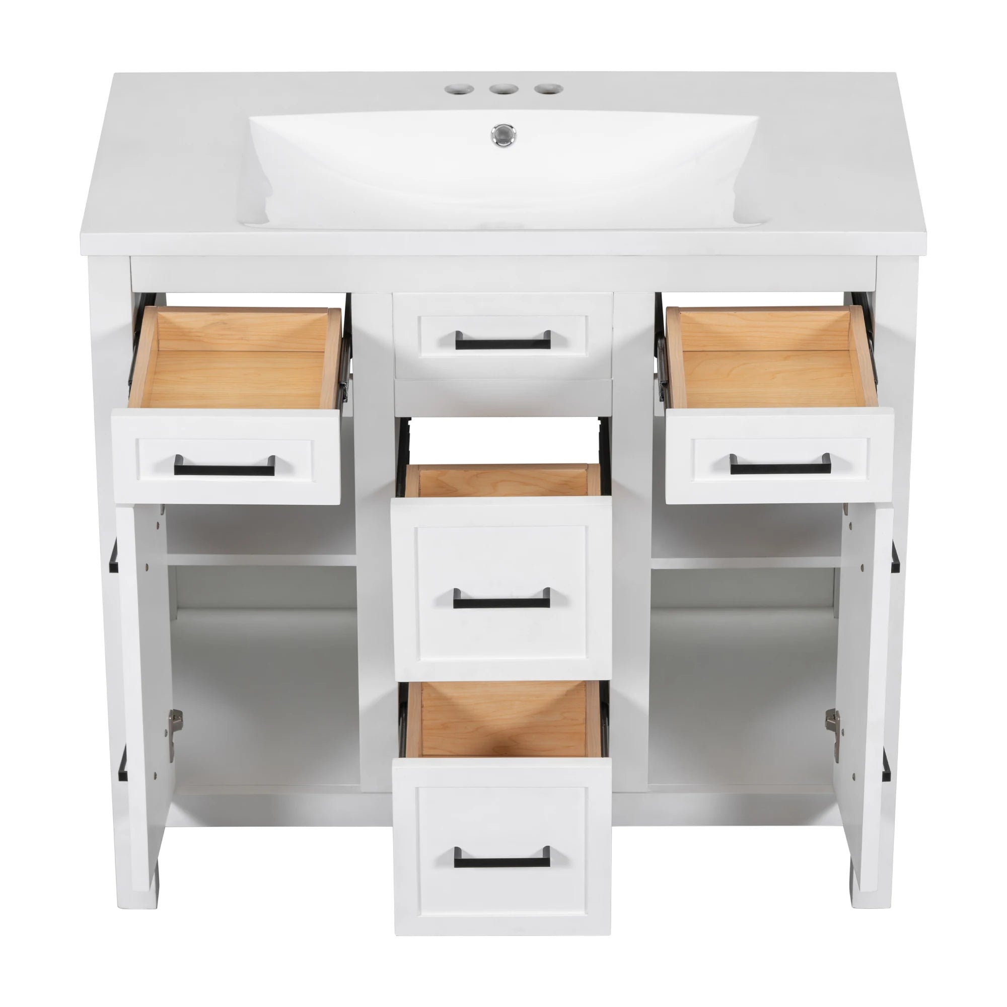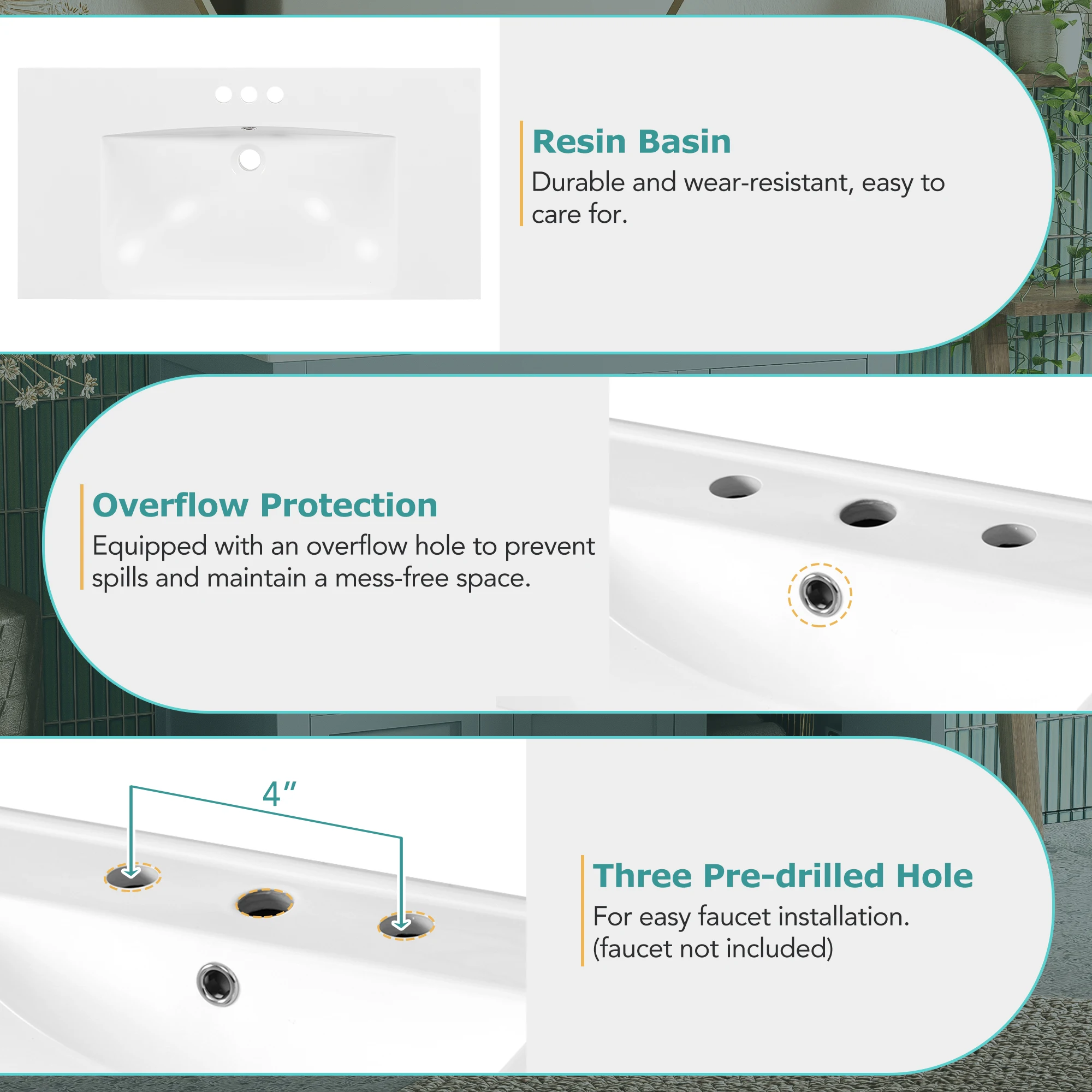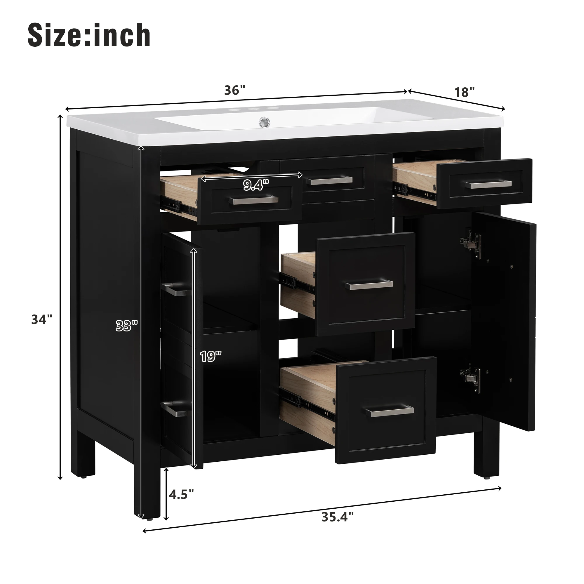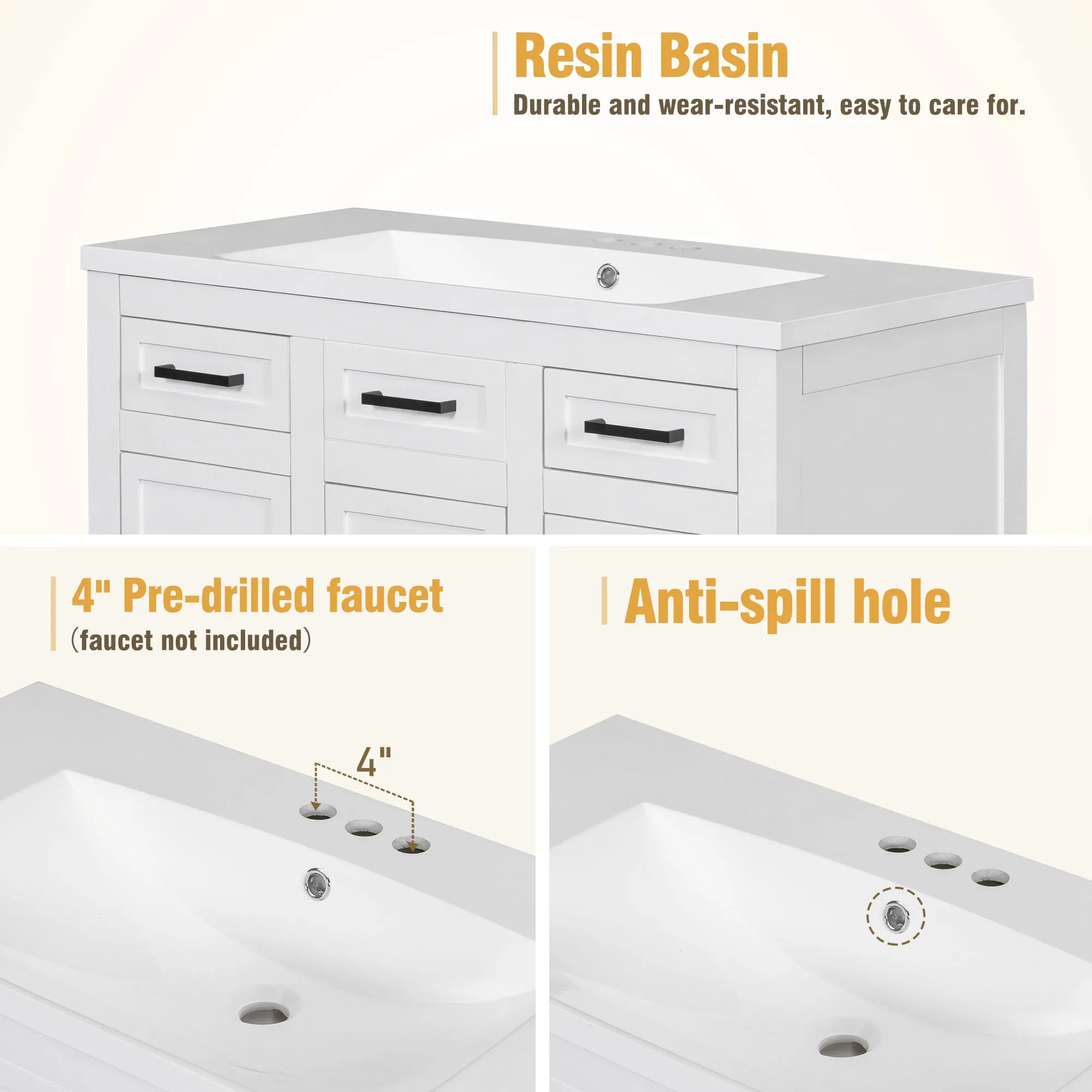 Bathroom Vanity Cabinet with Resin Integrated Sink - 4 Drawers, 2 Doors