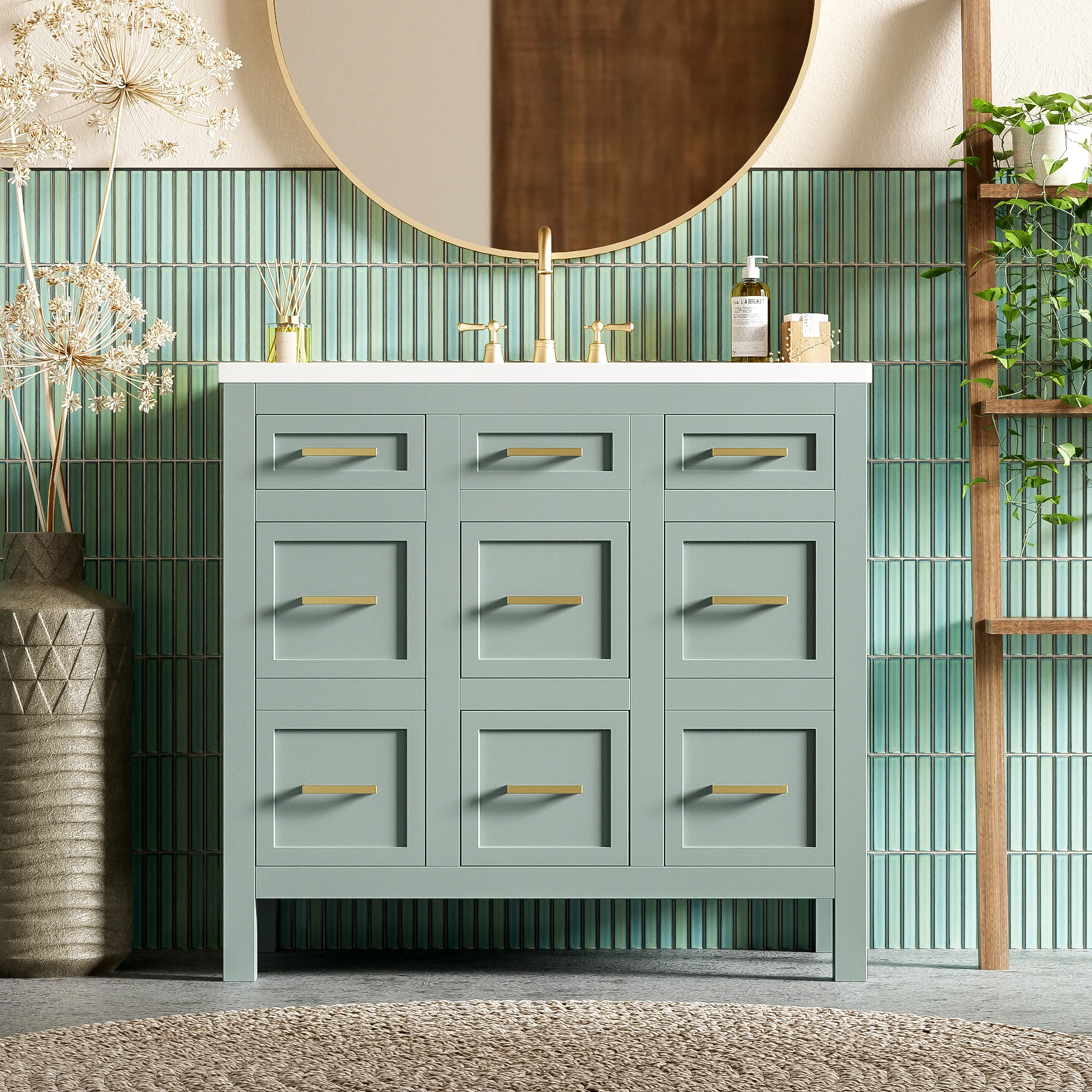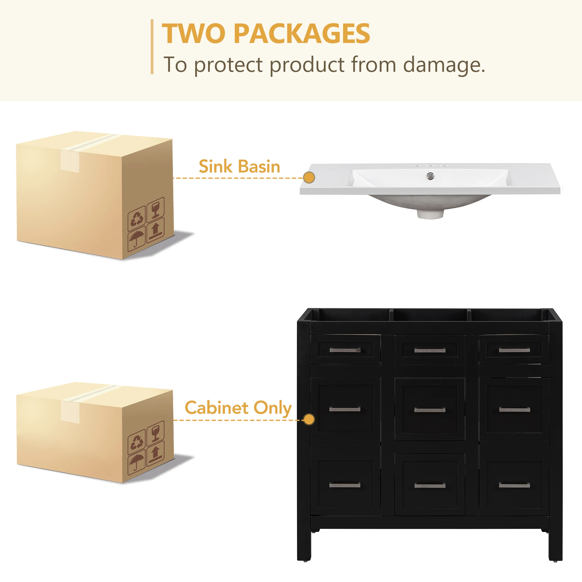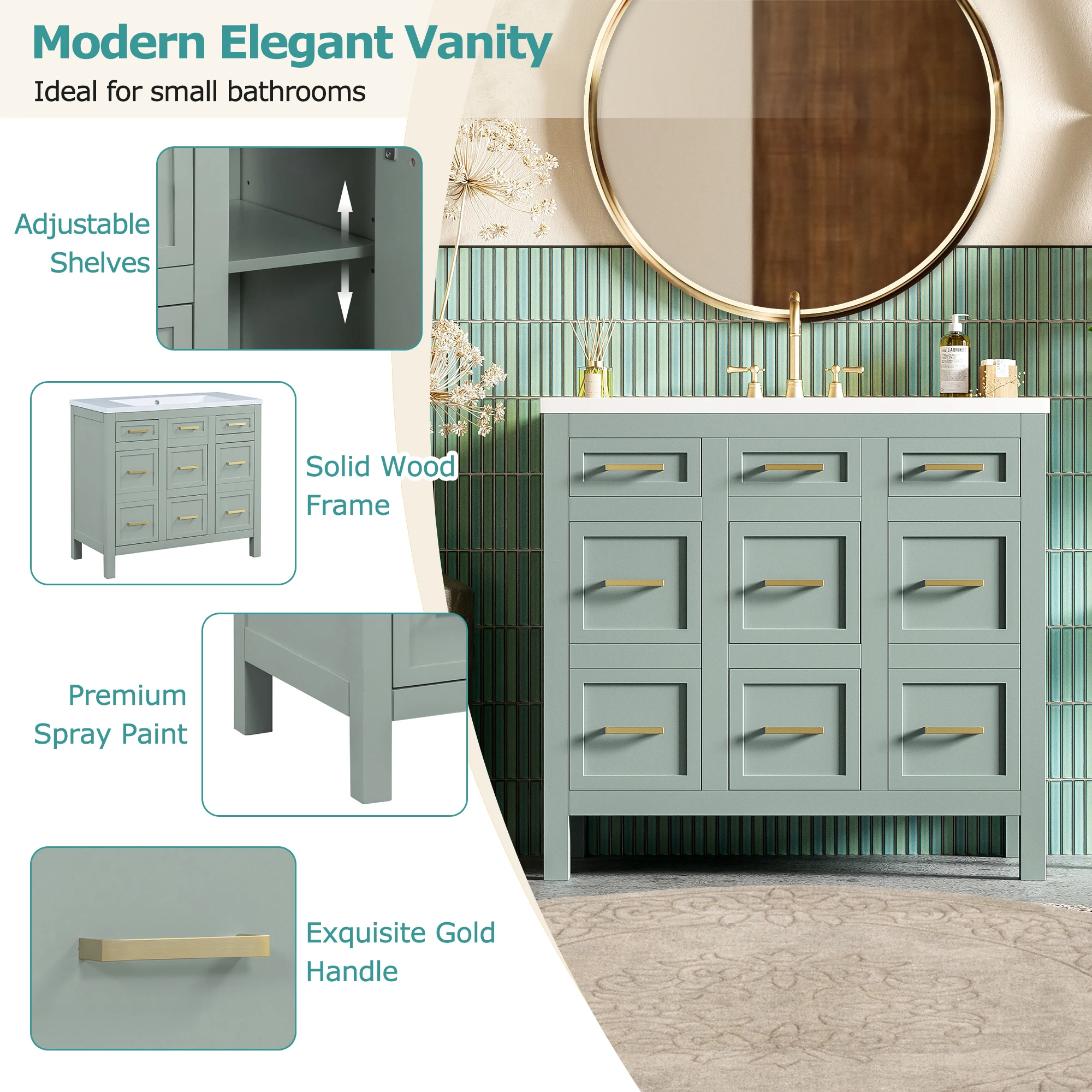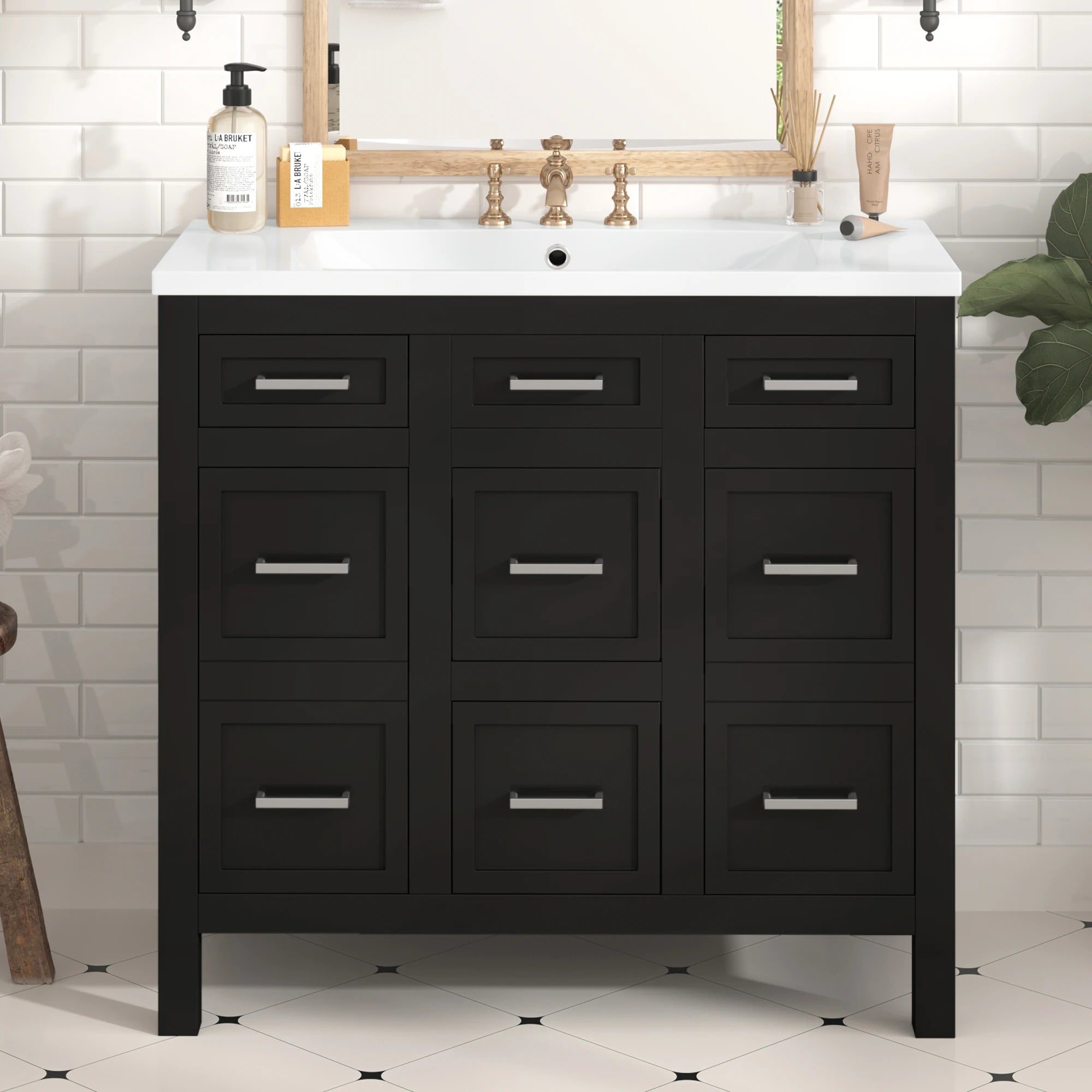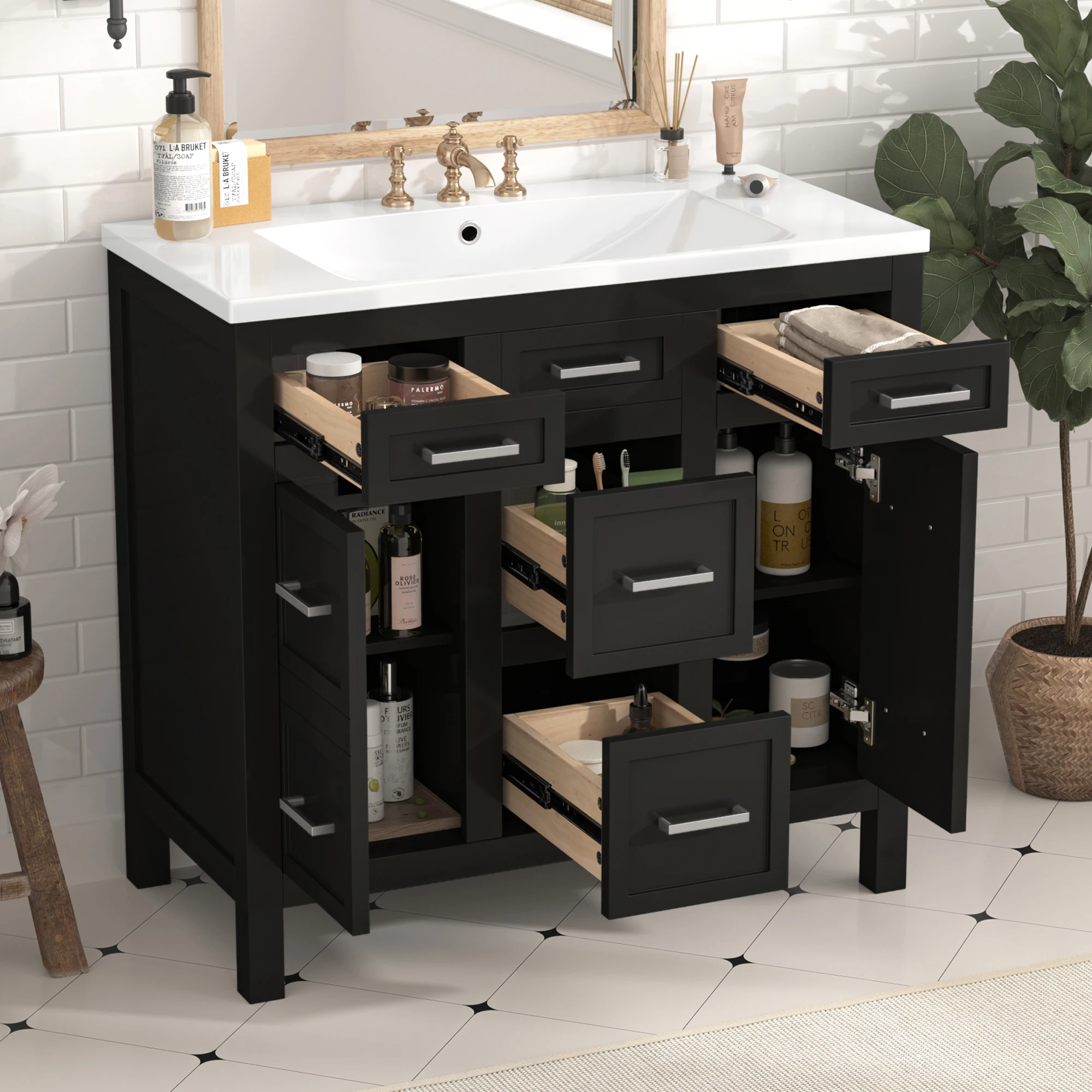 Bathroom Vanity Cabinet with Resin Integrated Sink - 4 Drawers, 2 Doors