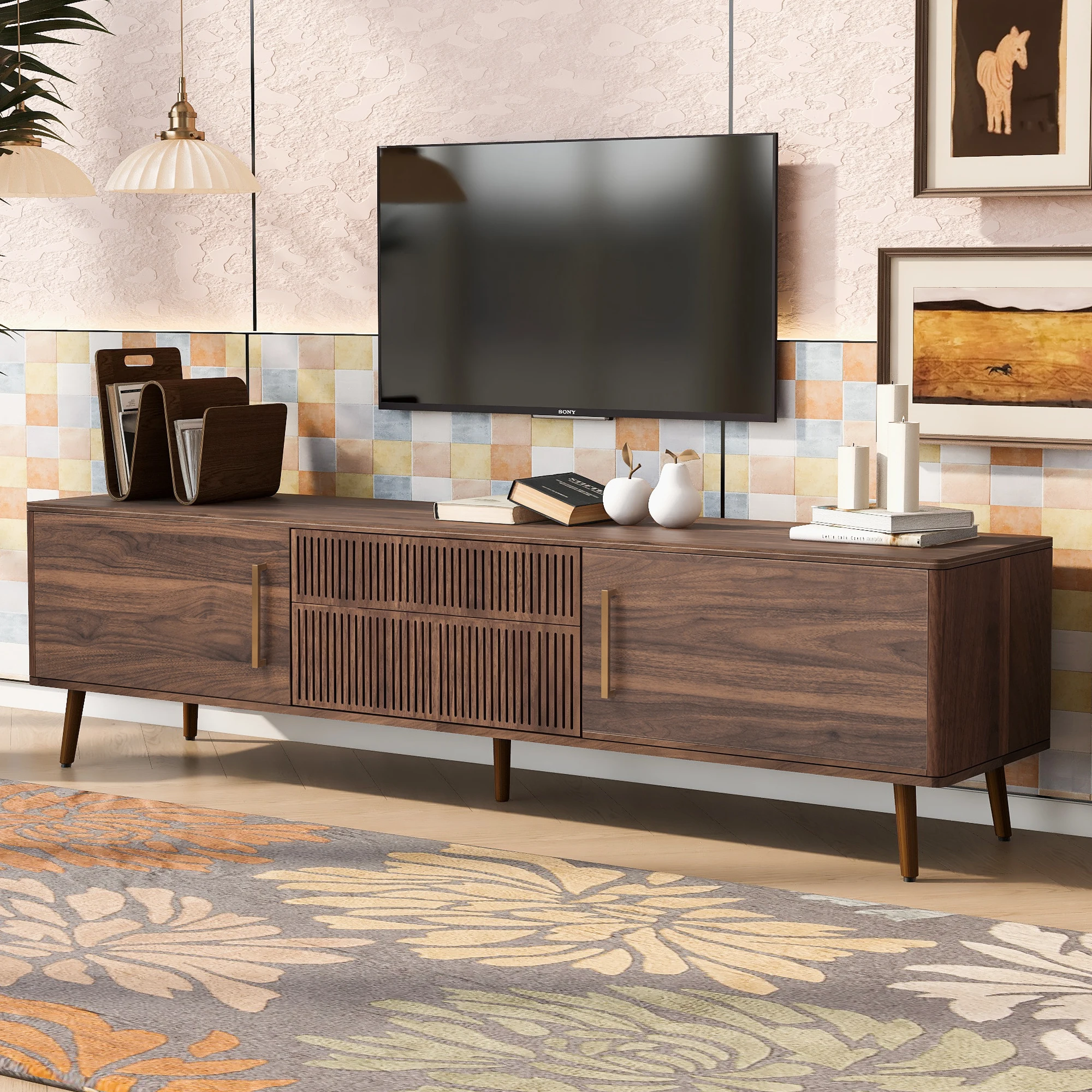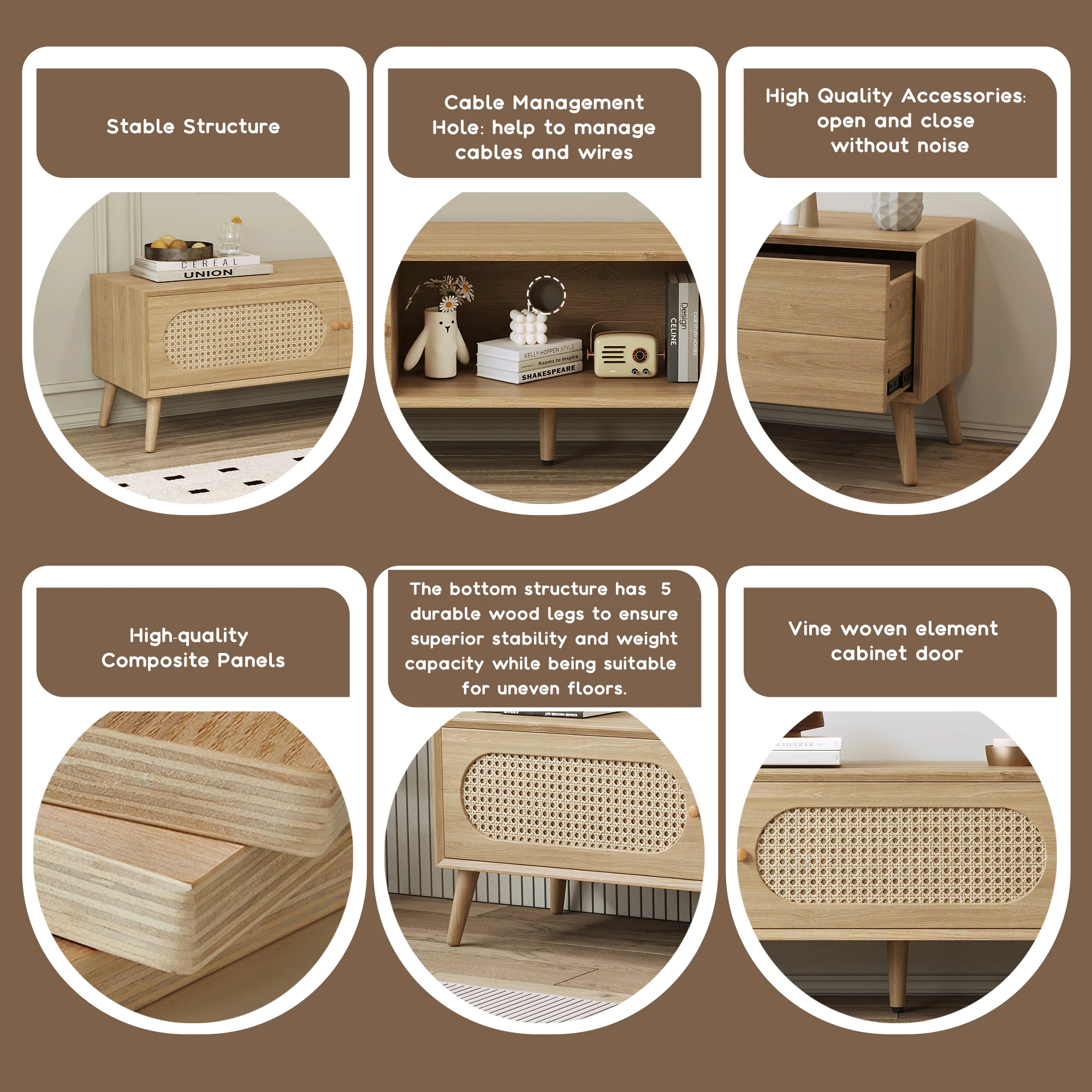 Boho TV Stand for TVs up to 80'' , Modern Farmhouse Media Console, Entertainment Center with Metal Legs