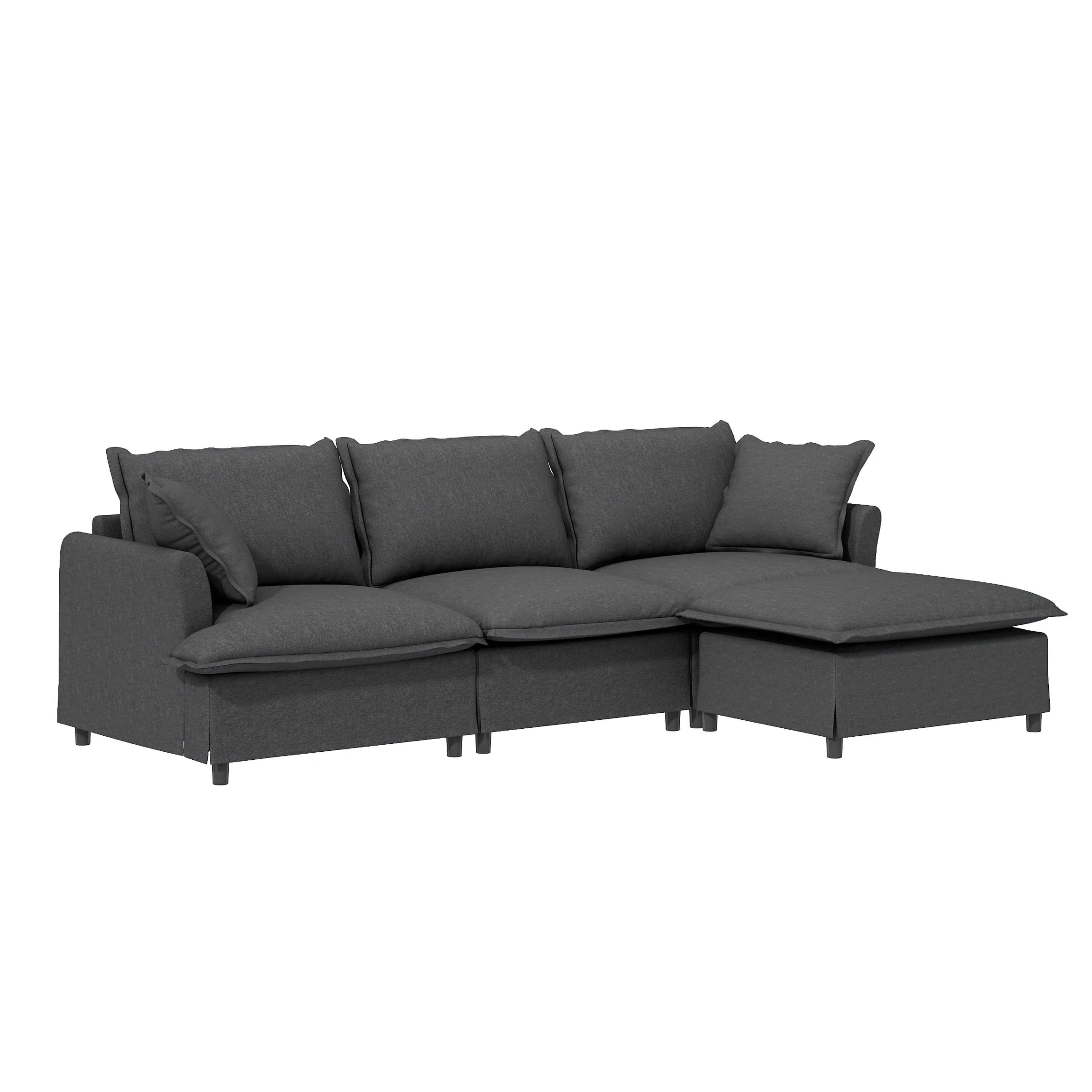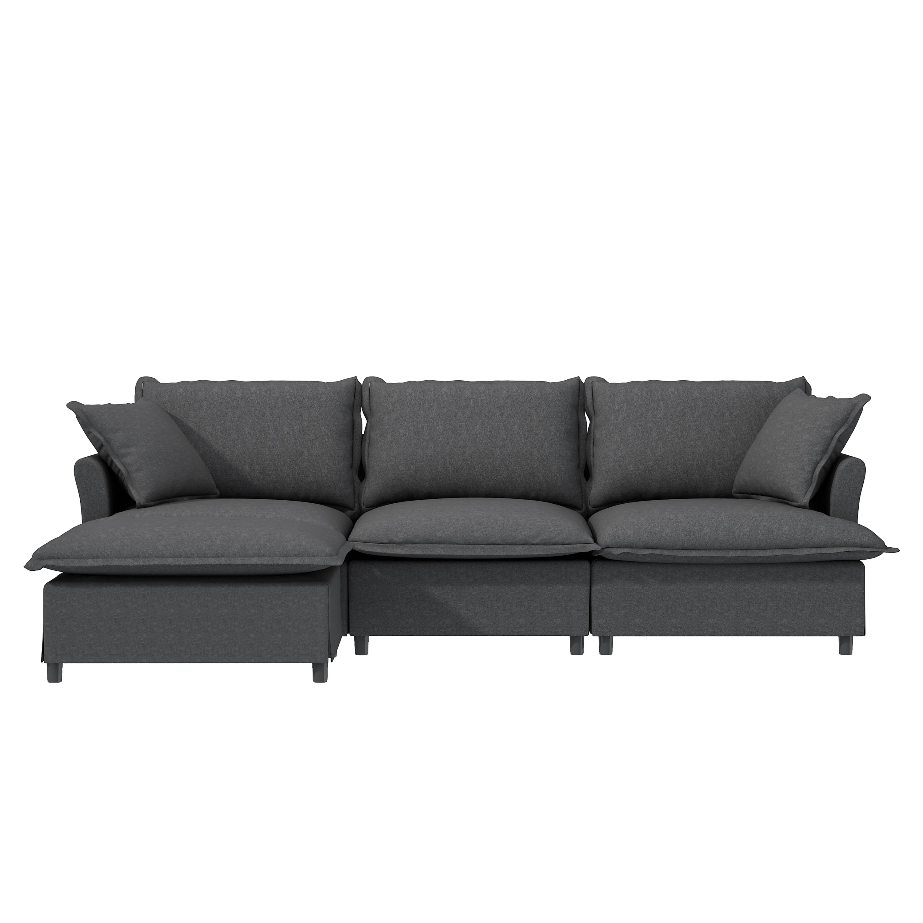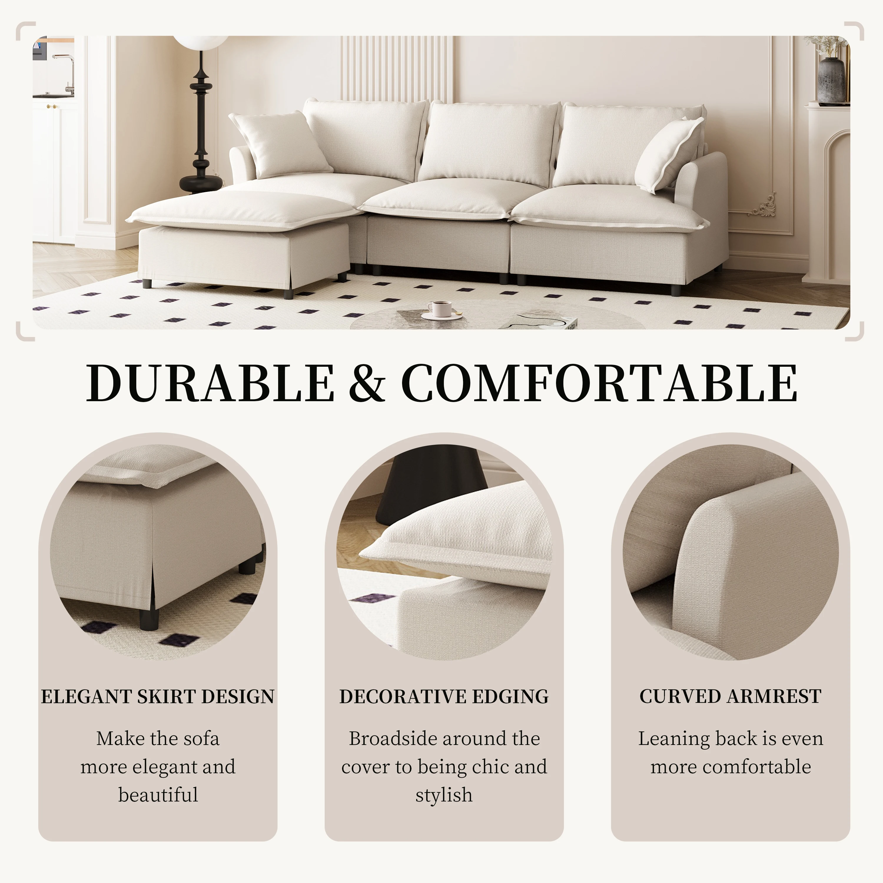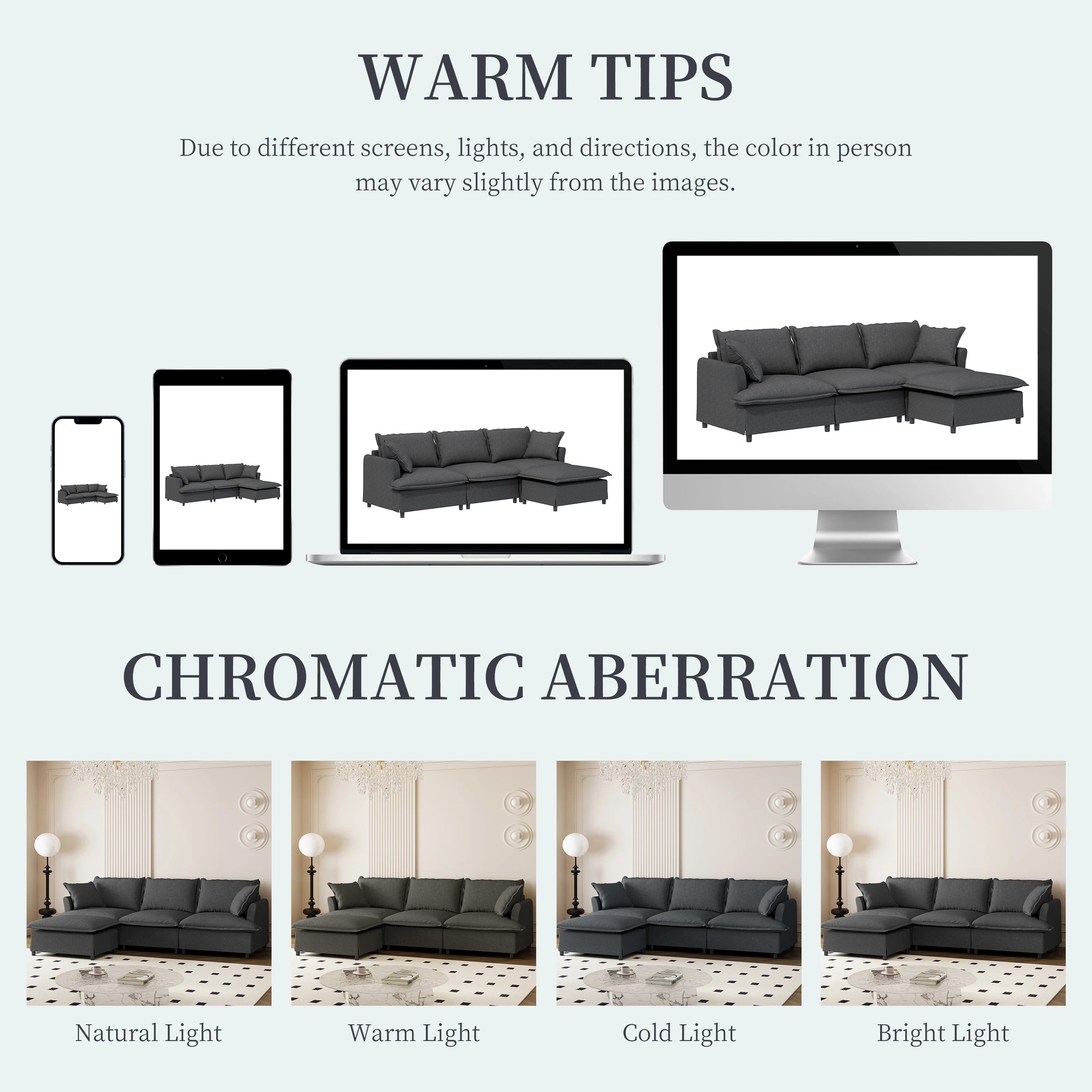 Chenille Sectional Sofa with Ottoman,L Shaped Cloud Couch Set with Throw Pillows,Free Combination,4 Seat Modular Upholstered