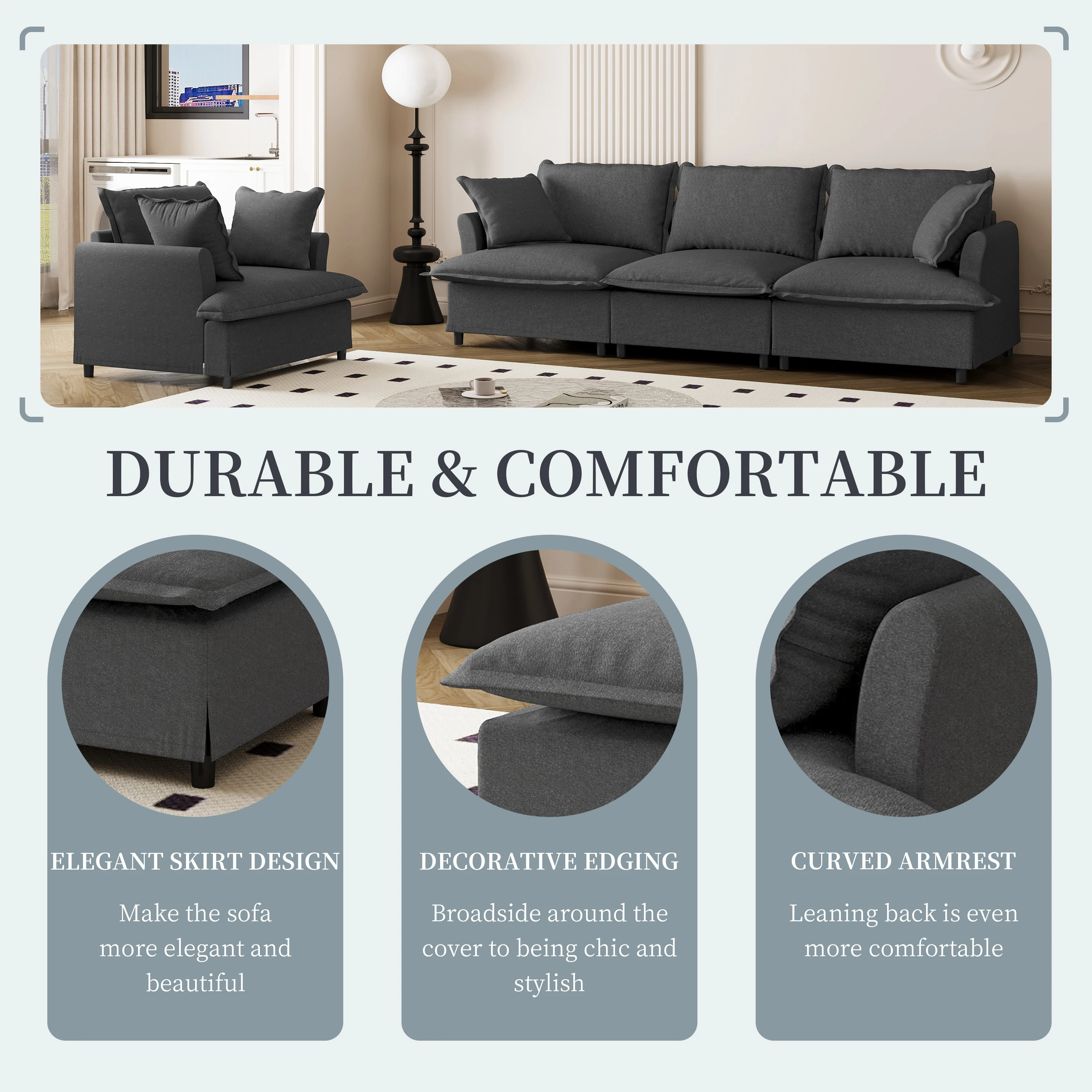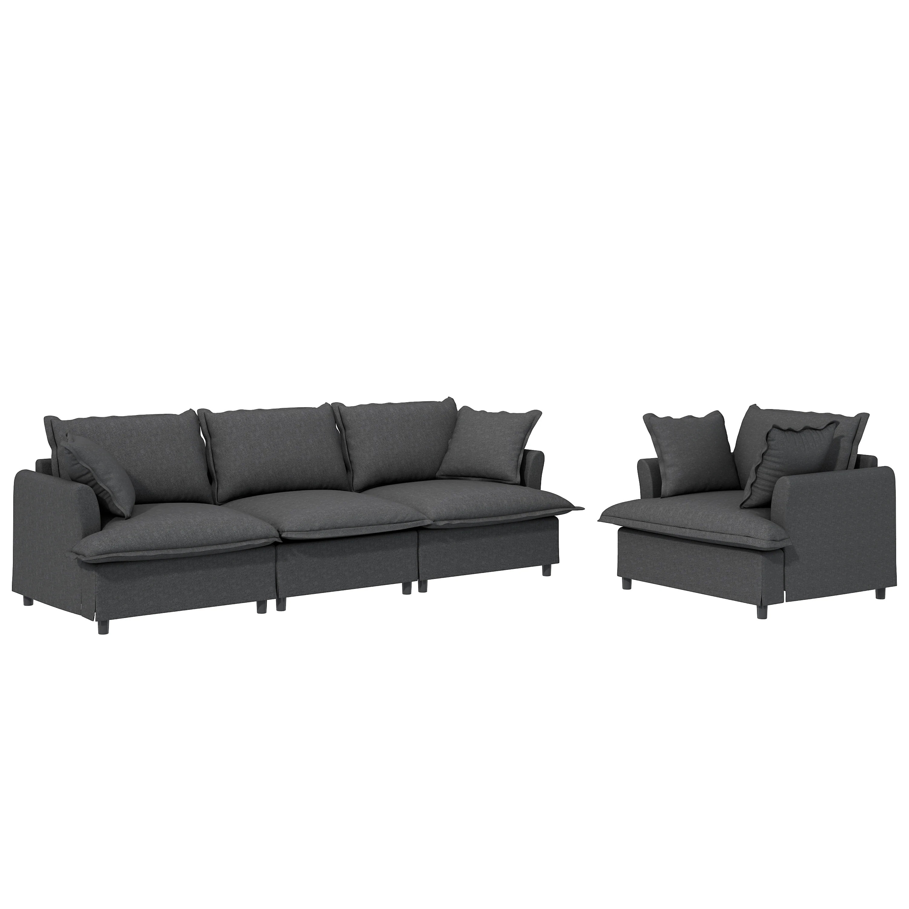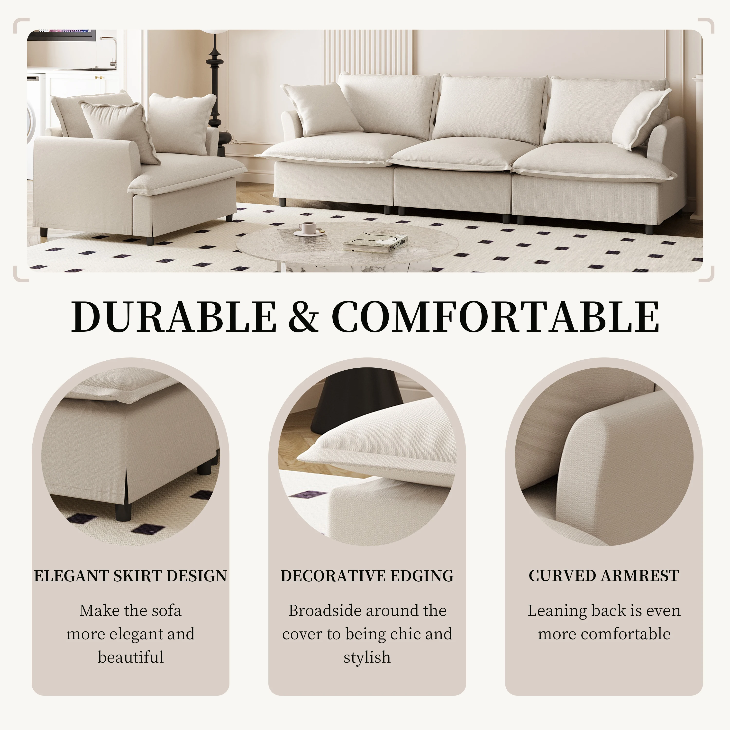 Chenille Sectional Sofa with Ottoman,L Shaped Cloud Couch Set with Throw Pillows,Free Combination,4 Seat Modular Upholstered