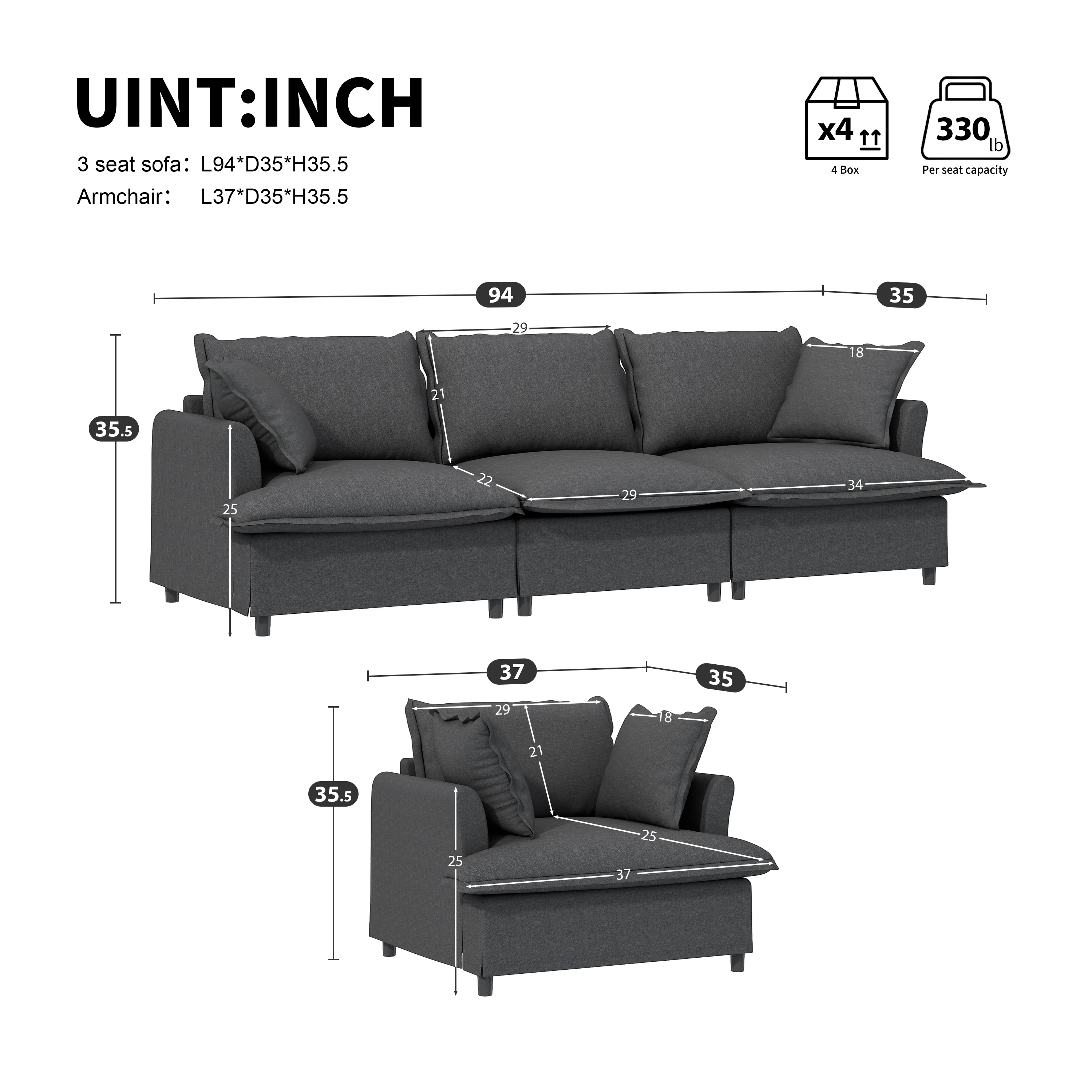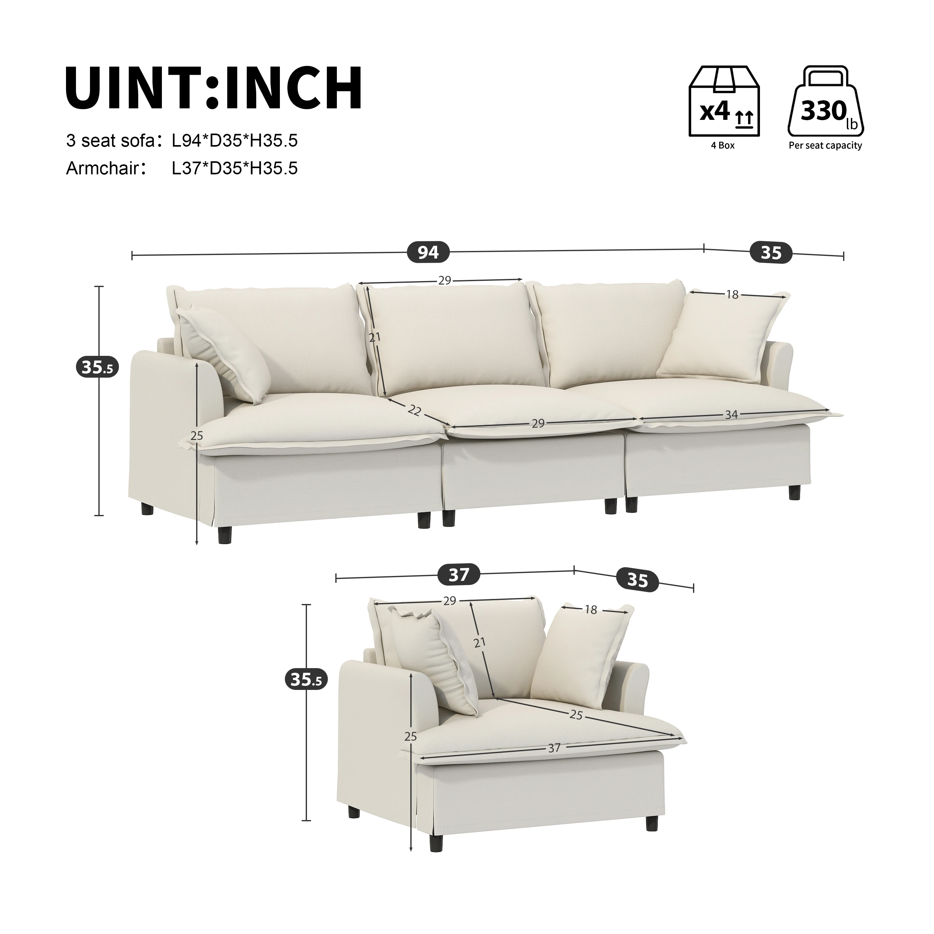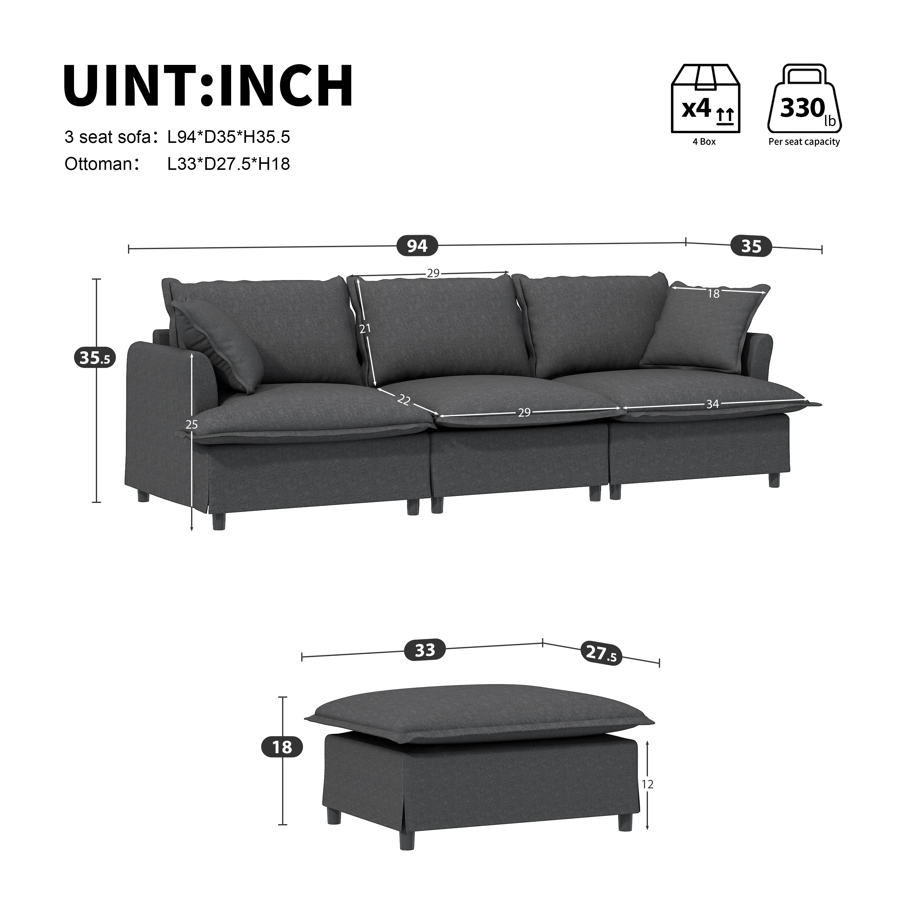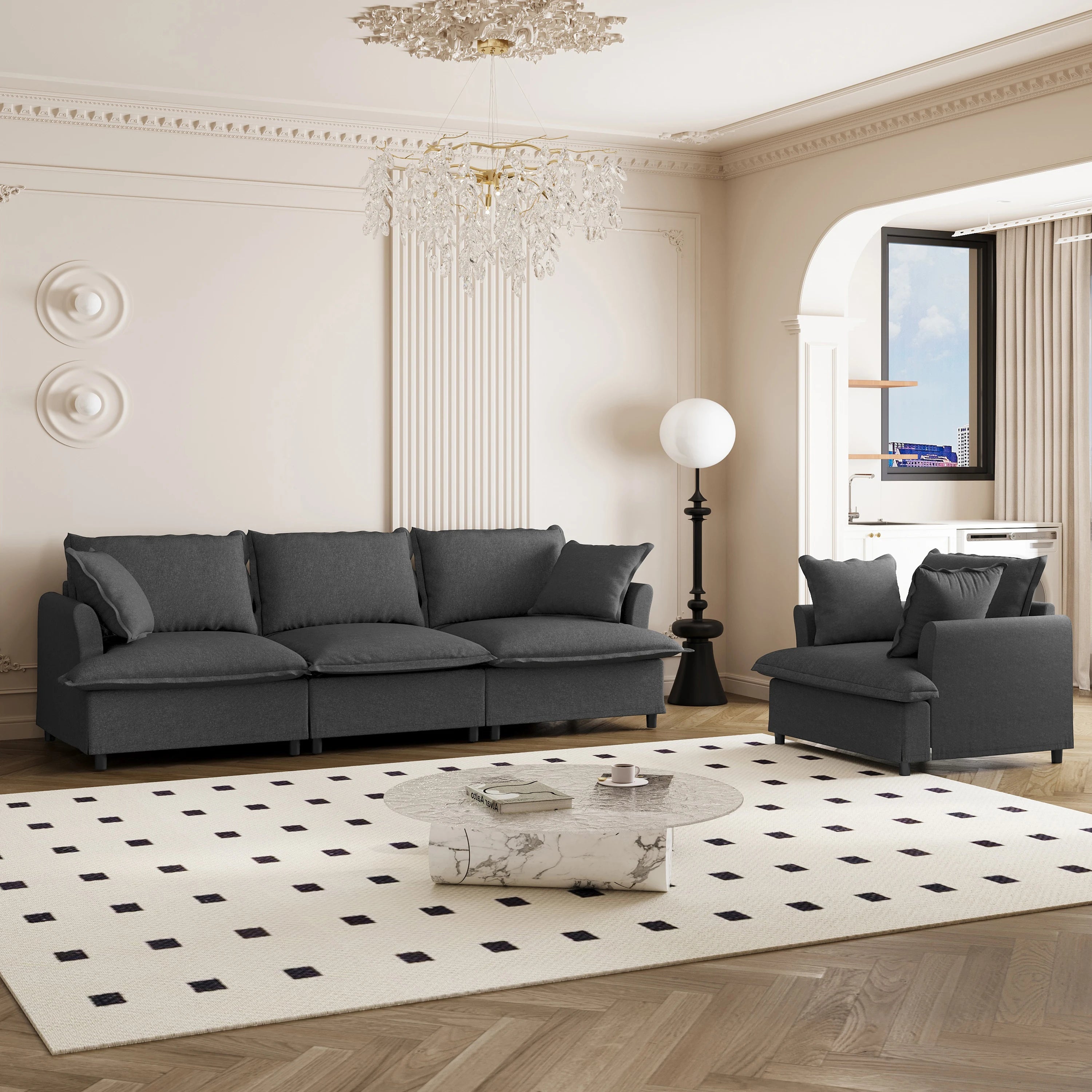 Chenille Sectional Sofa with Ottoman,L Shaped Cloud Couch Set with Throw Pillows,Free Combination,4 Seat Modular Upholstered