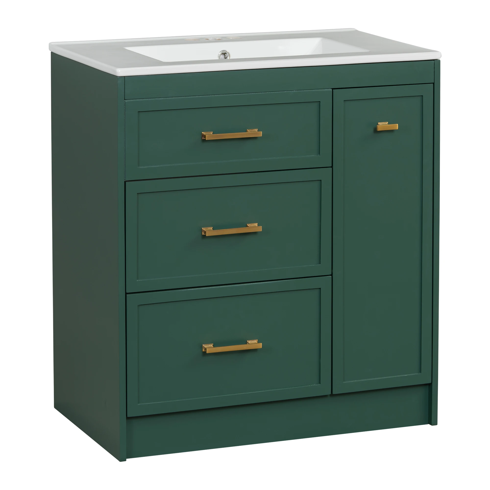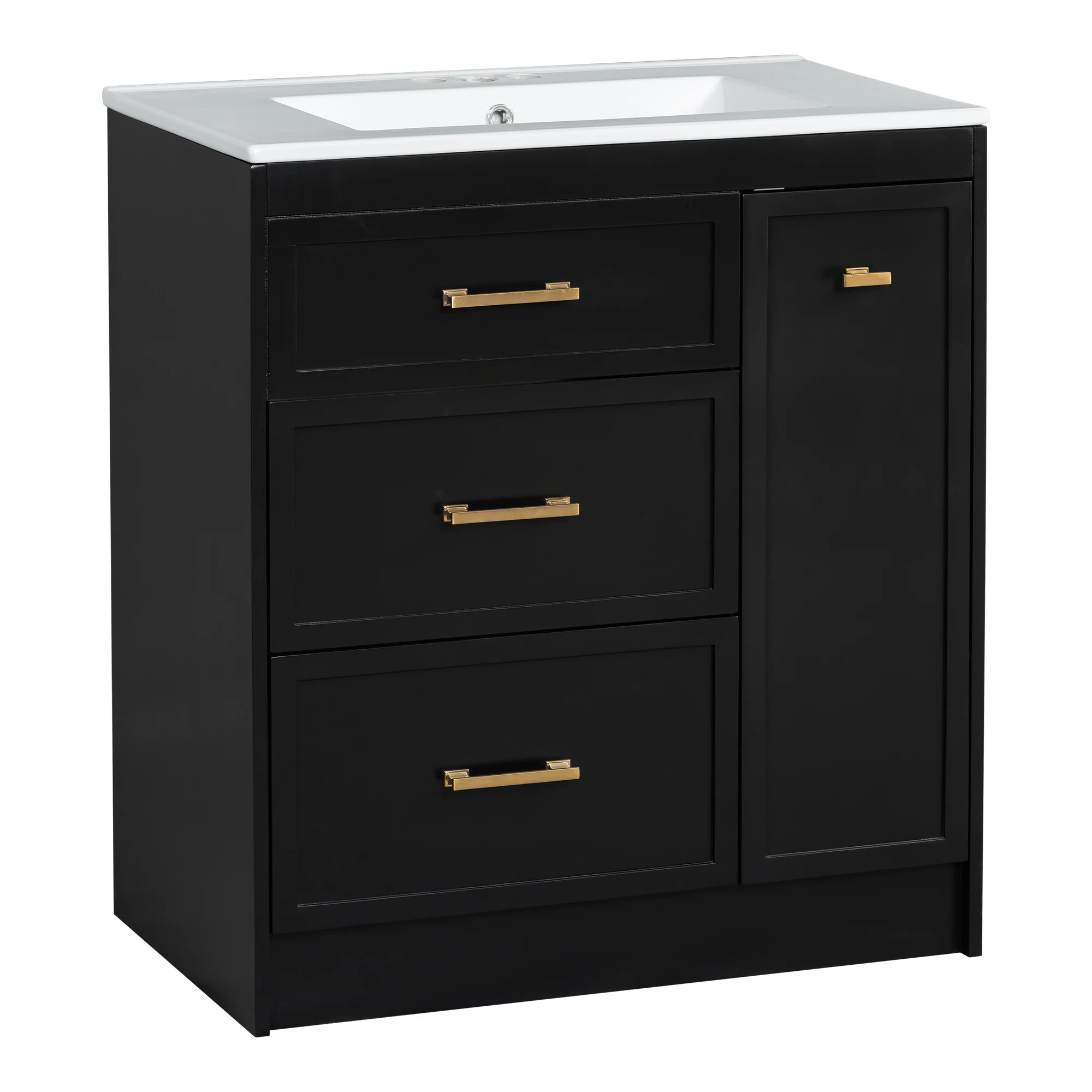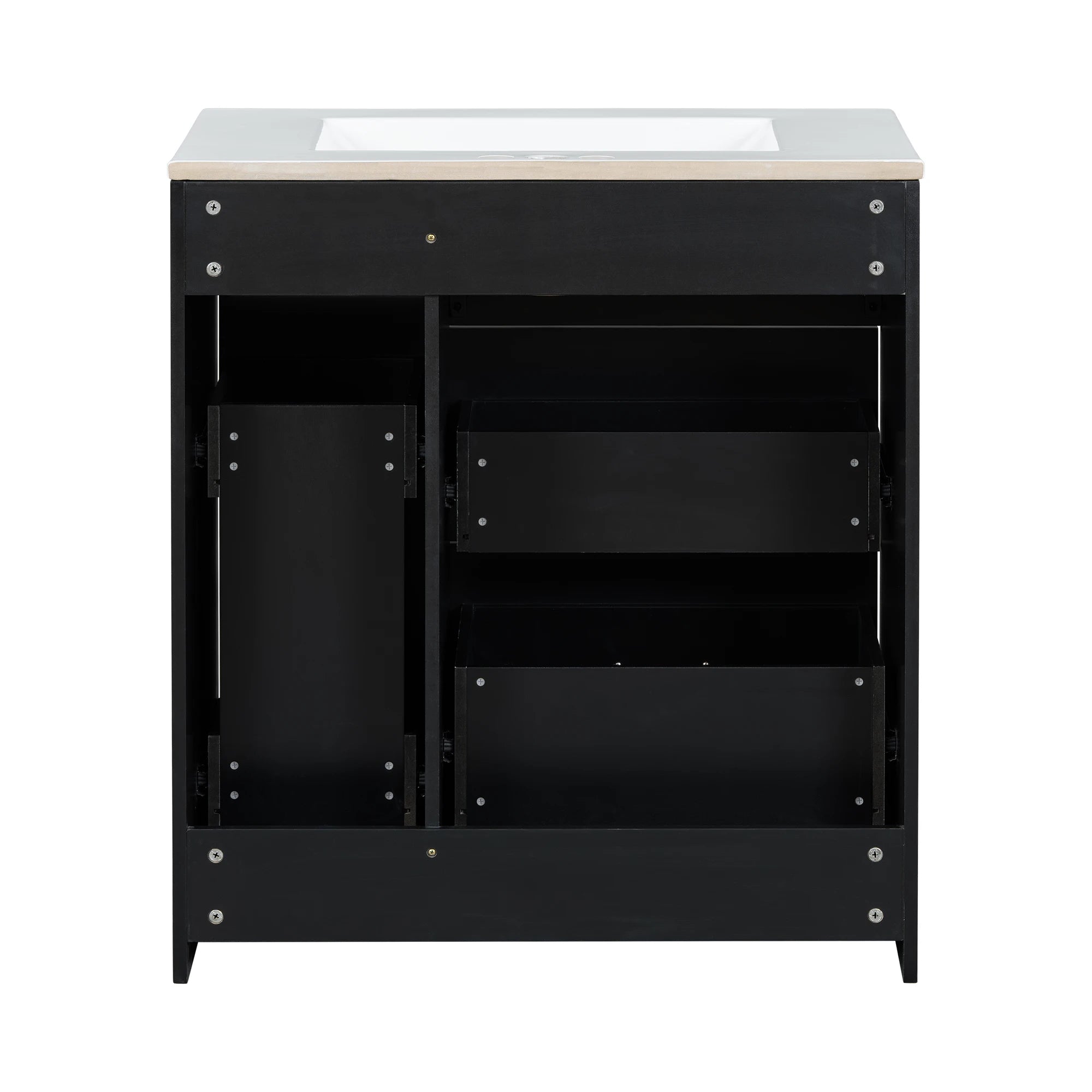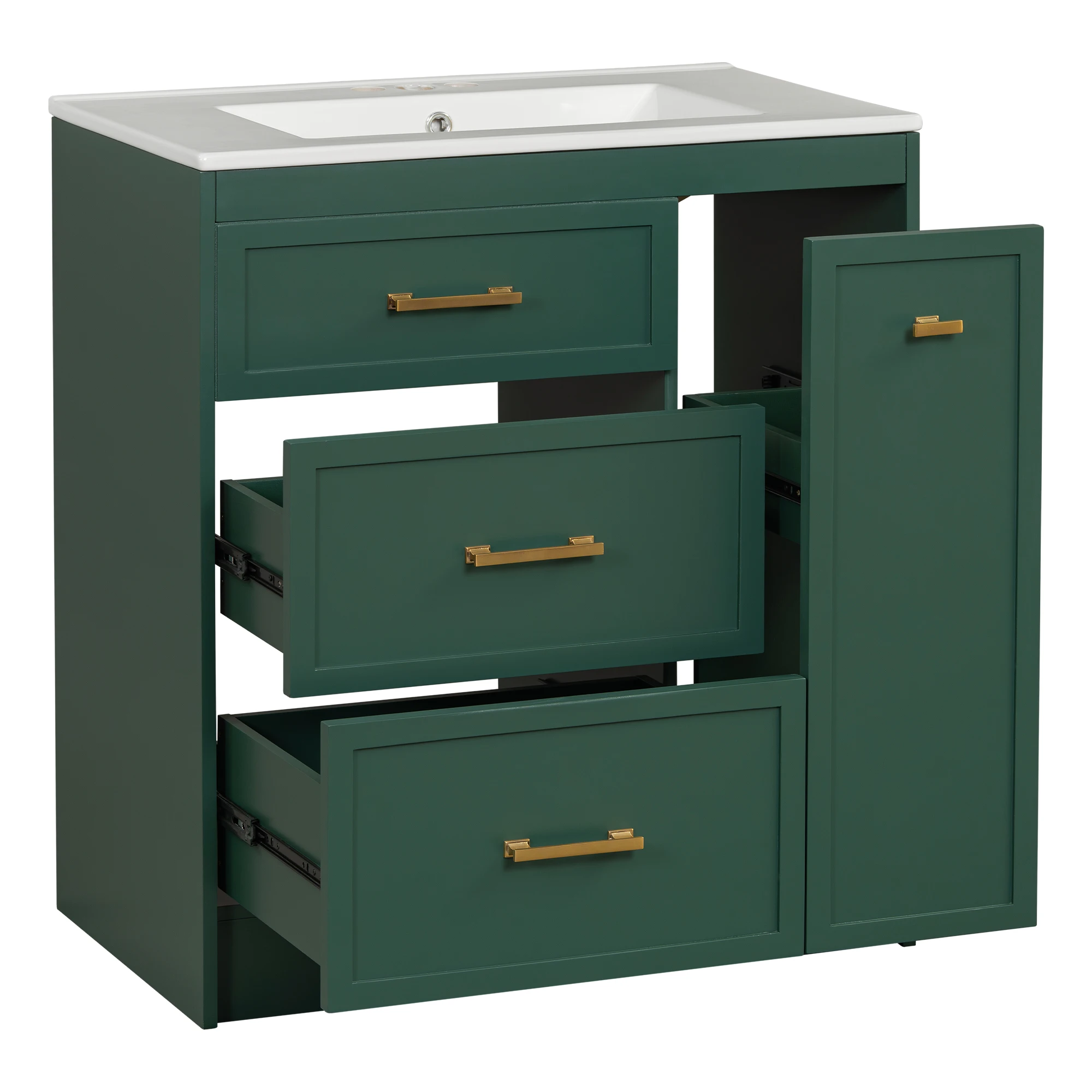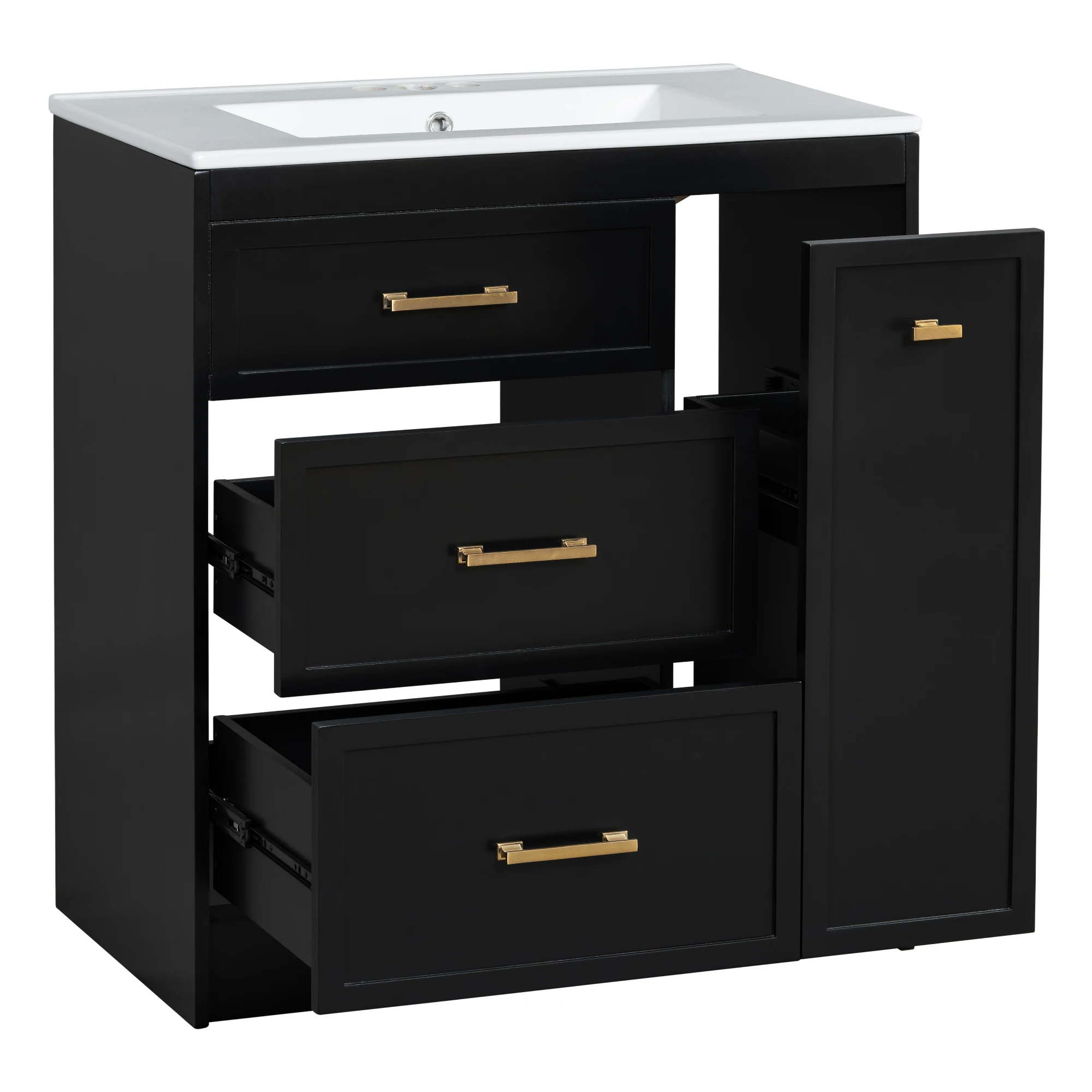 Classic 30" Bathroom Vanity Set, Floor Standing, with Three Drawers, One of Which is a Double-Layer Drawer