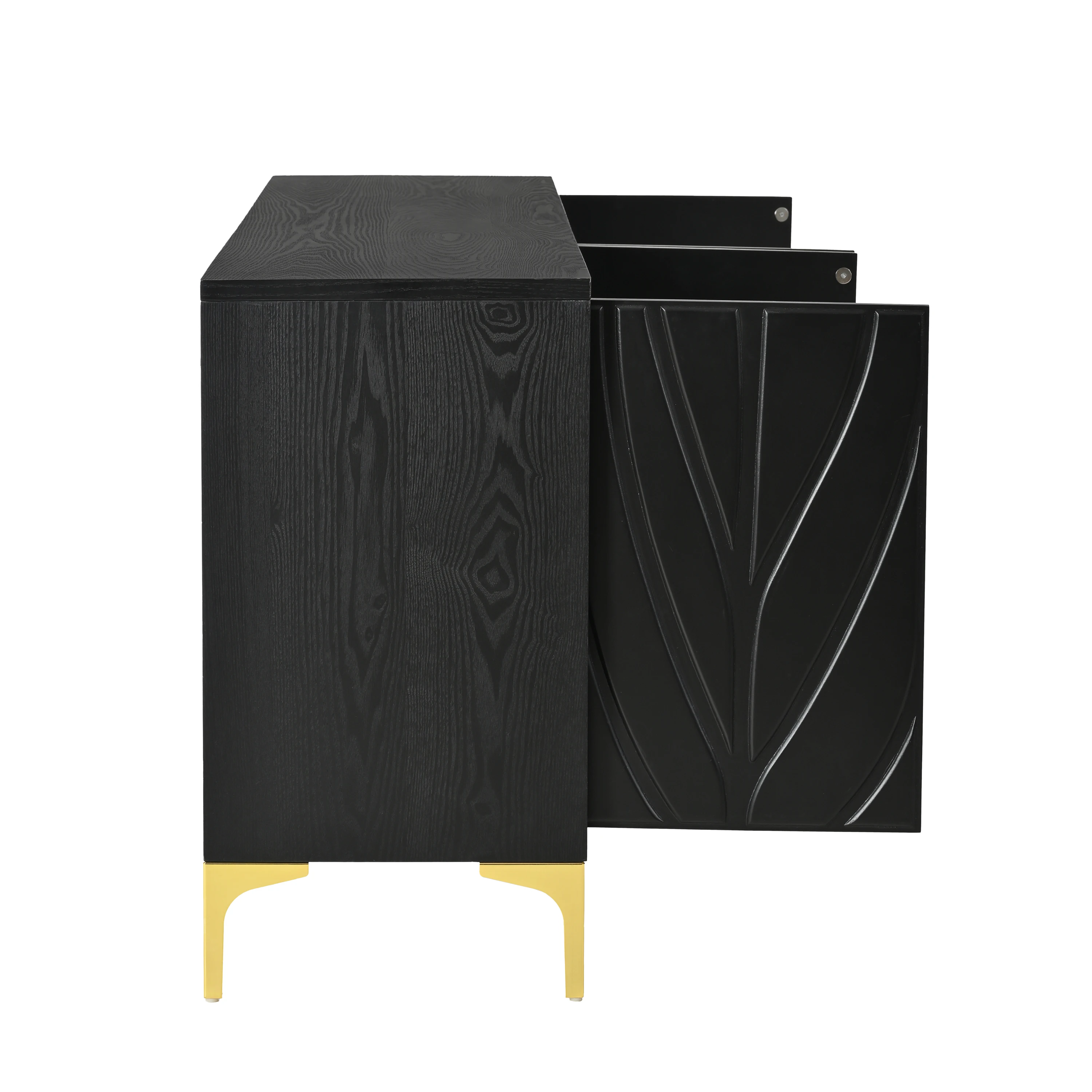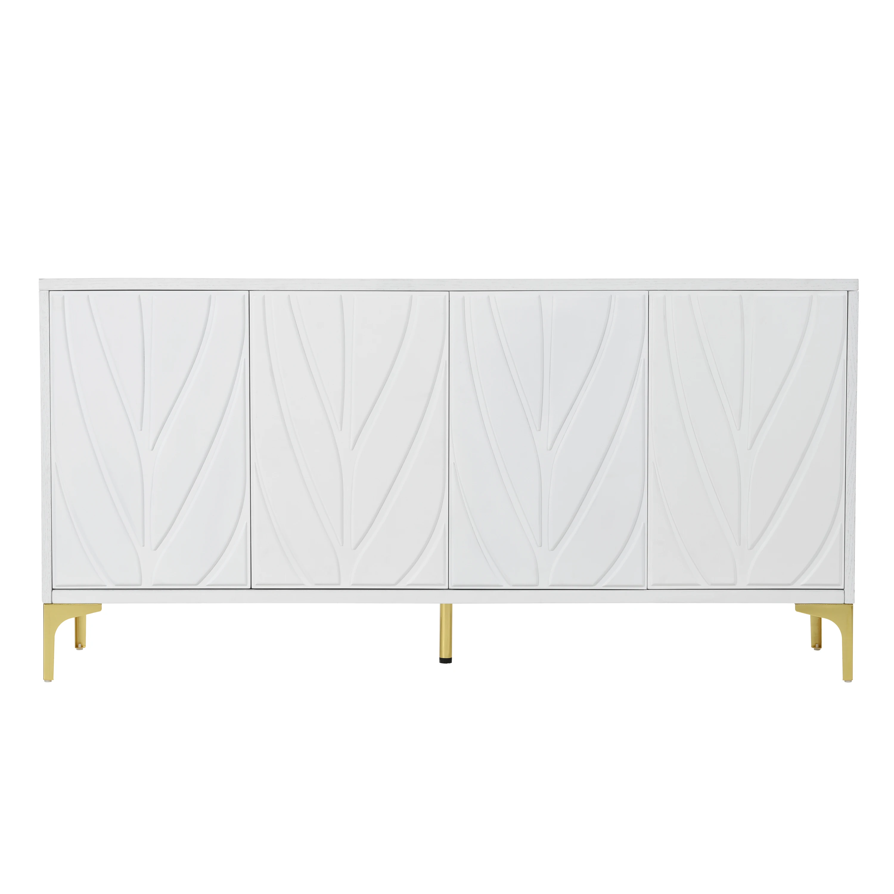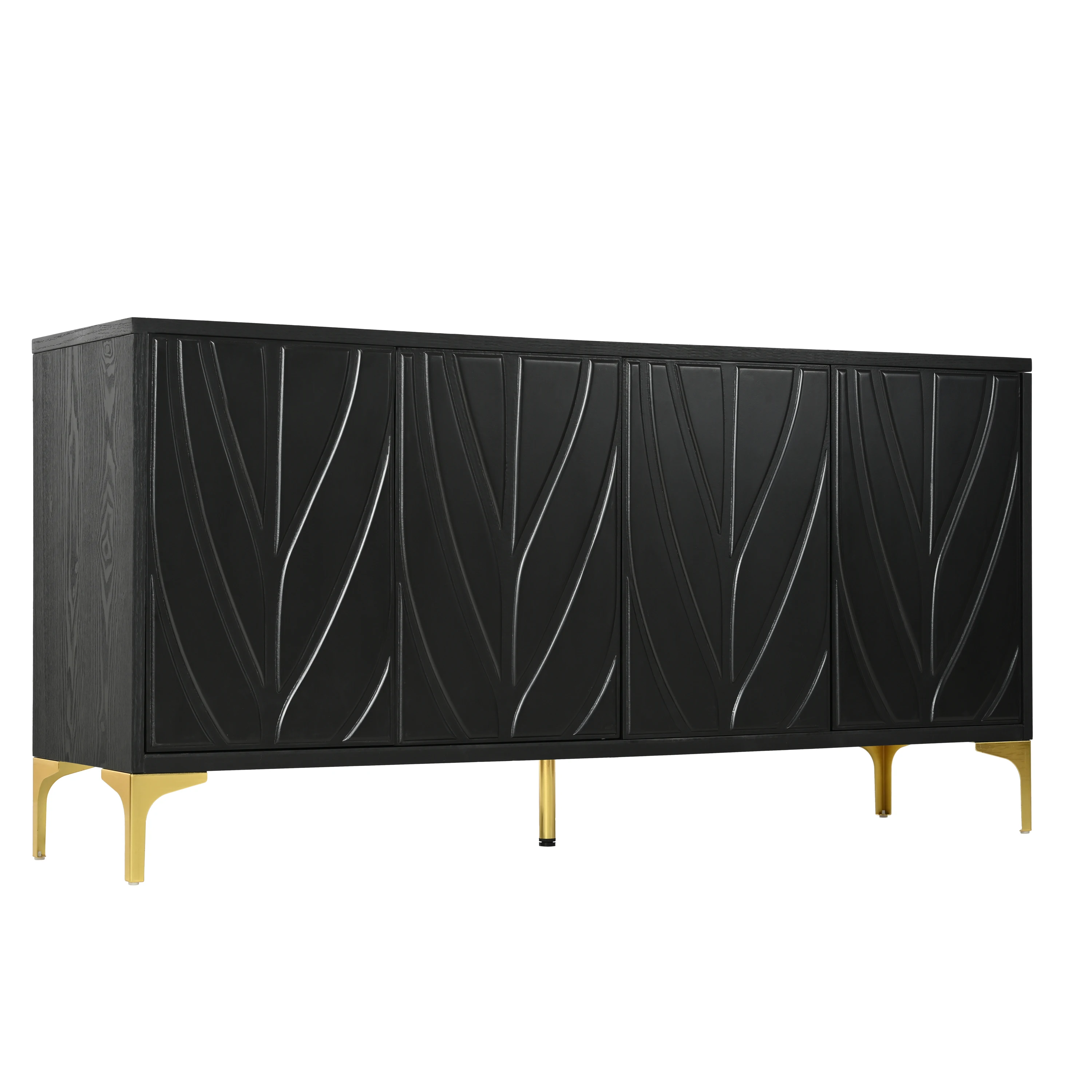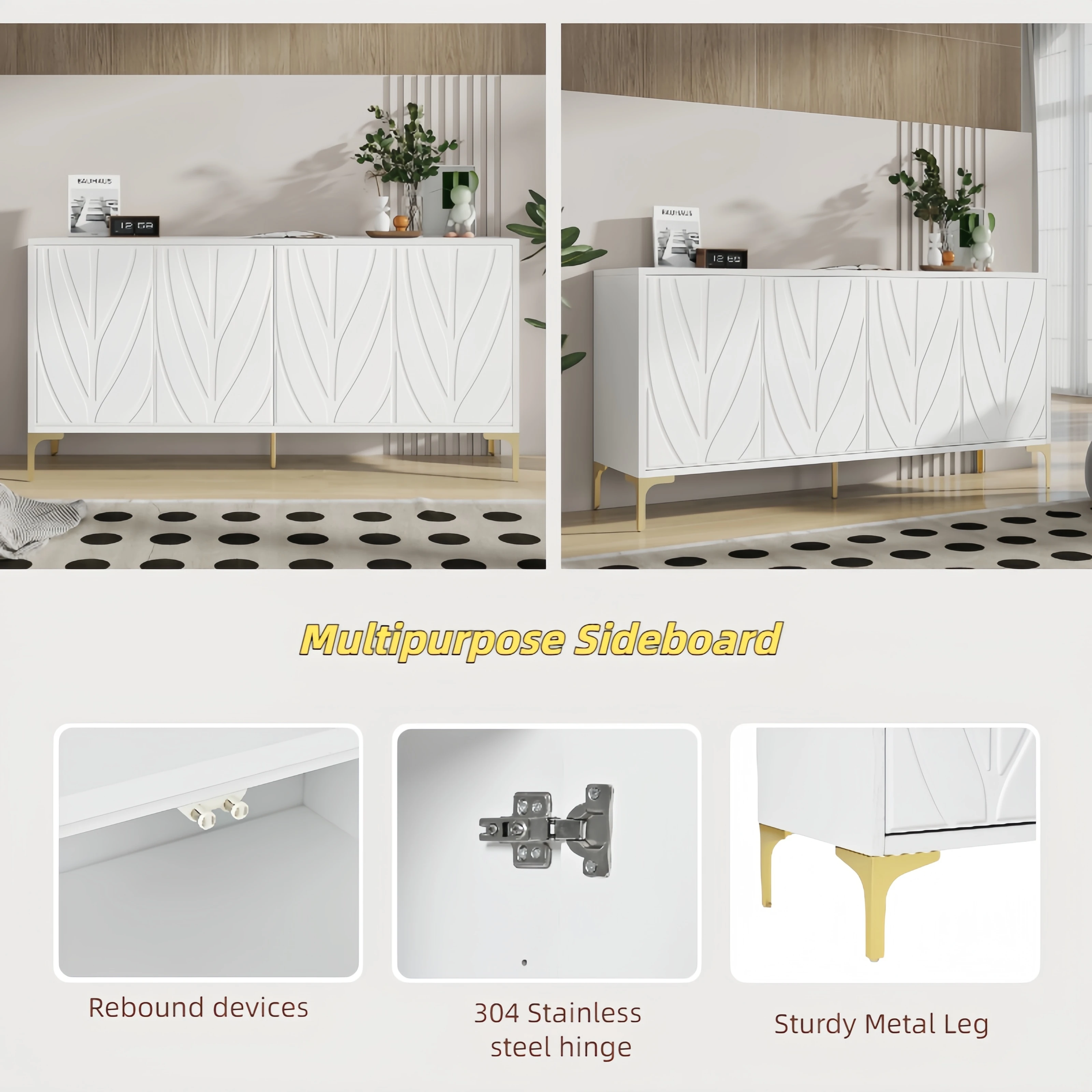 Creative carved 4-door Sideboard Handleless Press-to-Open Design Buffet Cabinet for Dining Room,Living Room, Bedroom, Hallway