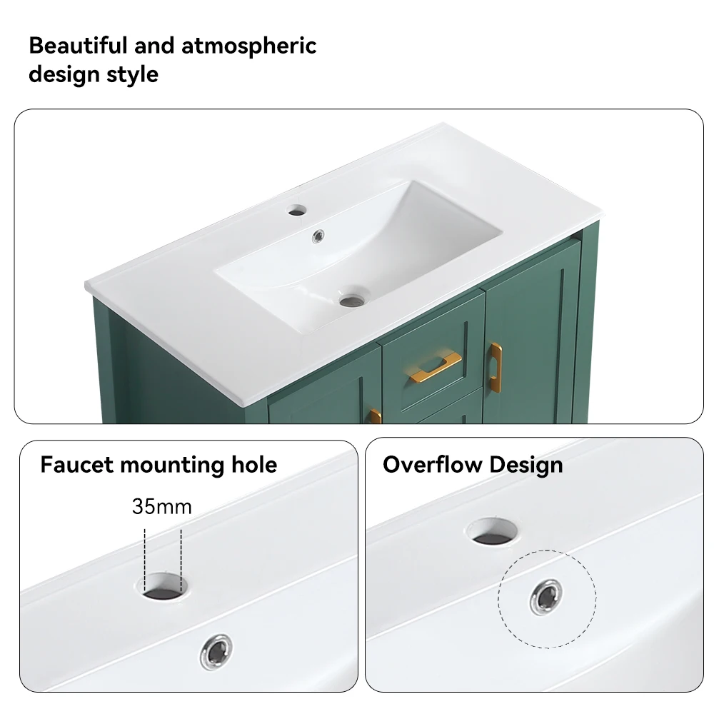 Green Bathroom Vanity with Single Sink, Combo Cabinet Undermount Sink, Bathroom Storage Cabinet with 2 Doors and 2 Drawer