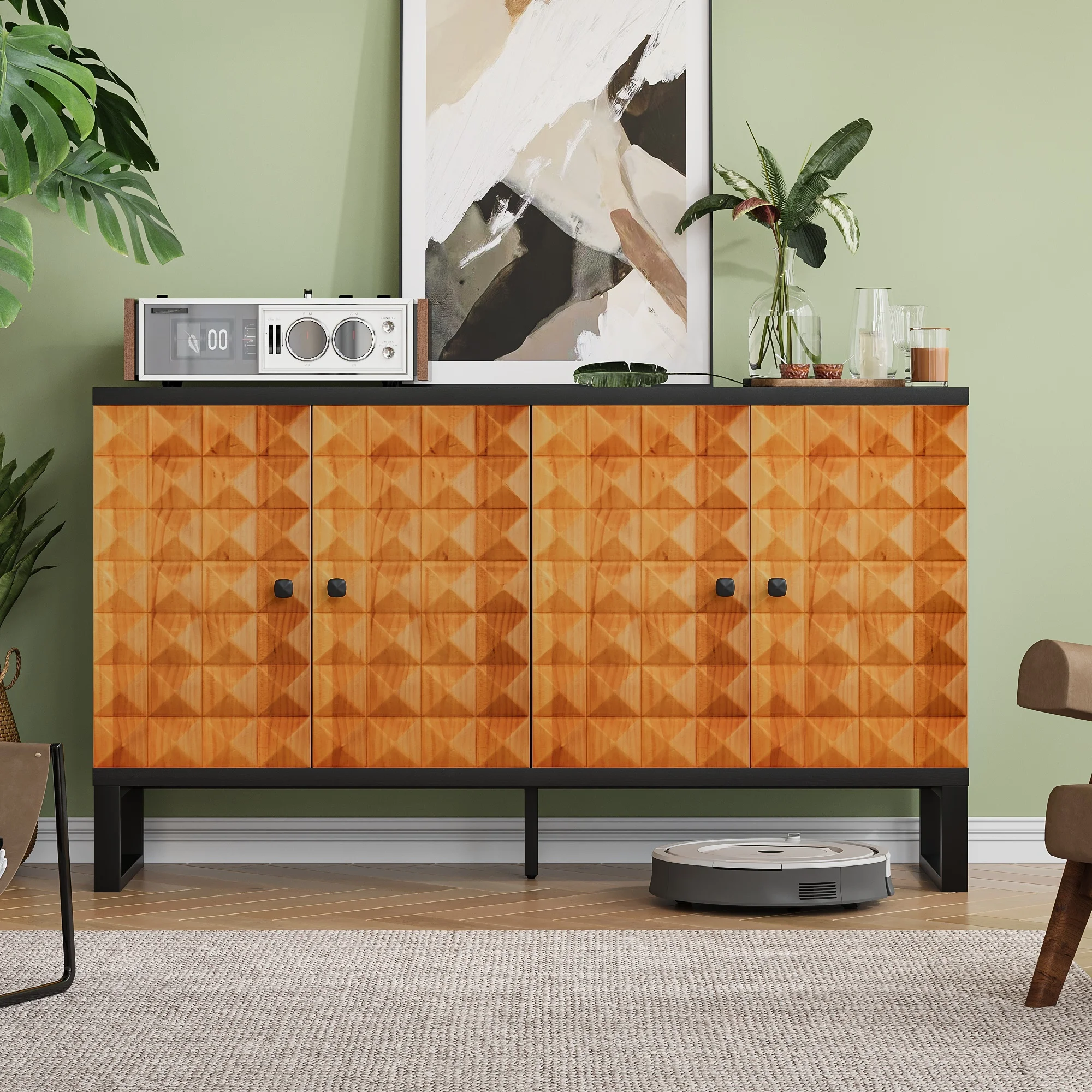 Modern Buffet Cabinet With Storage Space, Retro Style Four Door Wooden Storage Cabinet, Multifunctional Decorative Cabinet