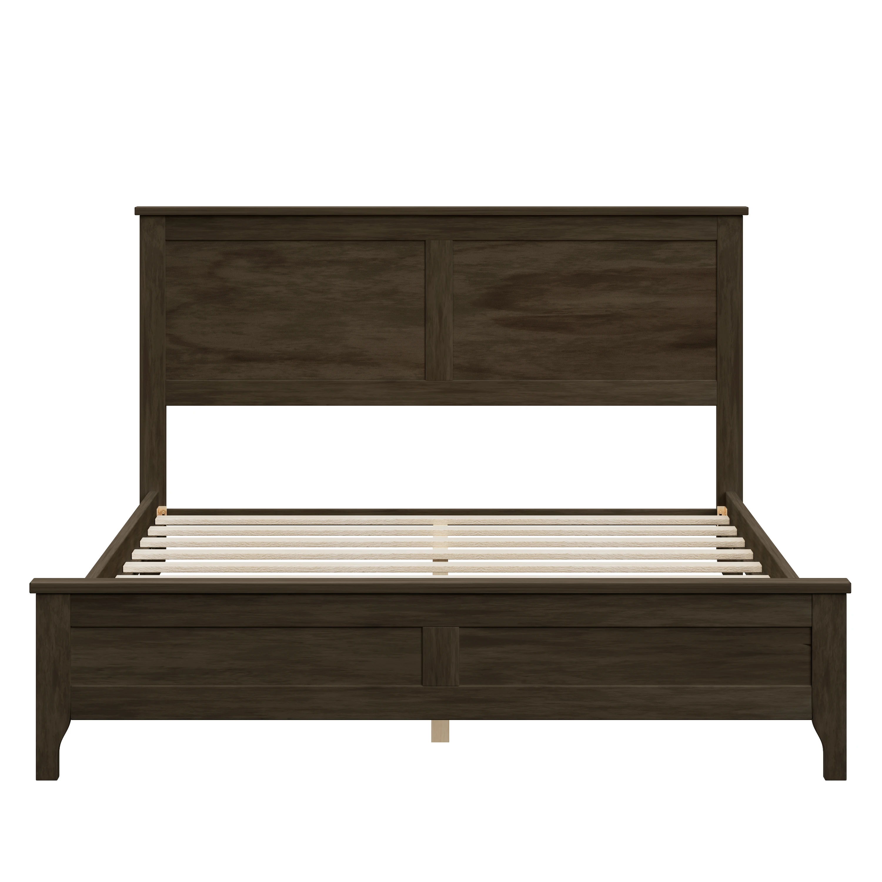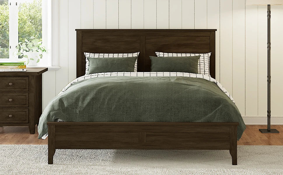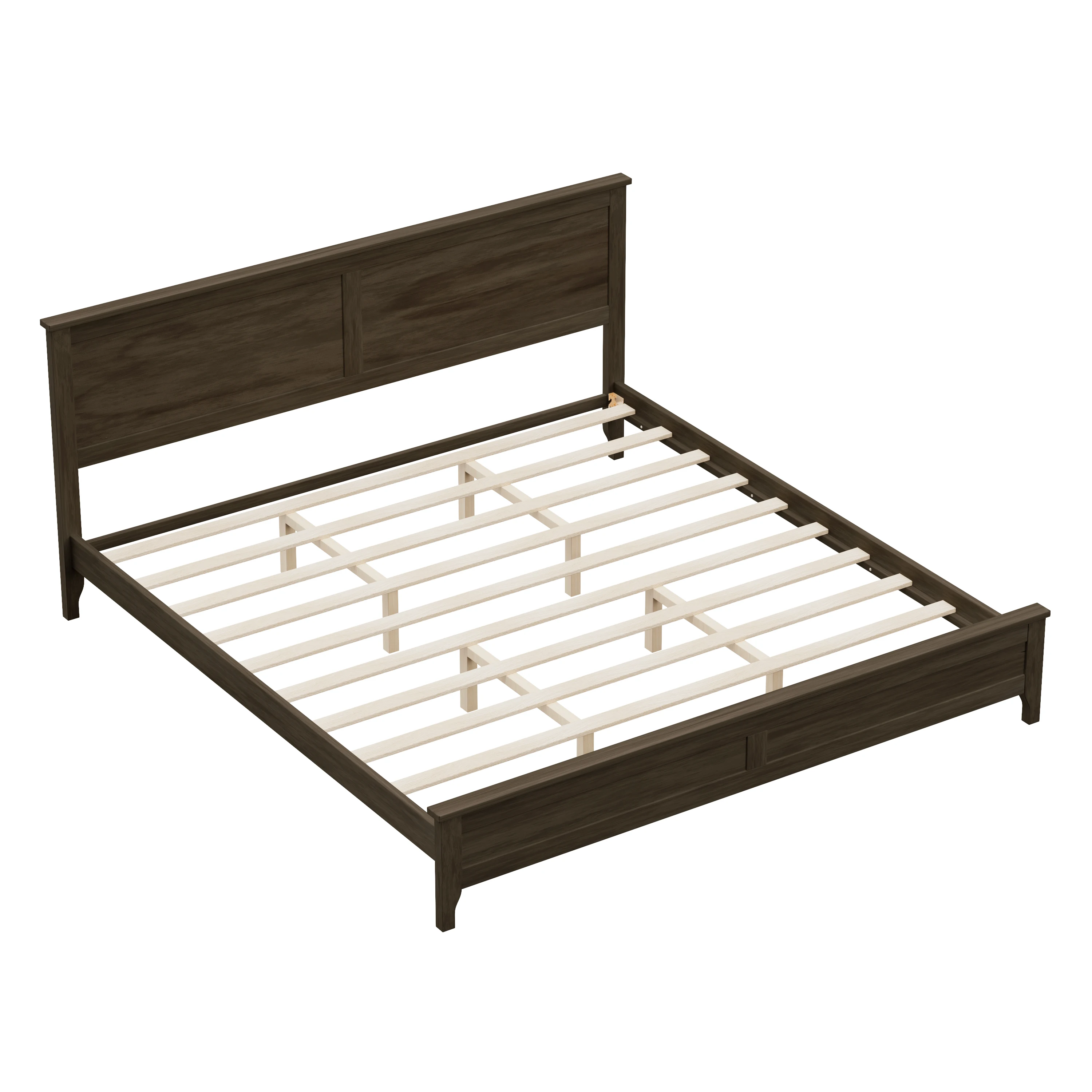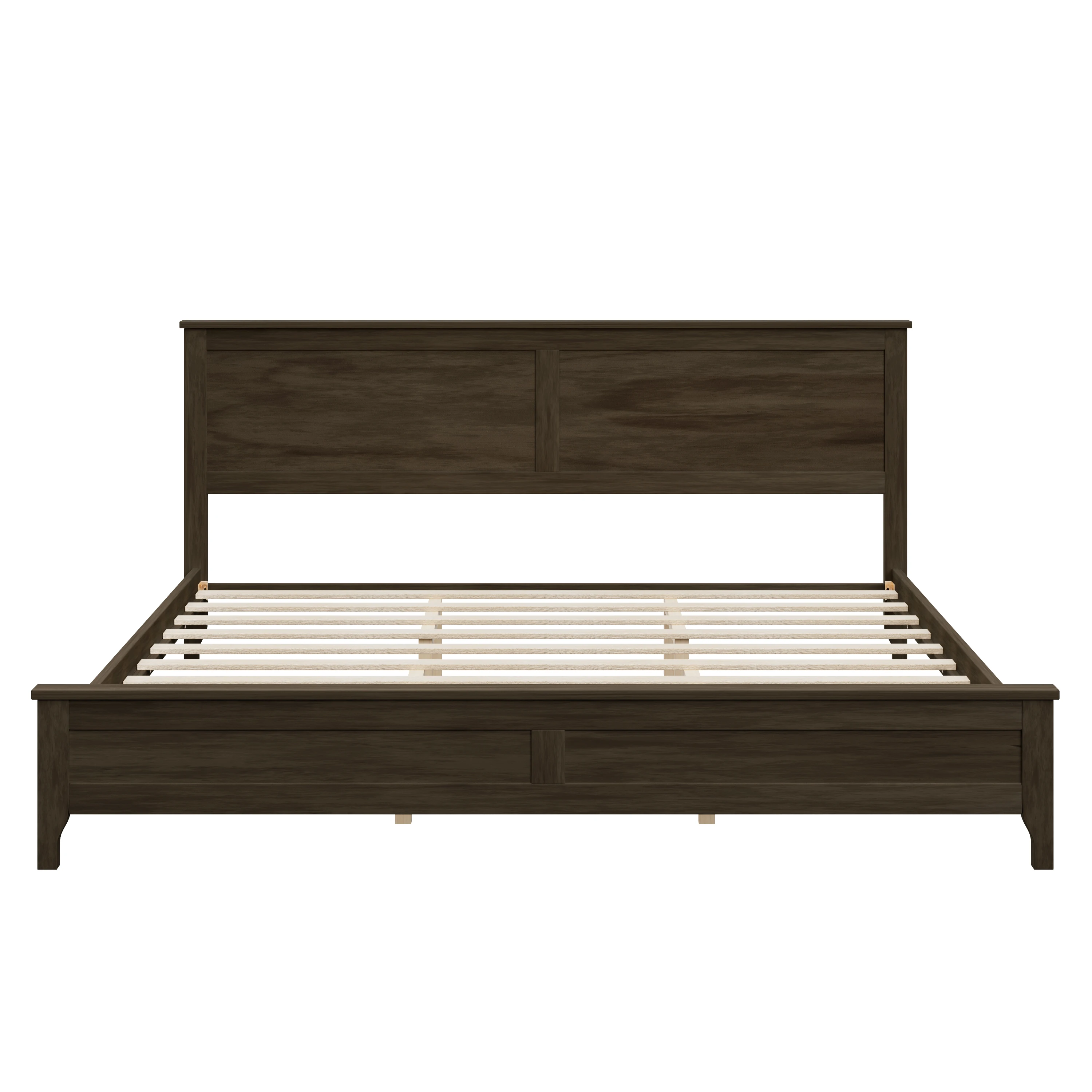 Modern Espresso Solid Wood King Size Platform Bed with Sturdy Wooden Slats and No Box Spring Needed