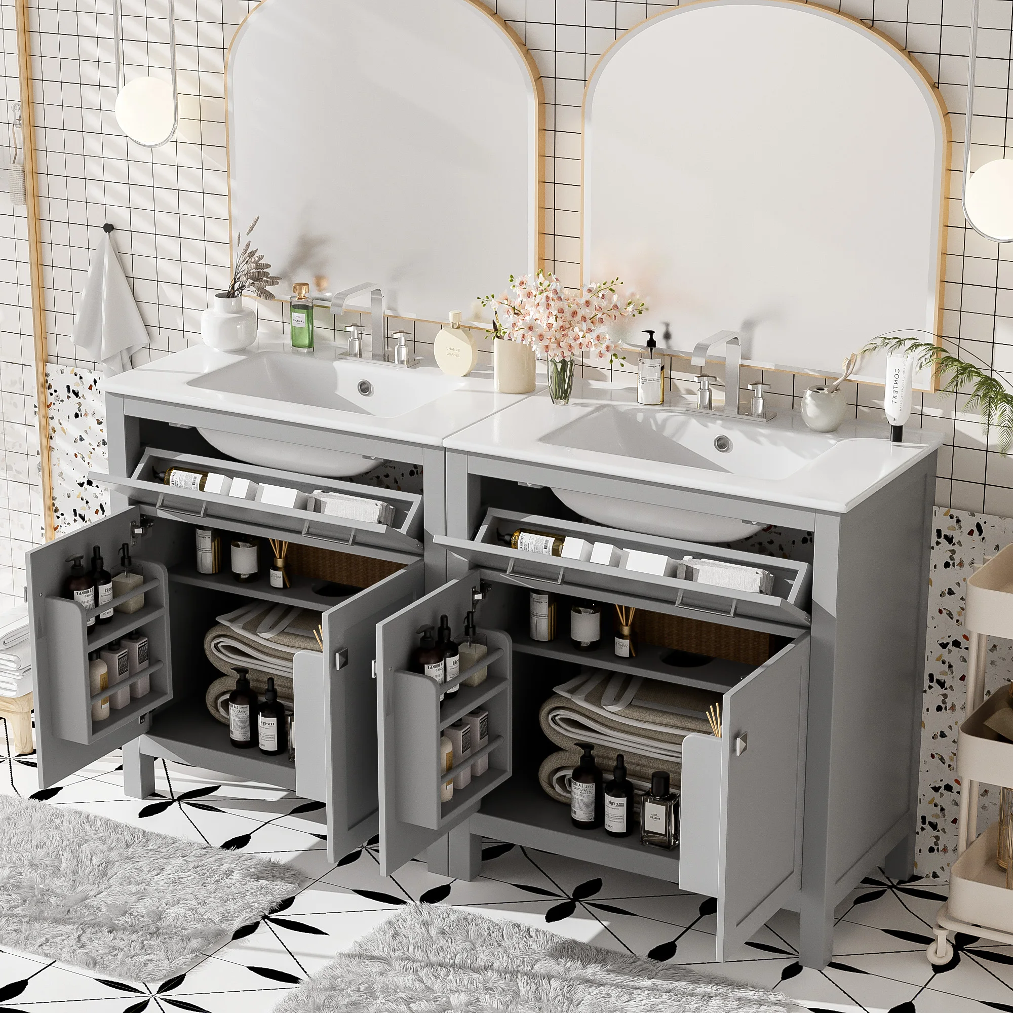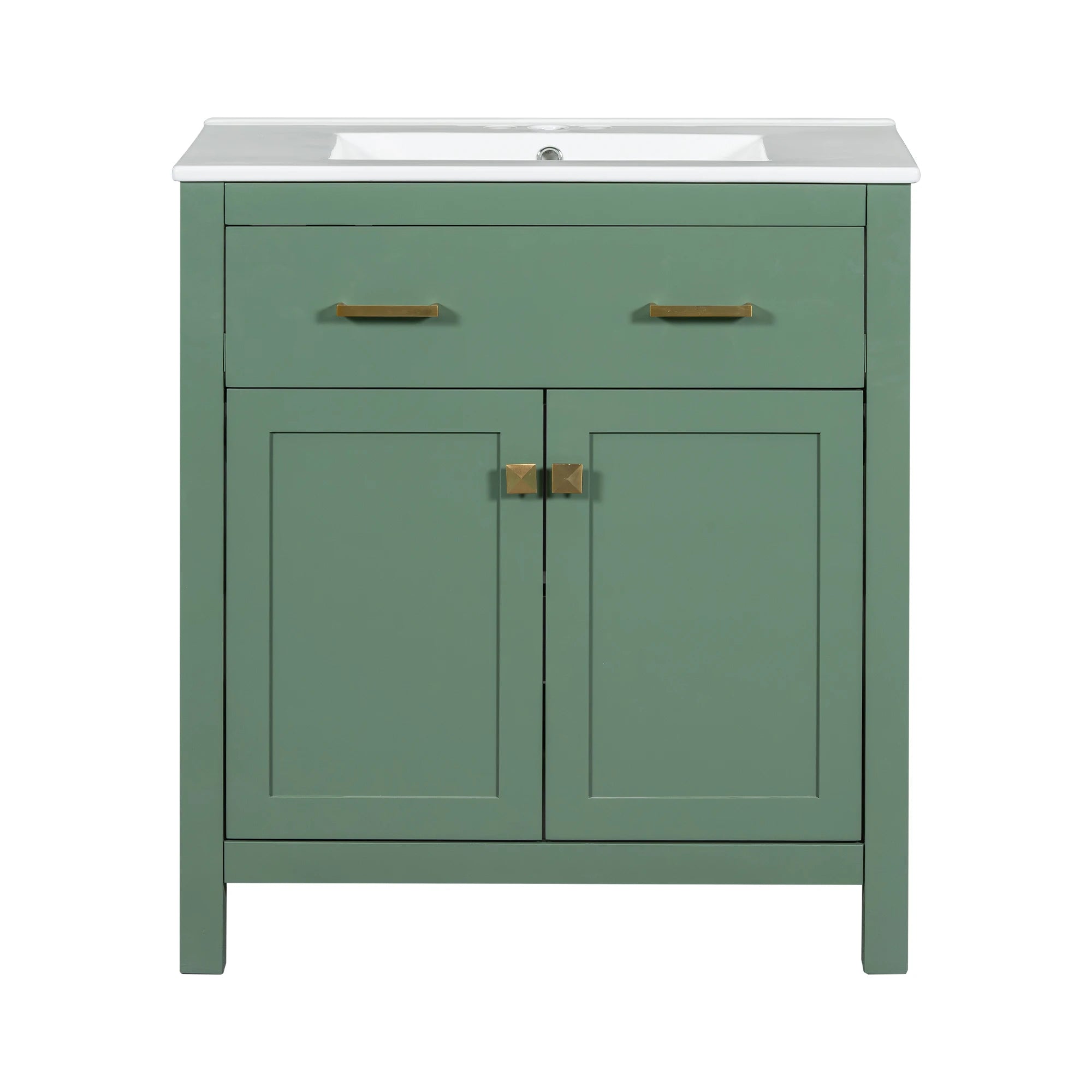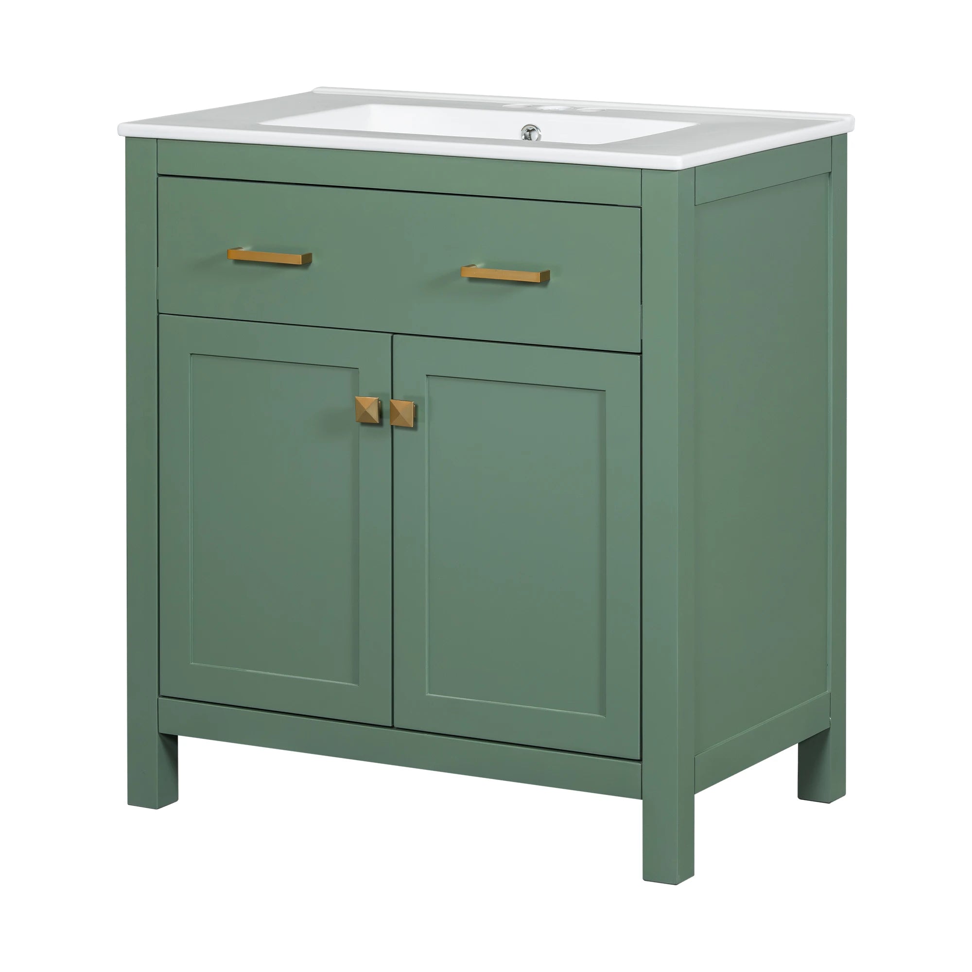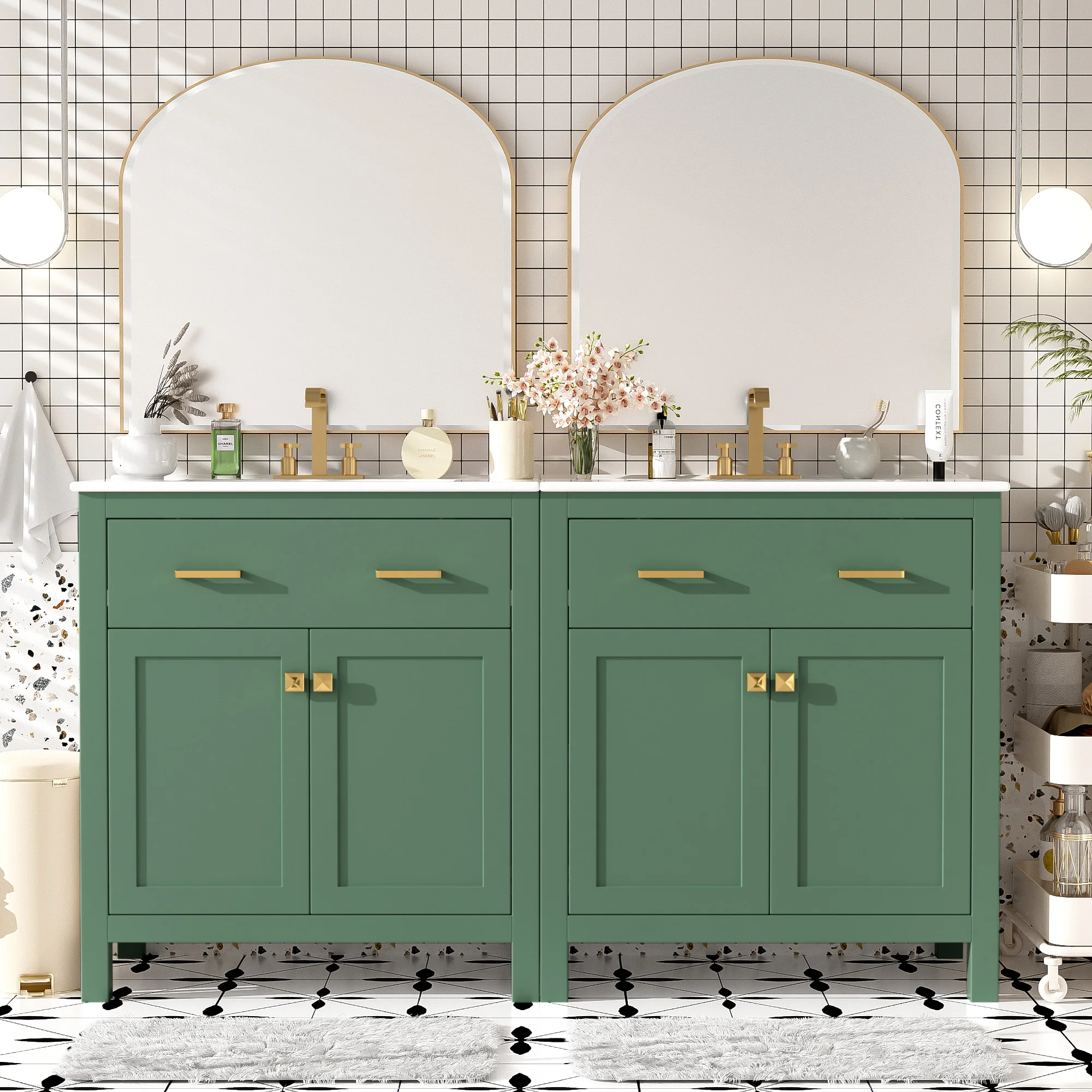 Modern Green Bathroom Vanity Set with Double Vanities (Separate), Double Ceramic Sinks, Adjustable Shelf, Soft Close Doors