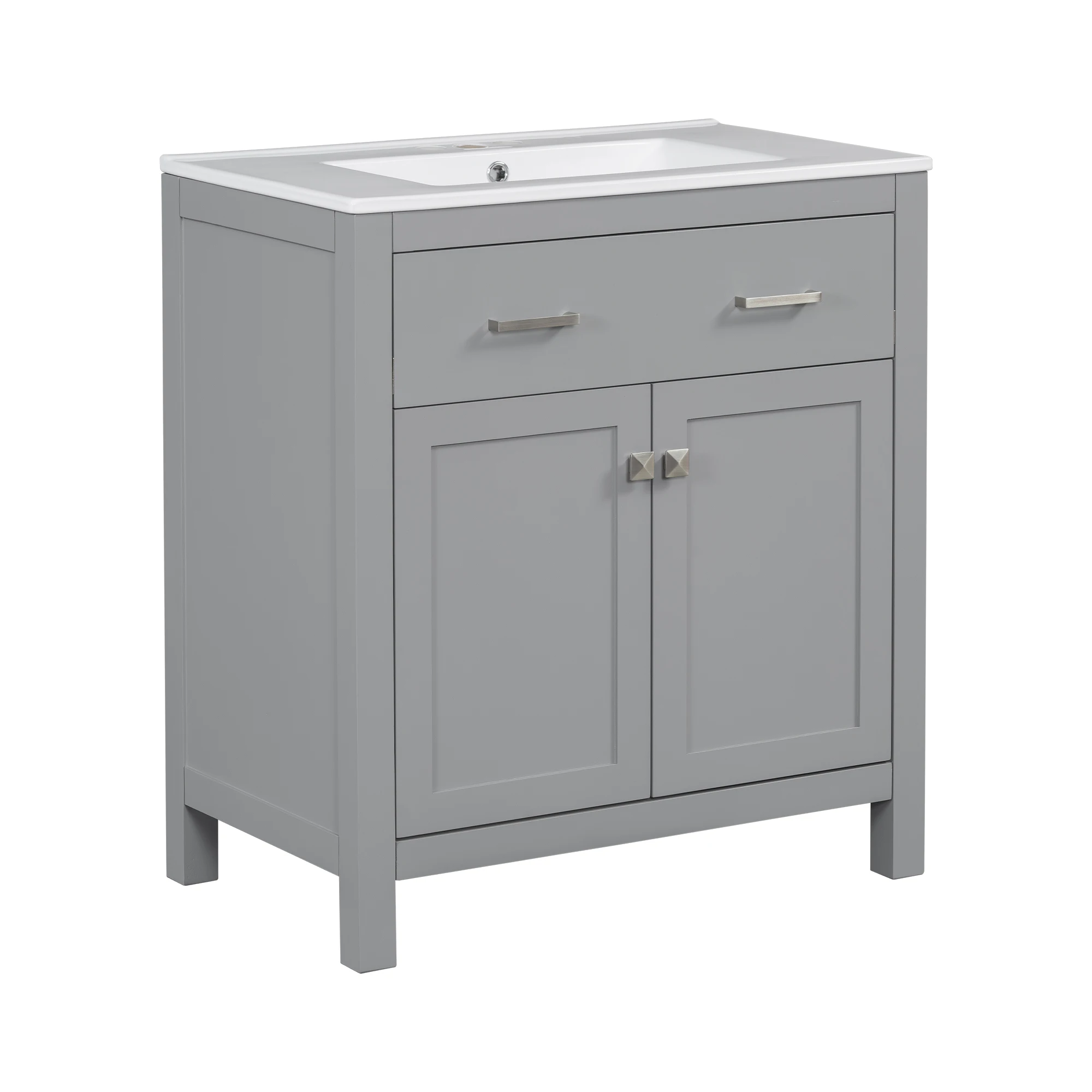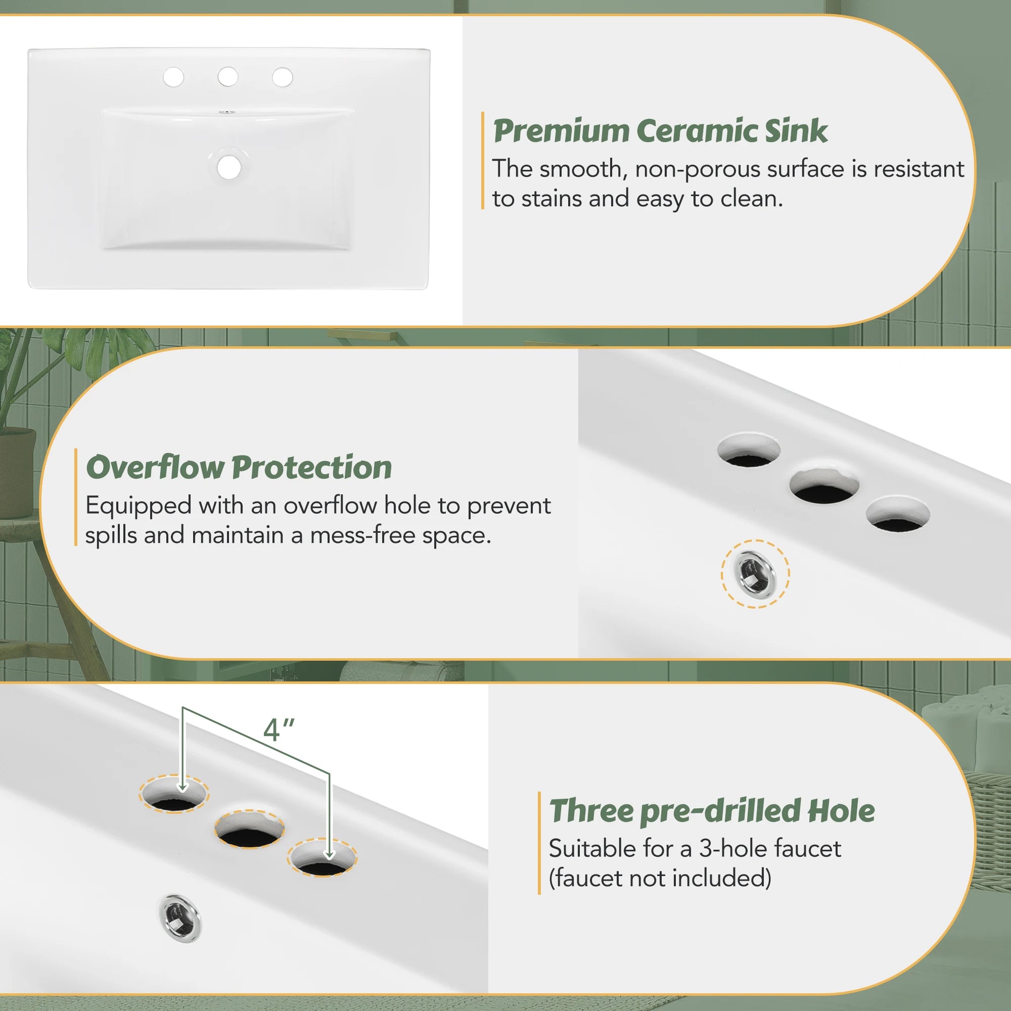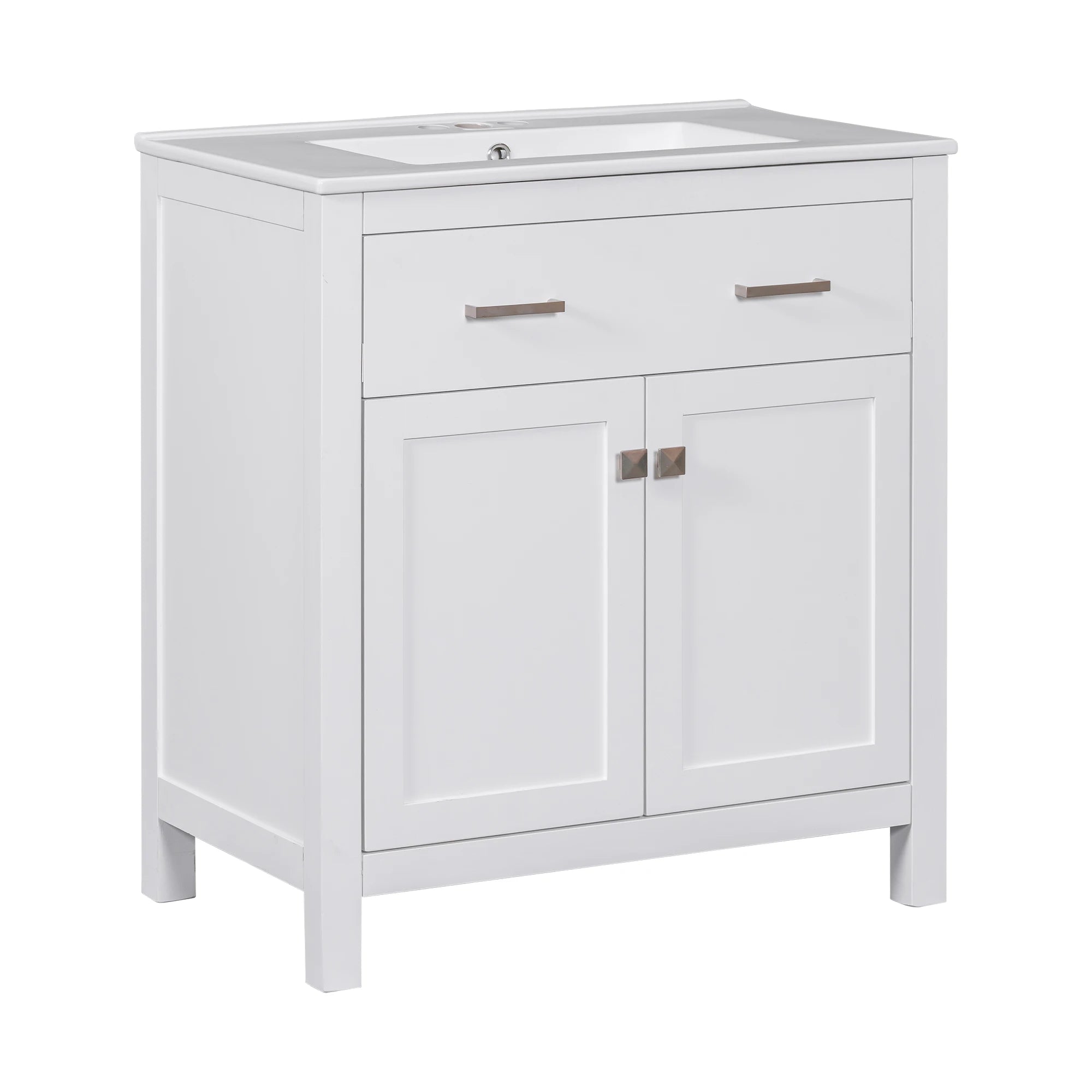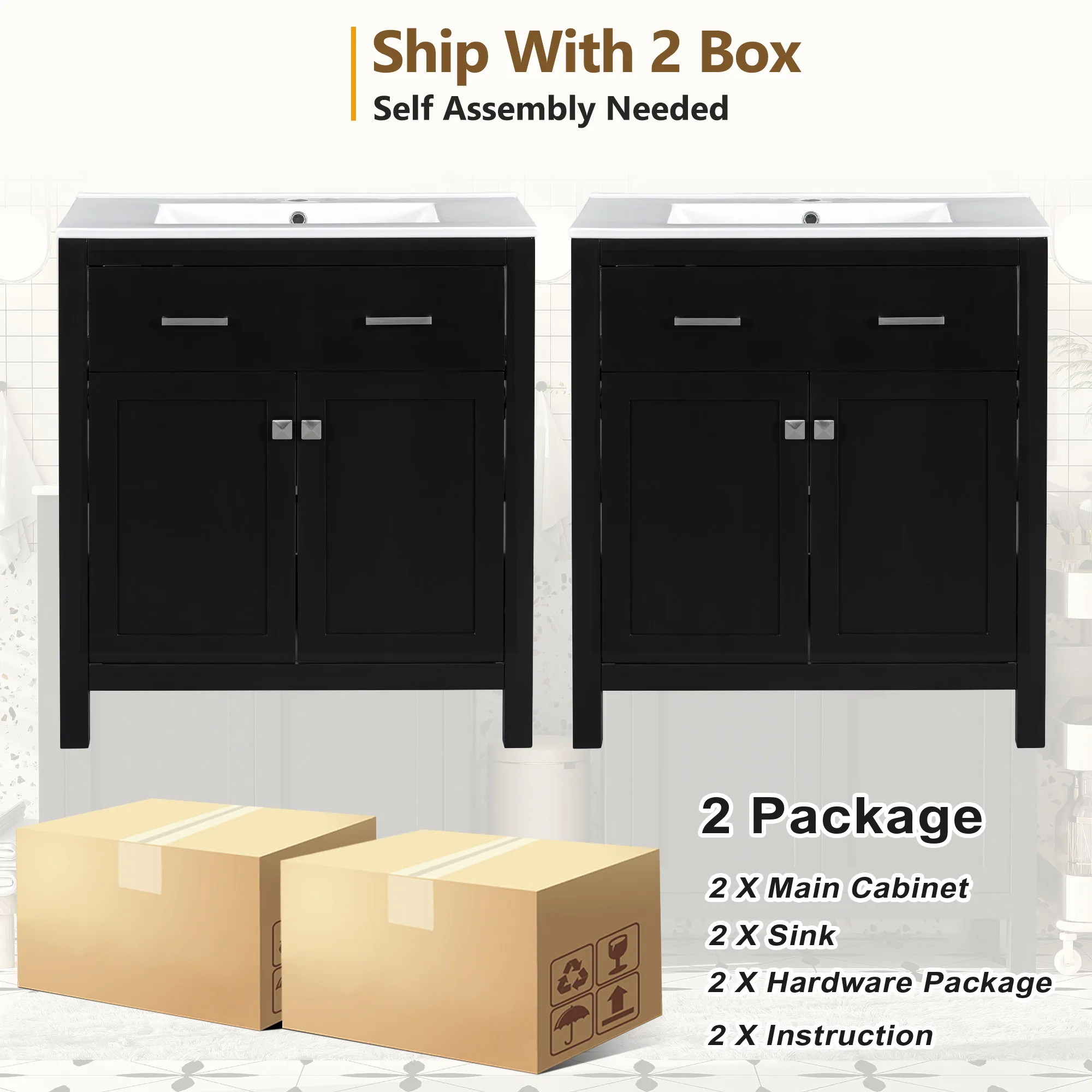 Modern Green Bathroom Vanity Set with Double Vanities (Separate), Double Ceramic Sinks, Adjustable Shelf, Soft Close Doors