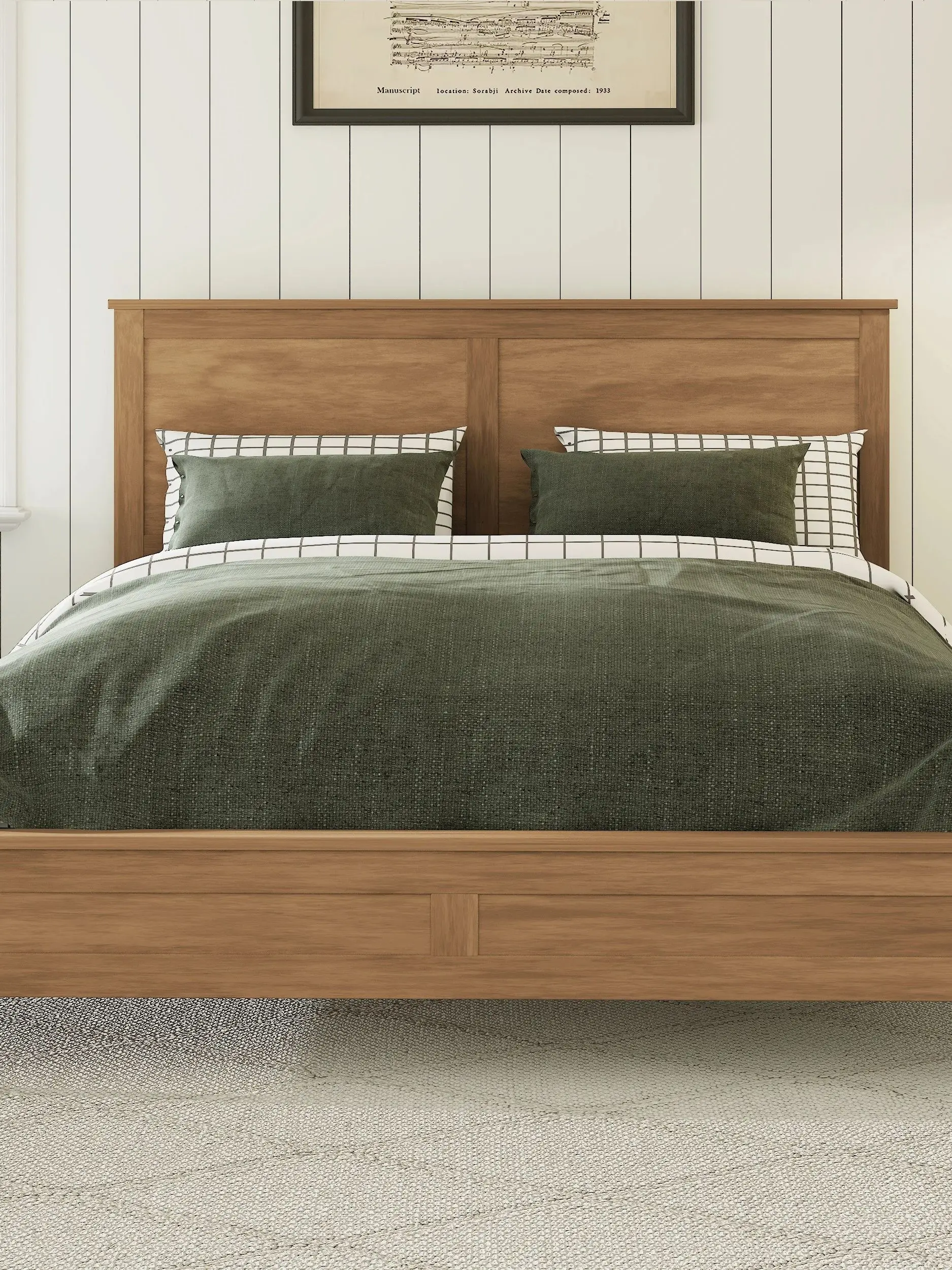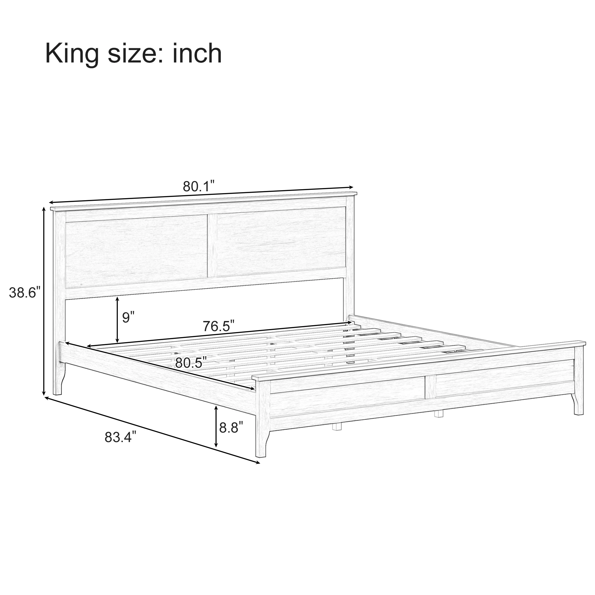 Modern Solid Wood King Size Platform Bed with Sturdy Wooden Slats Support, Seadrift, Pine Wood and MDF