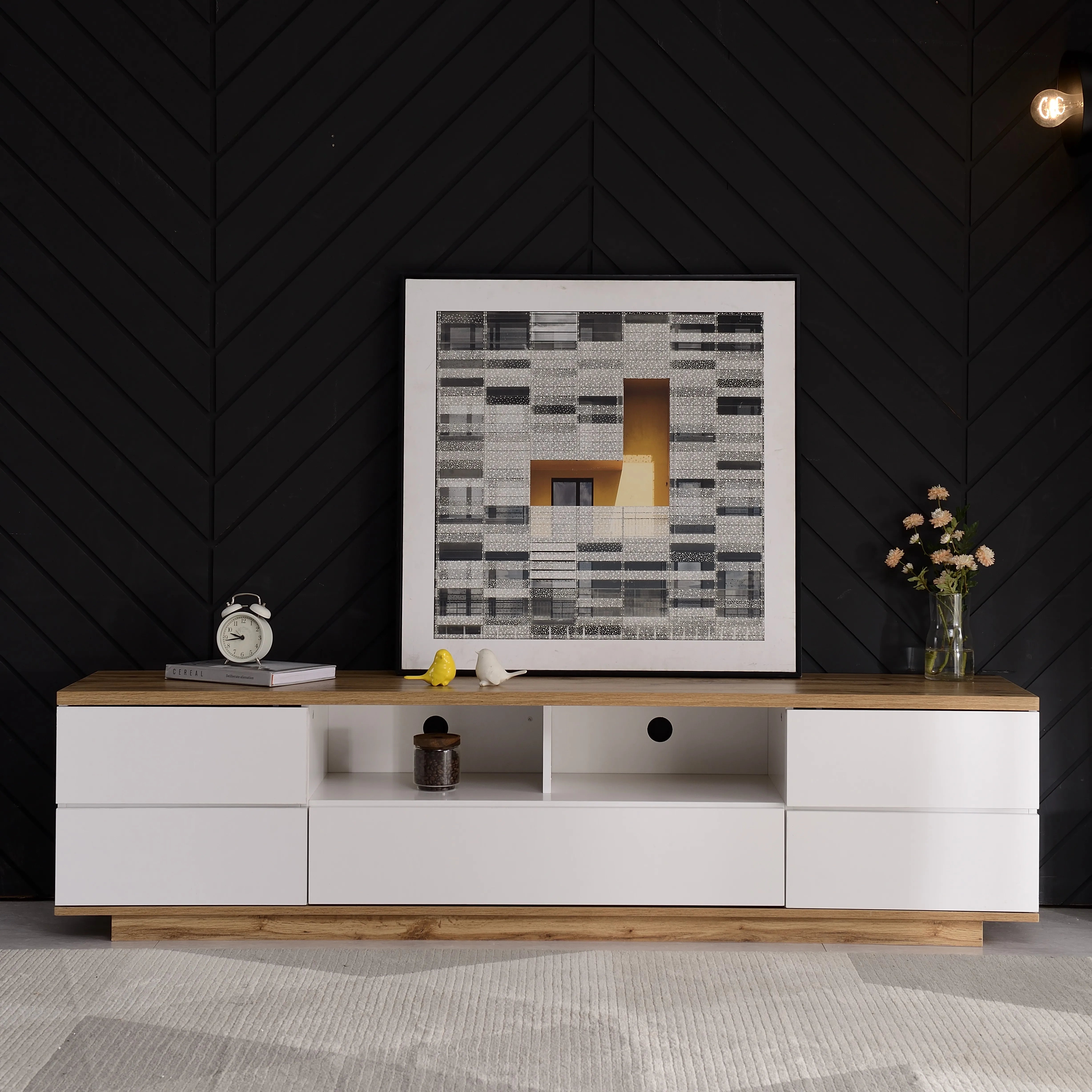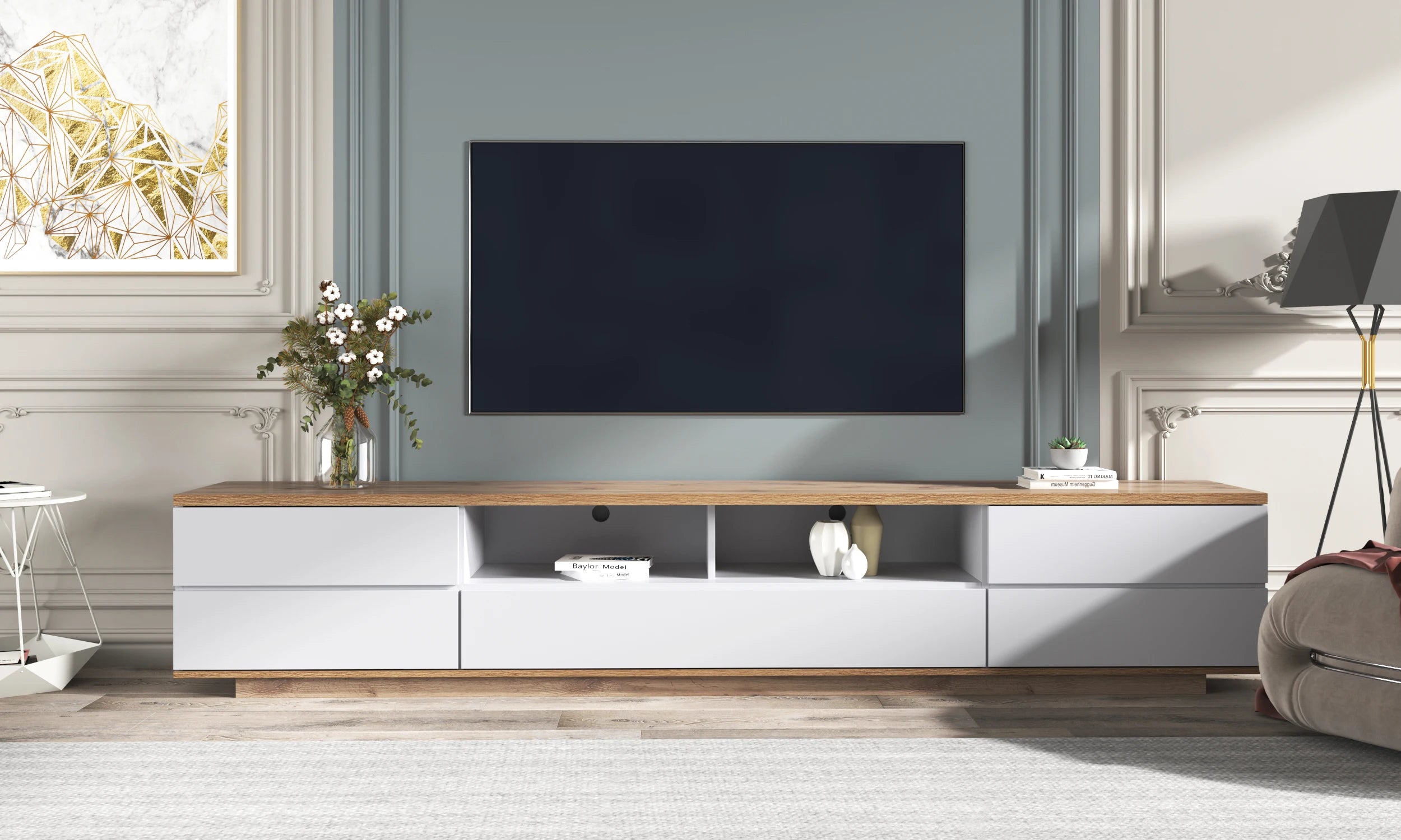 Modern TV stand for TVs up to 80'' , Media Console with Multi-Functional Storage, Entertainment Center with Door Rebound Device