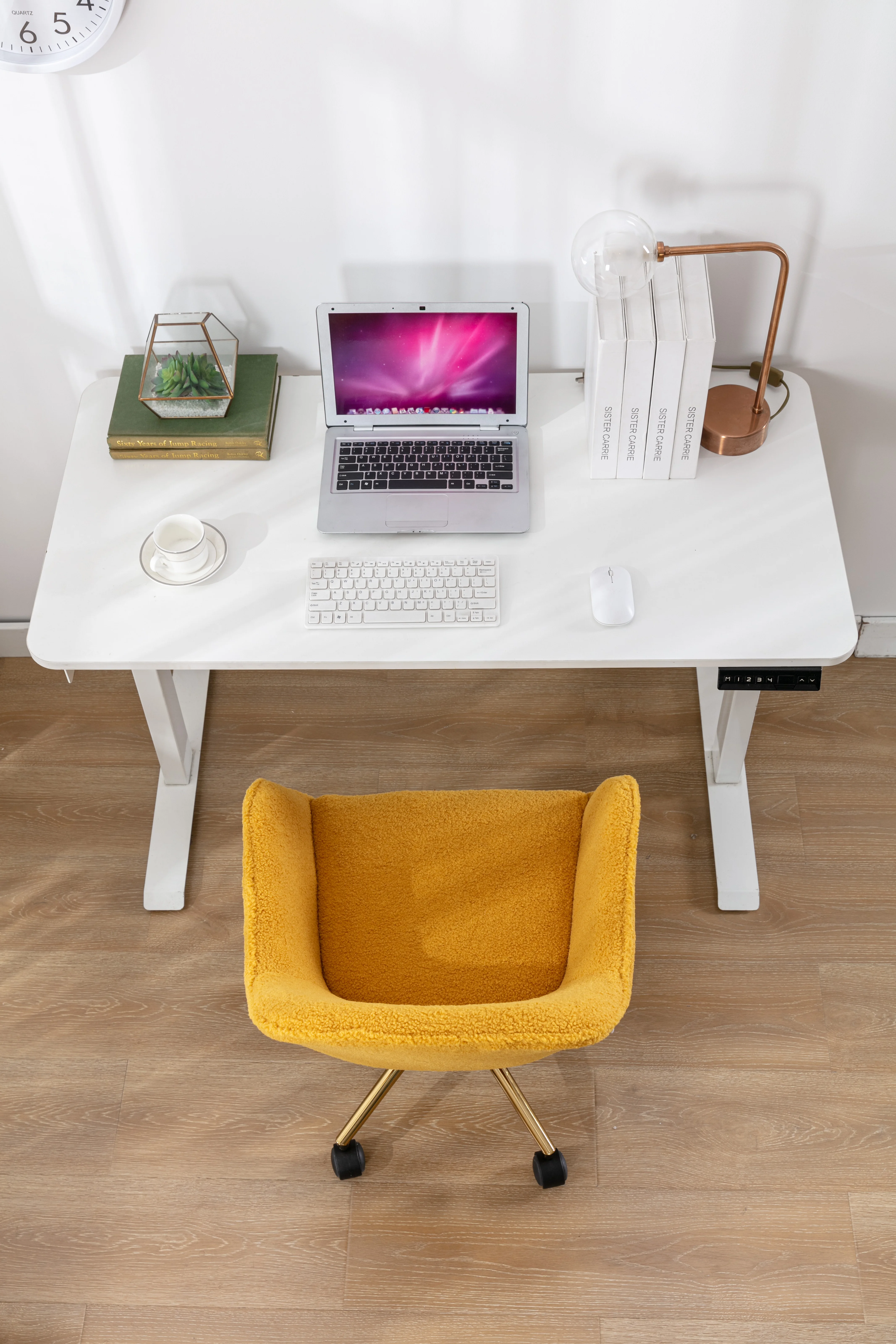 Modern Velvet Fabric Material Adjustable Height 360 Revolving Home Office Chair With Gold Metal Legs And Universal Wheels
