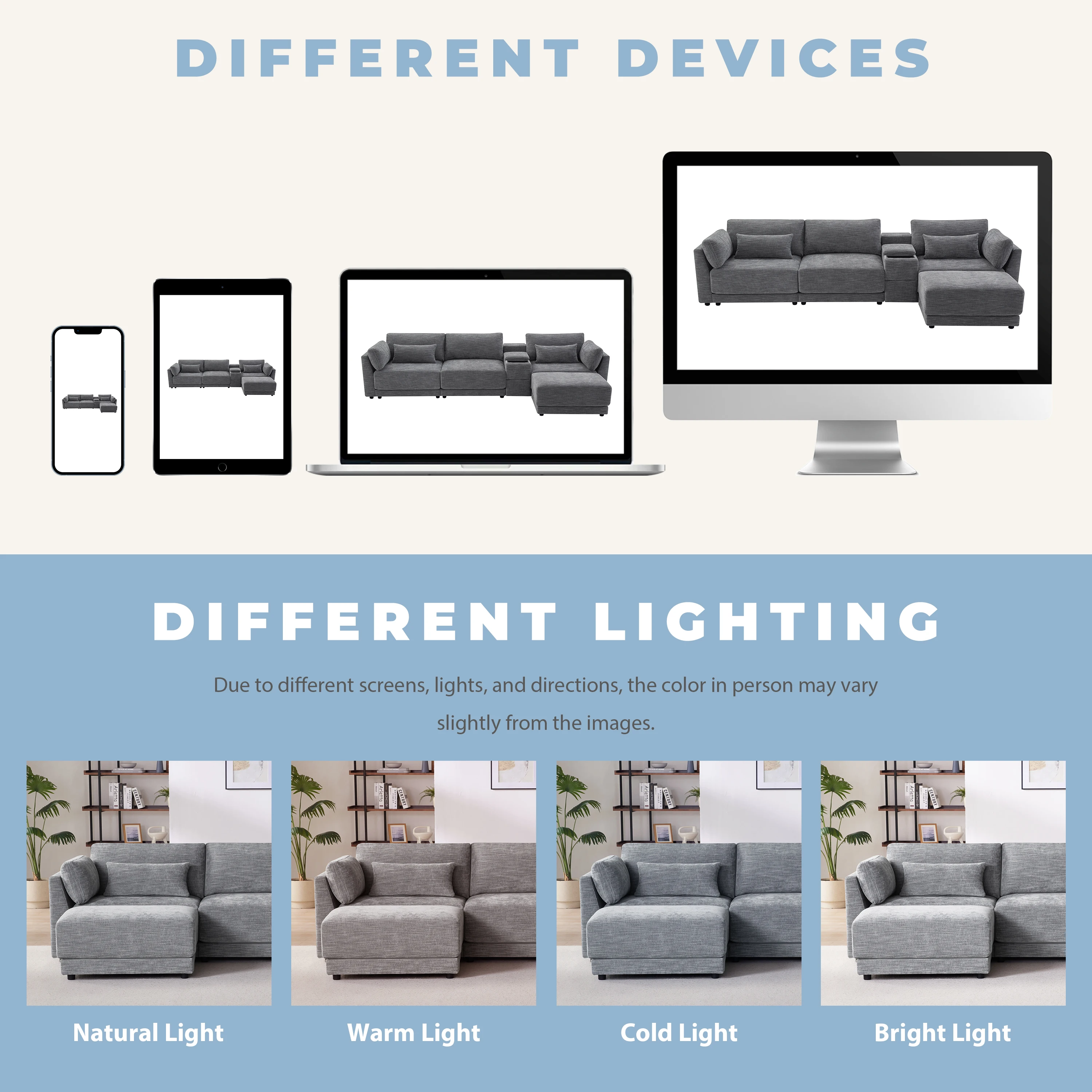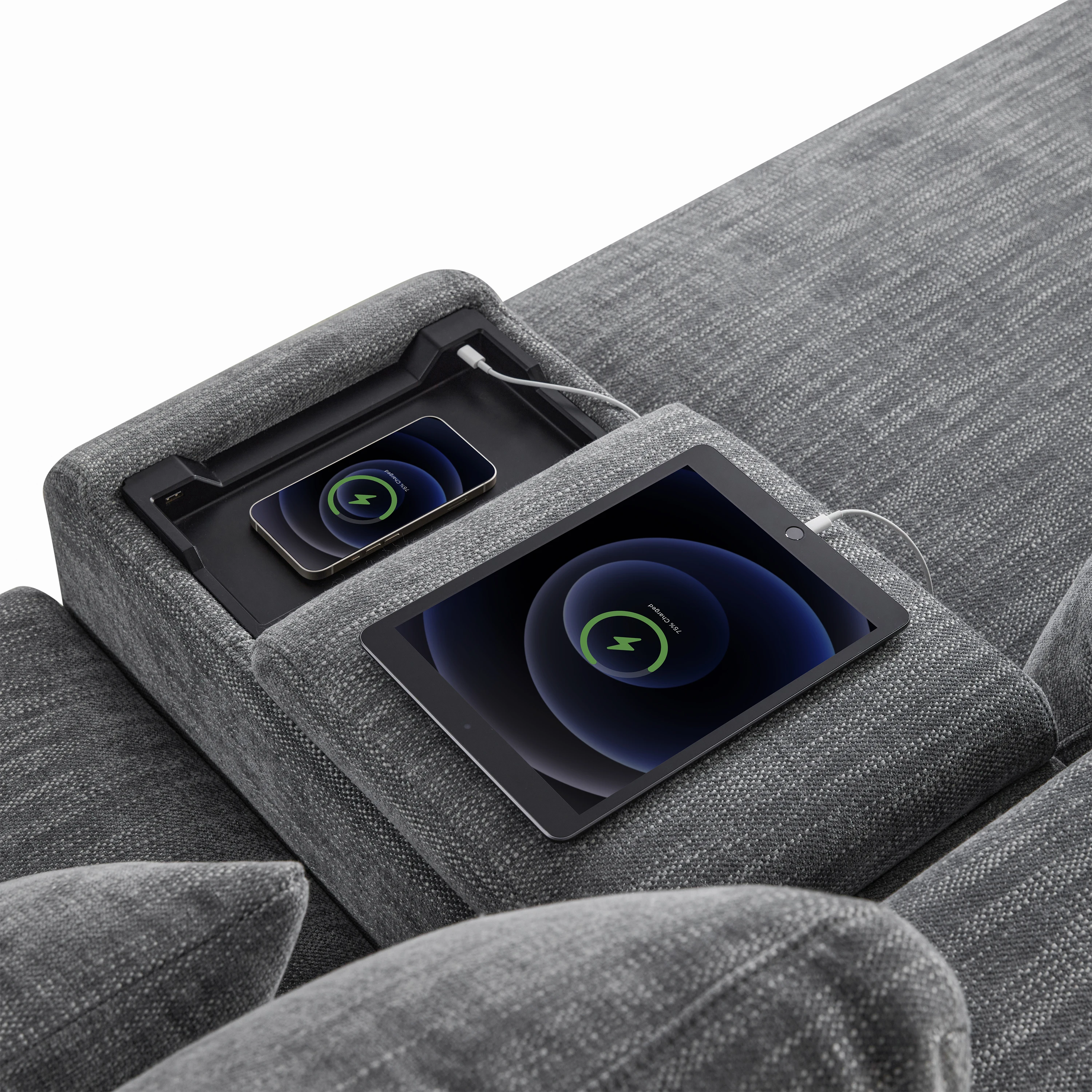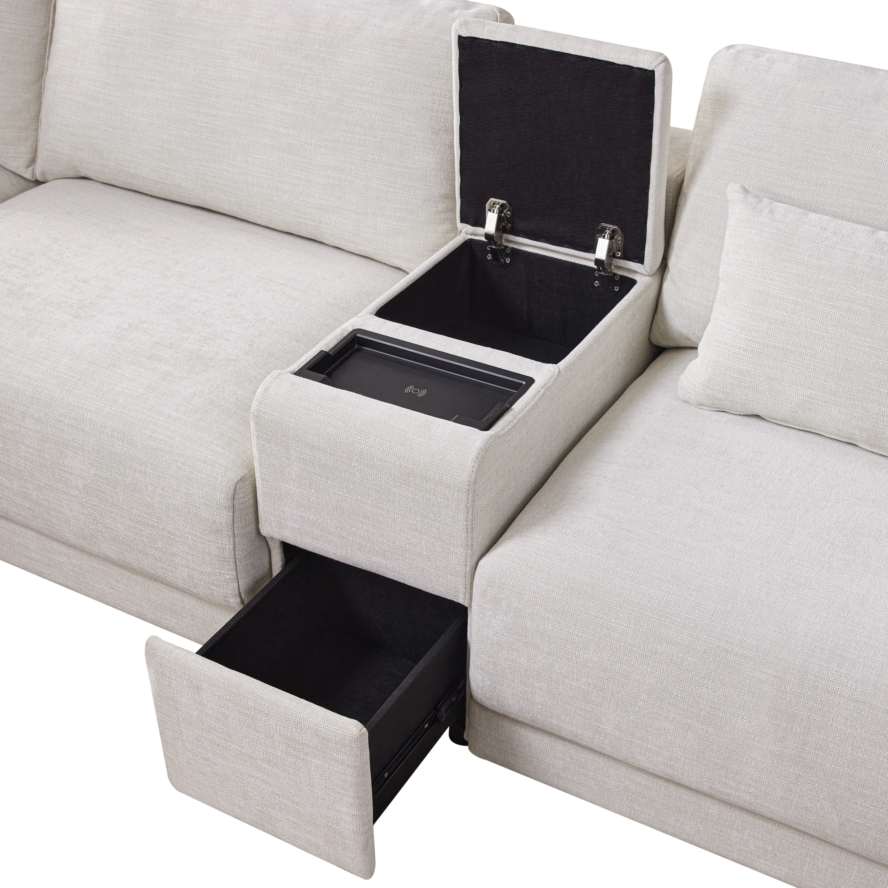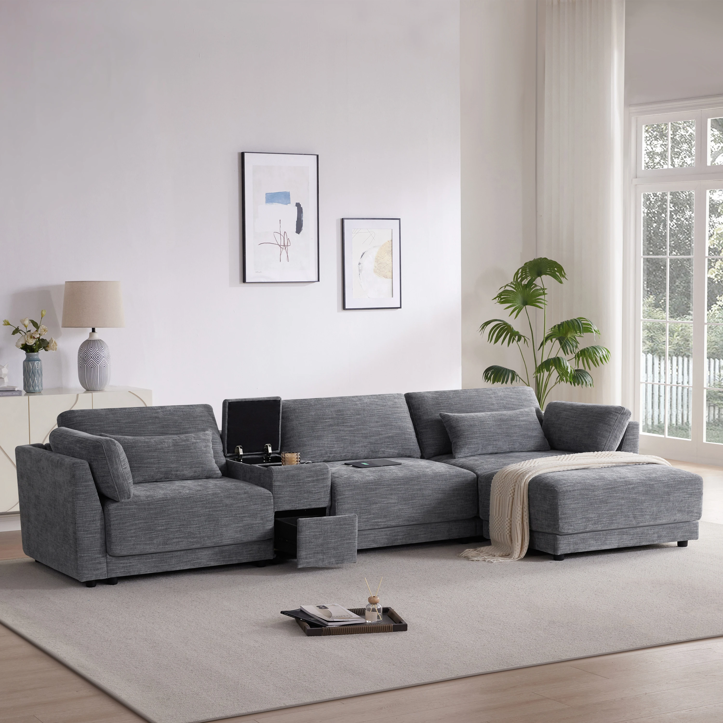 Modular Sectional Sofa with Storage Console and Movable Ottoman,33'' Wide Seat,4 Seat L Shaped Chenille Couch