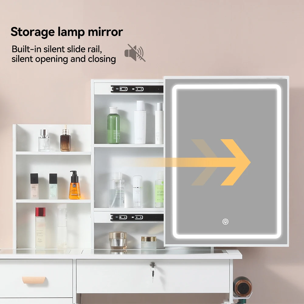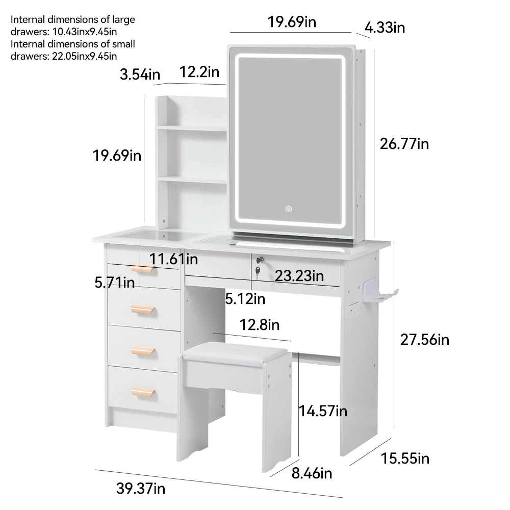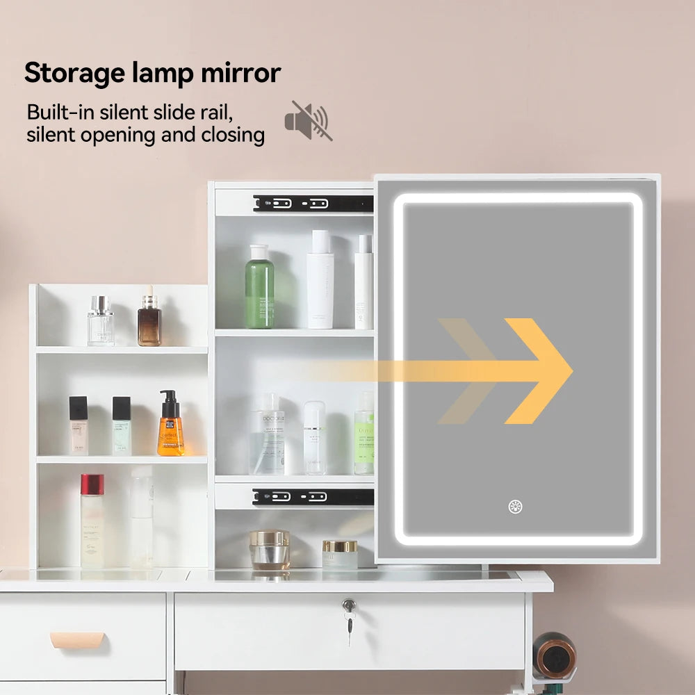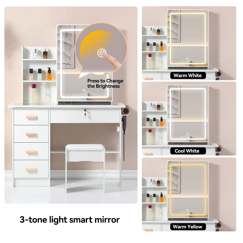 Newly designed smart mirror dressing table with drawers and storage cabinet, dressing table with dressing pad for bedroom
