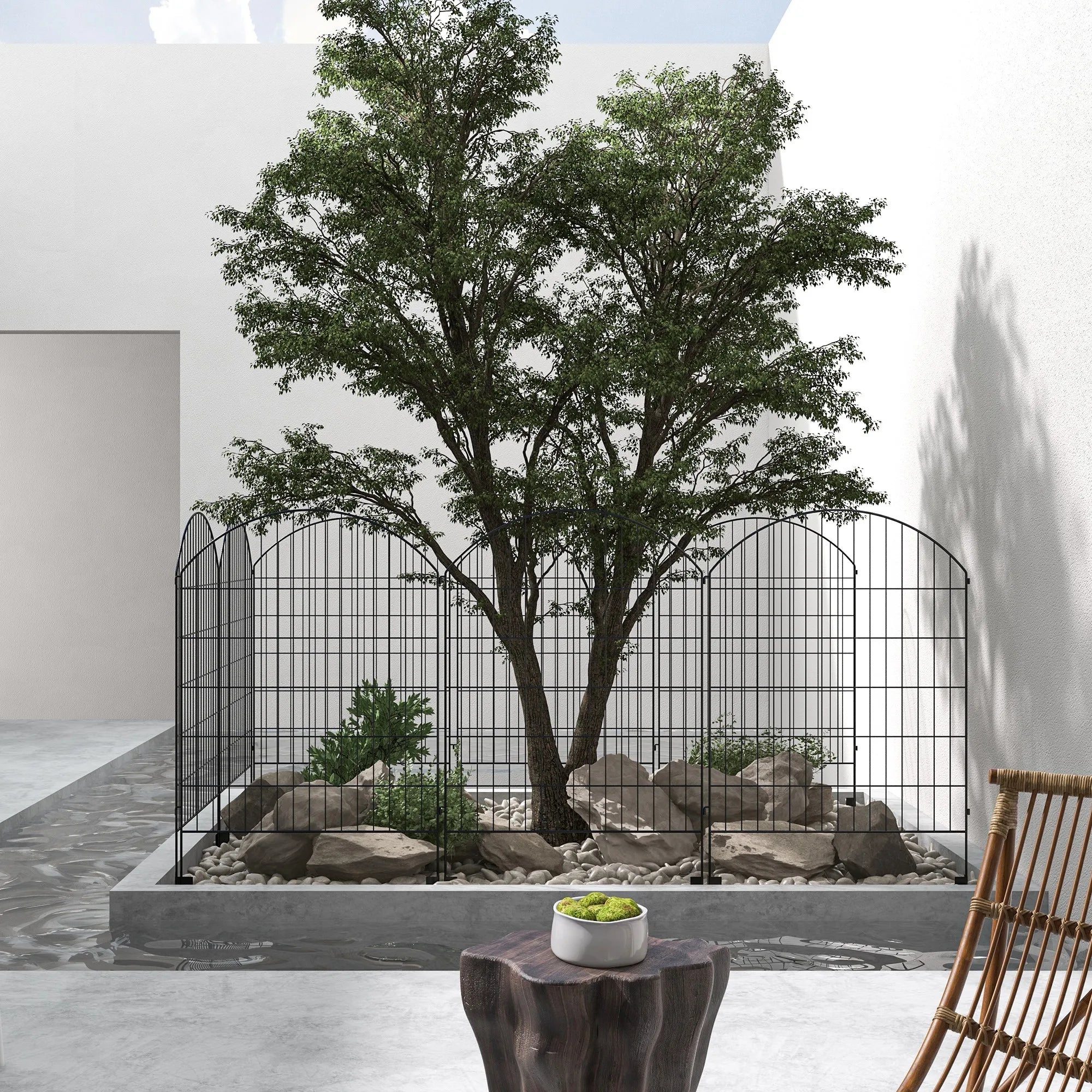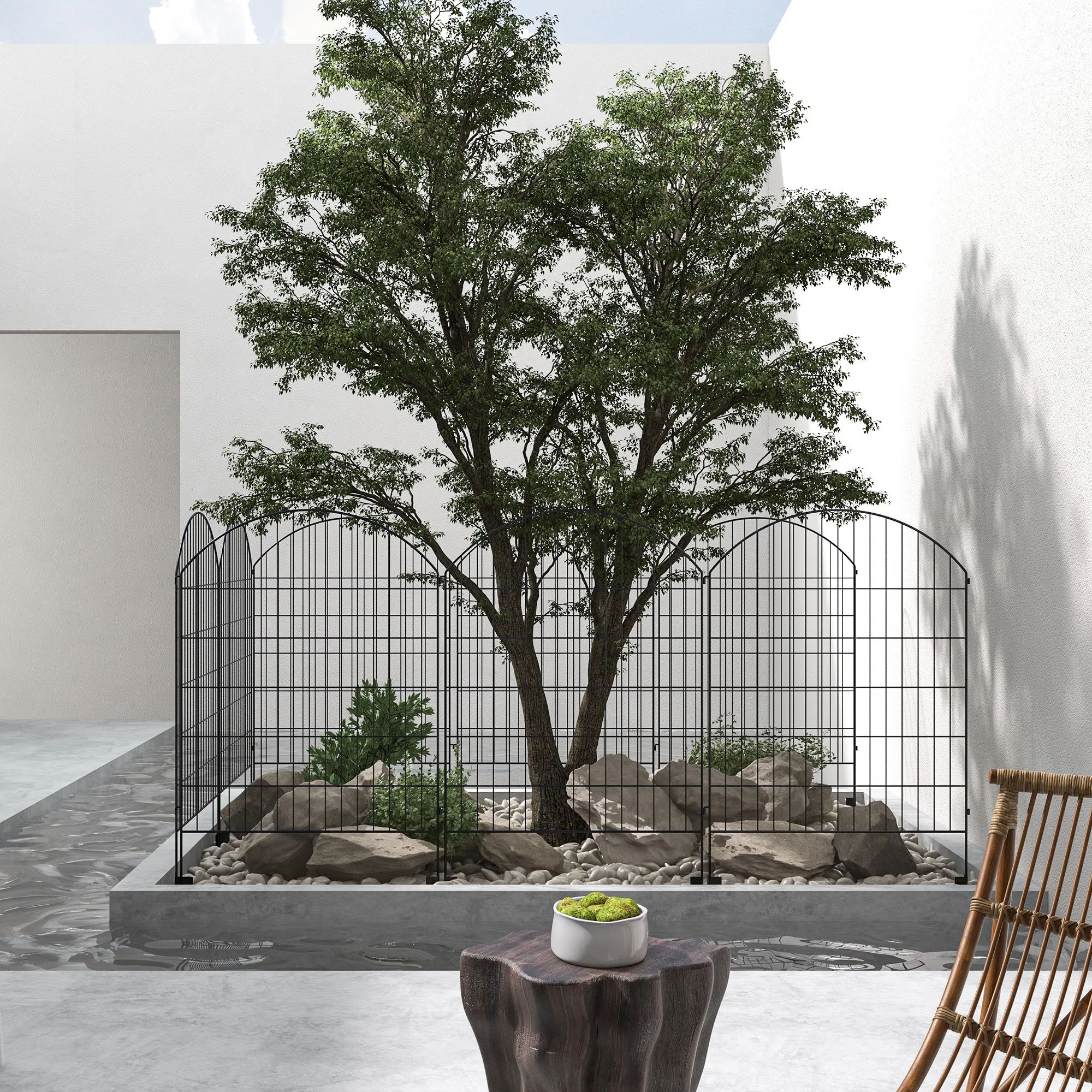 Decorative Garden Fence: These garden border fence panels have a simple grid-based setup. They feature simple black arches to bring a quick decorative touch to your garden.