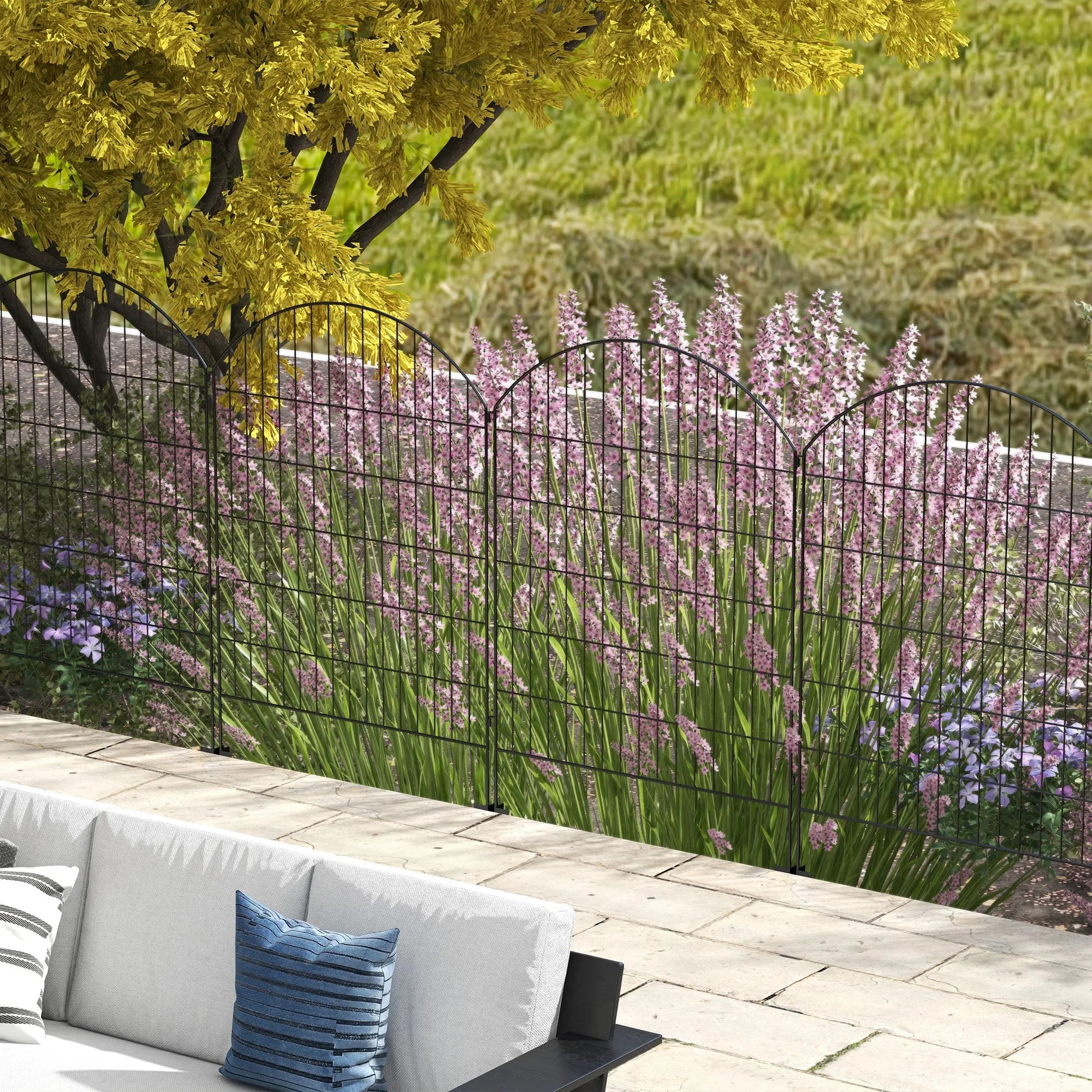 Outsunny Garden Fence, 4 Pack Steel Fence Panels, 11.4' L x 43" H, Rust-Resistant Animal Barrier Decorative Border Flower Edging