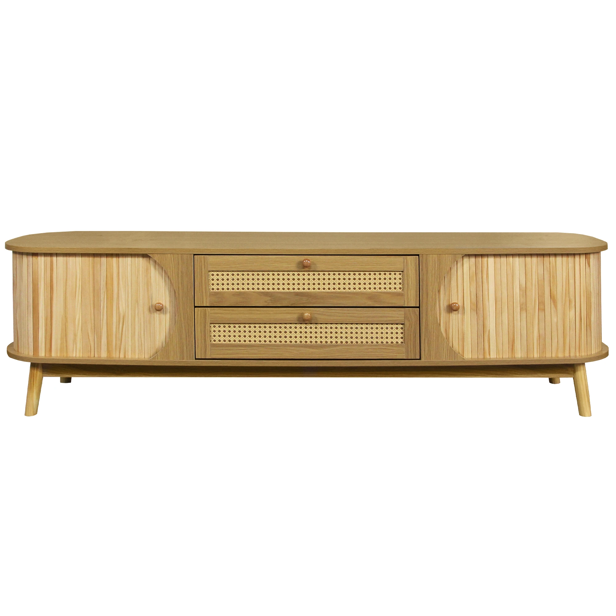 Rattan TV Stand for TVs up to 75'', Modern Farmhouse Media Console, Entertainment Center with Solid Wood Legs