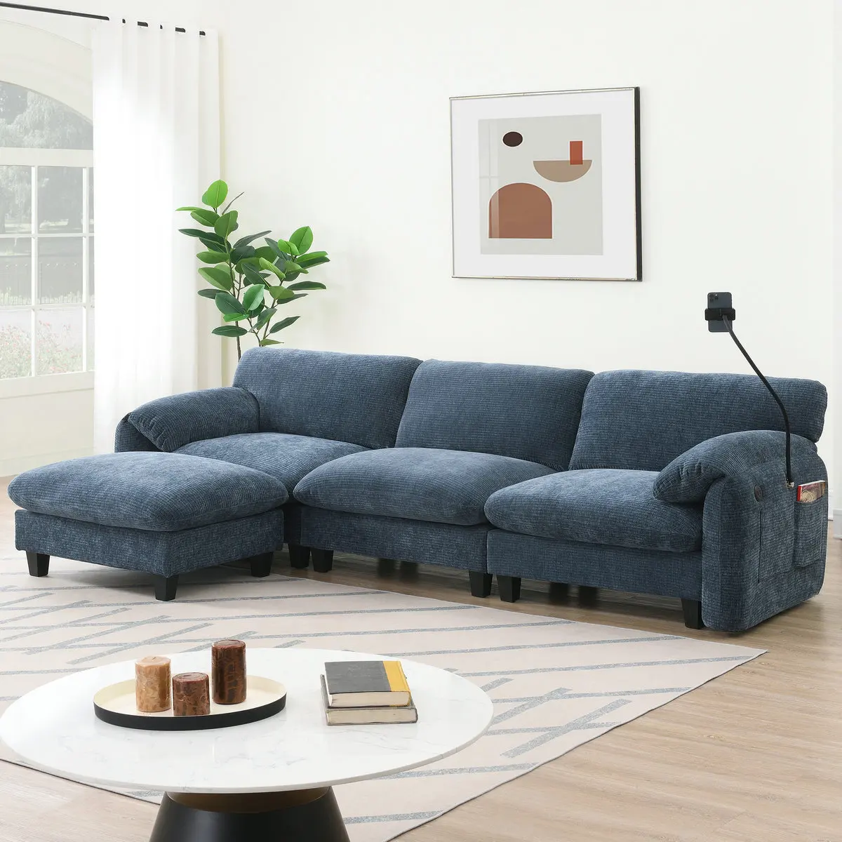 Sectional Sofa, L-Shape with 31.5" Extra-Wide Seat Cushion, USB and Type-C Charger, Phone Holder and 2 Side Storage Pockets.
