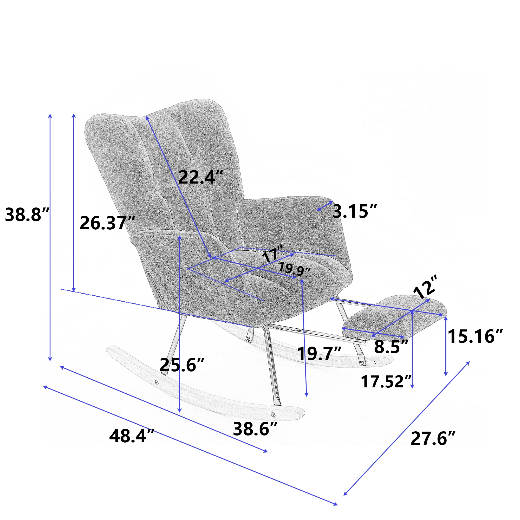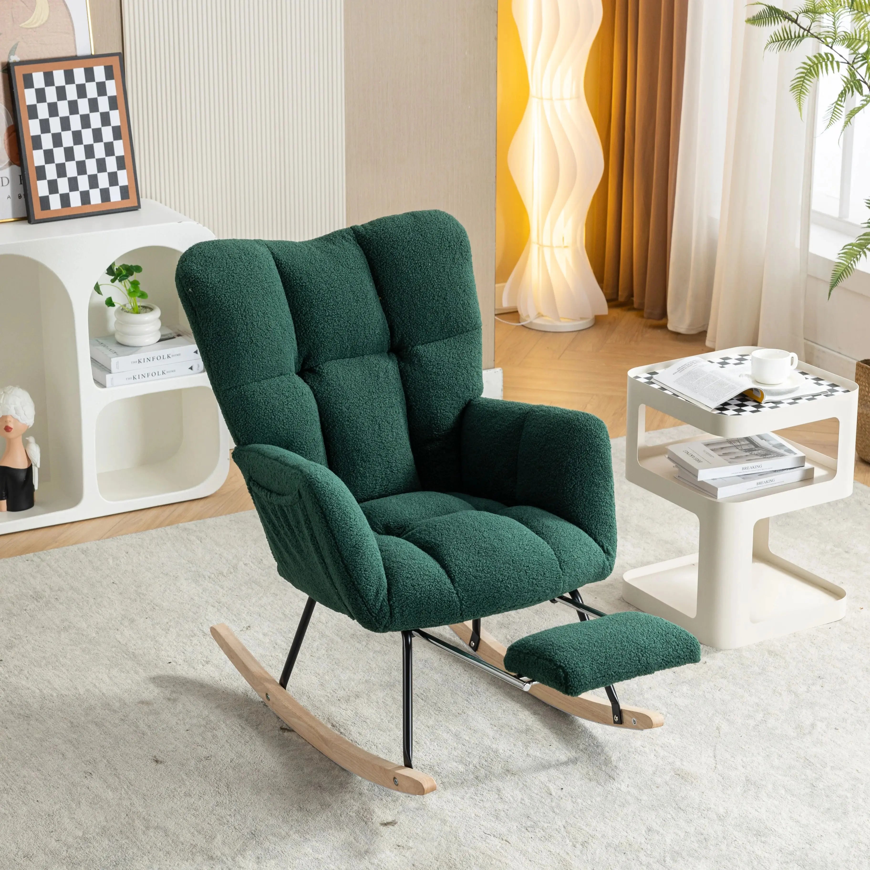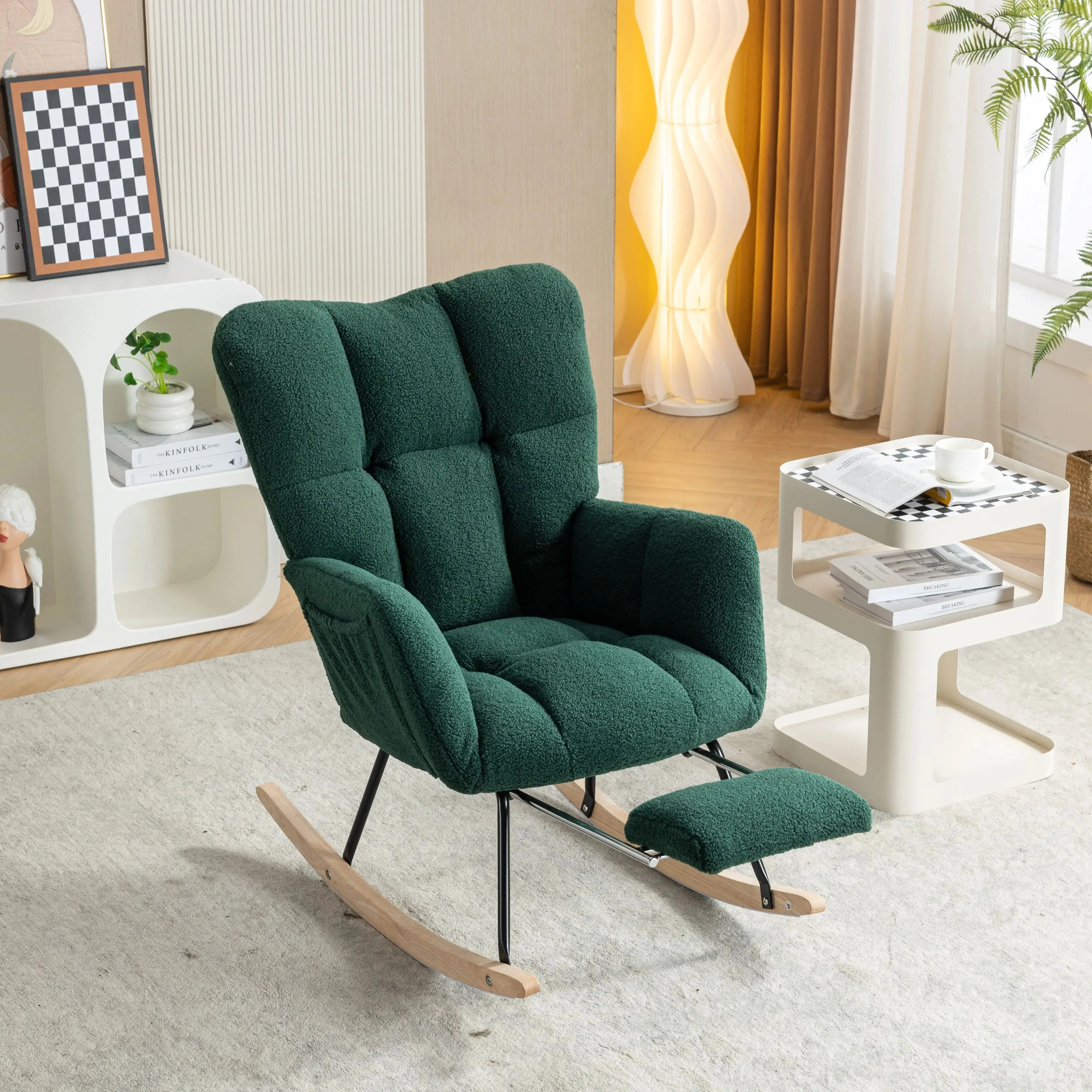 Teddy Fabric Rocking Chair With Adjustable Footrest