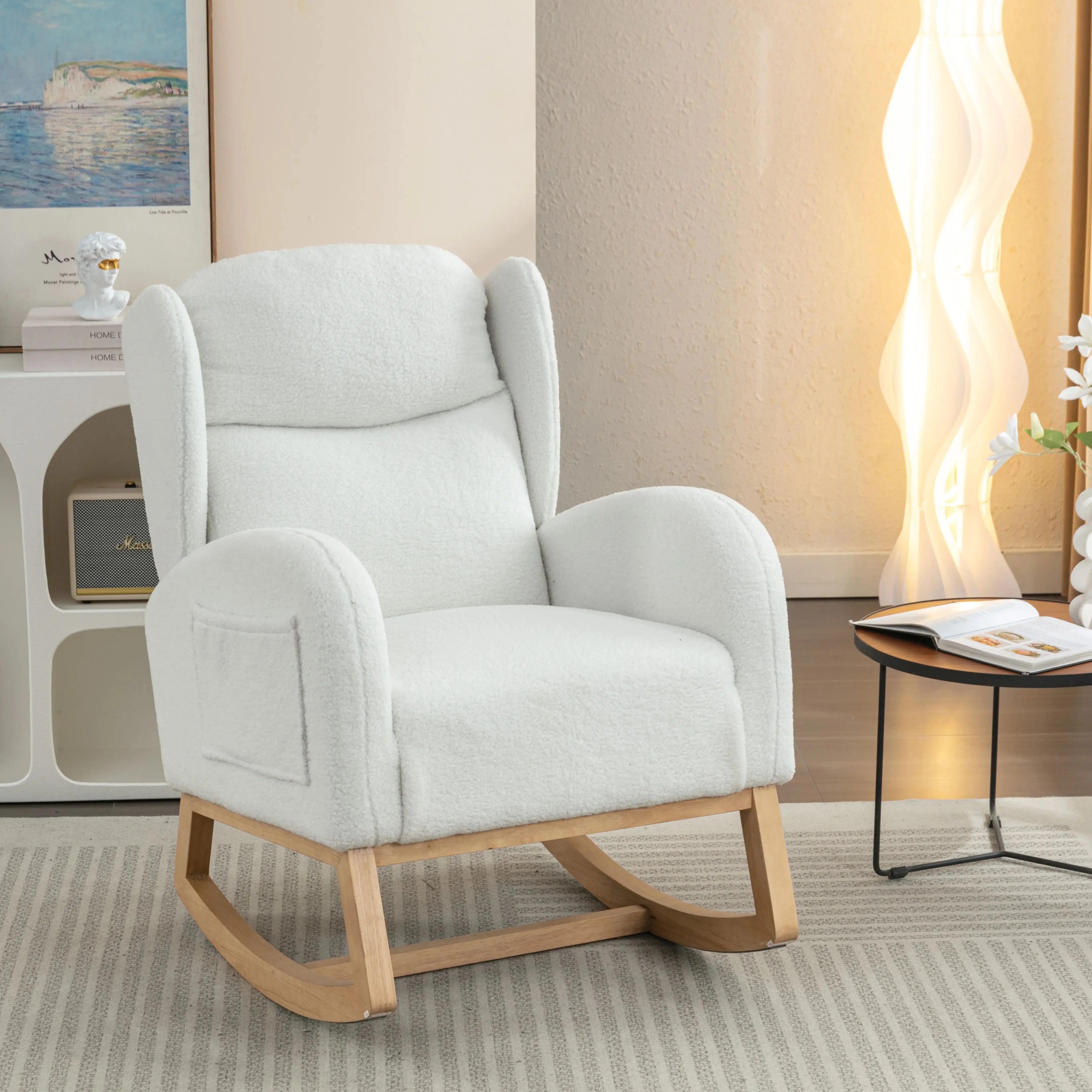 Teddy Fabric Rocking Chair With Packet Wood Legs