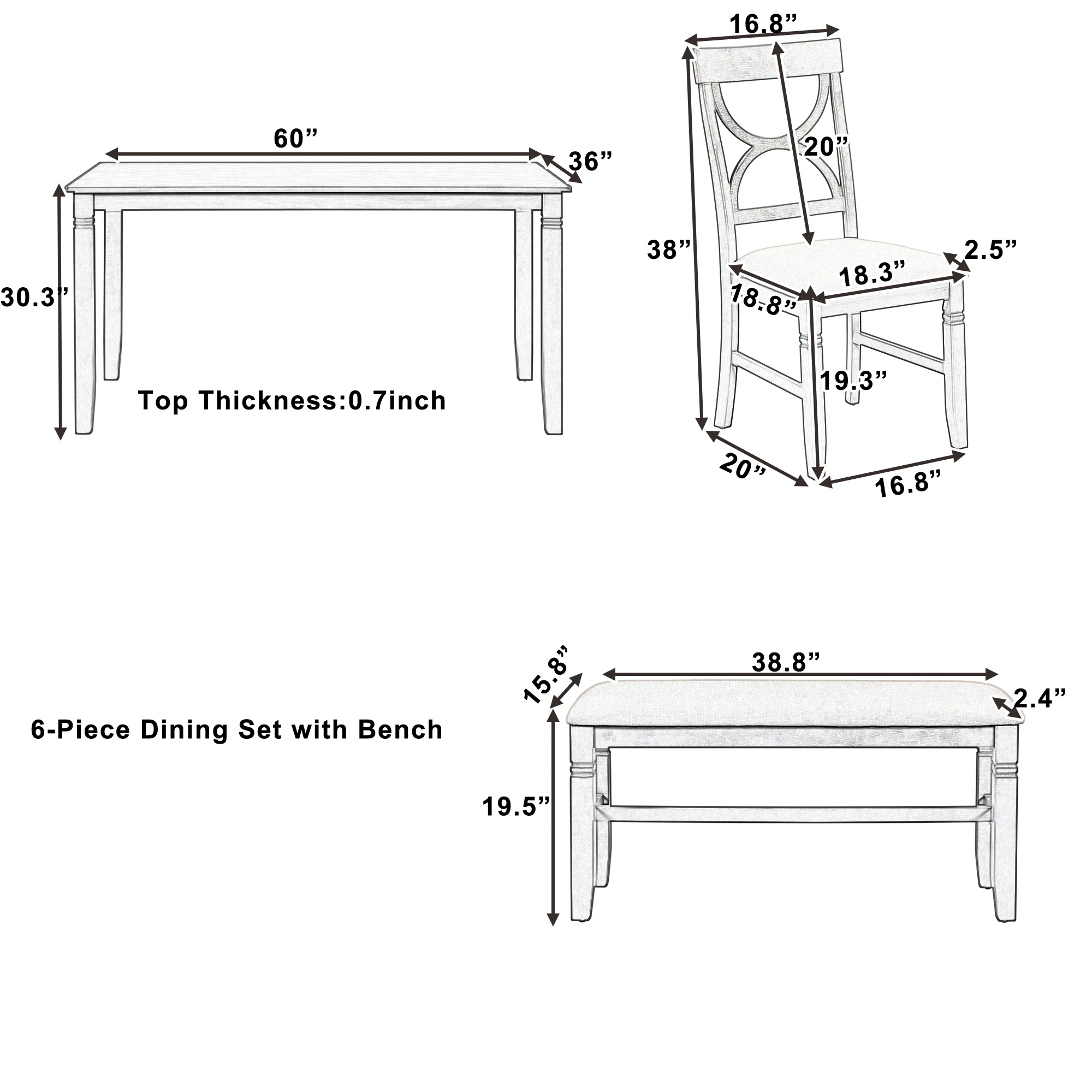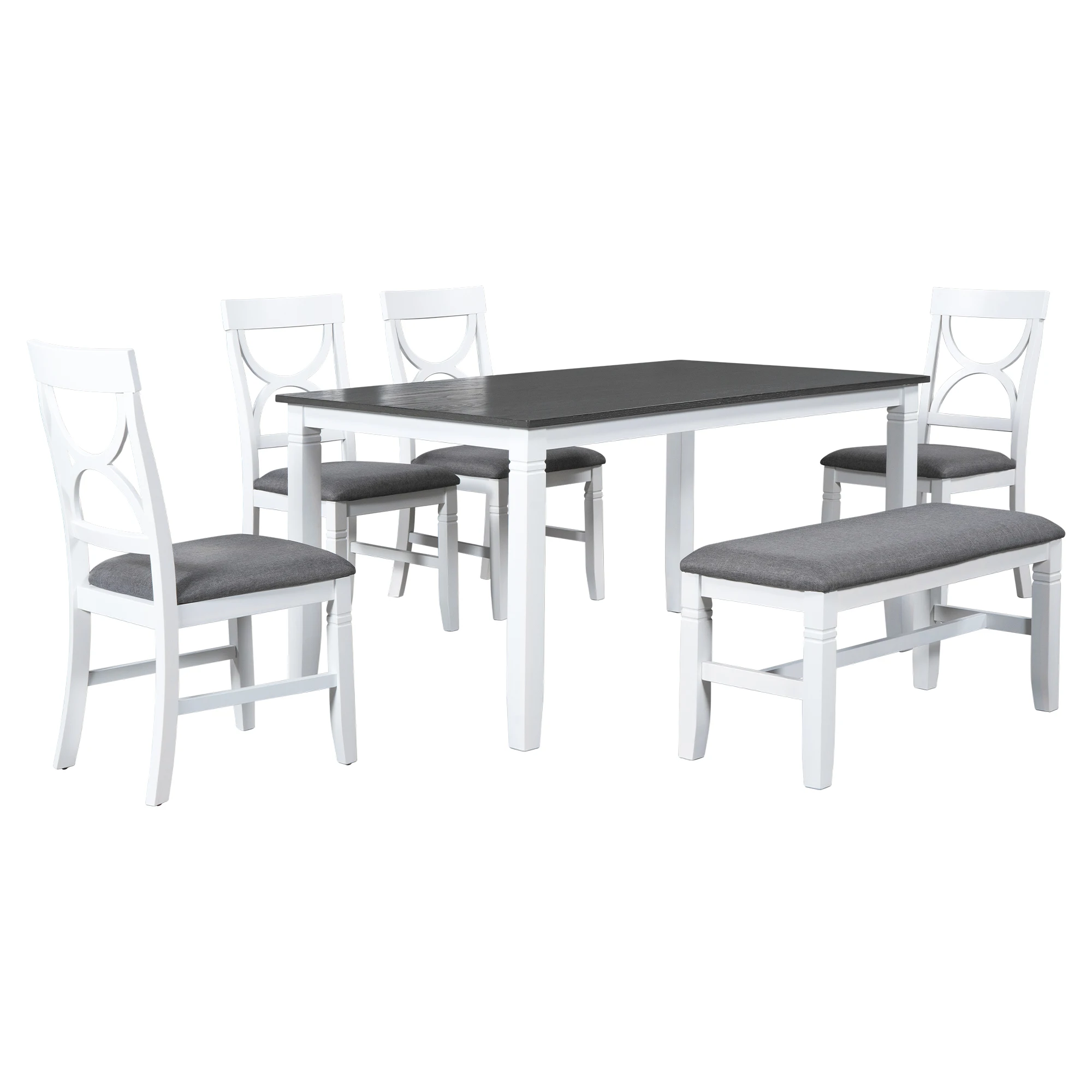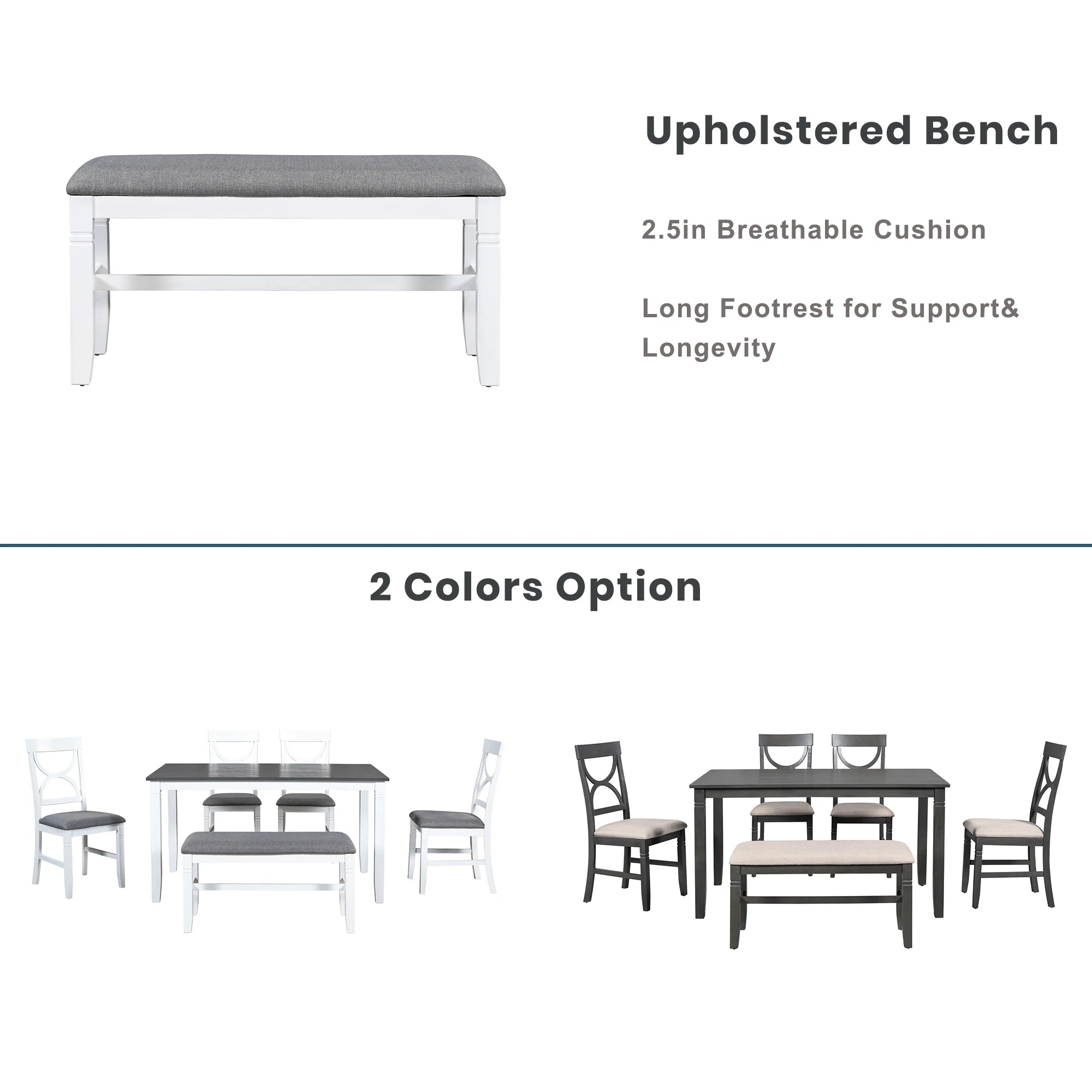 TOPMAX 6-Piece Wood Dining Table Set Kitchen Table Set with Upholstered Bench and 4 Dining Chairs, Farmhouse Style