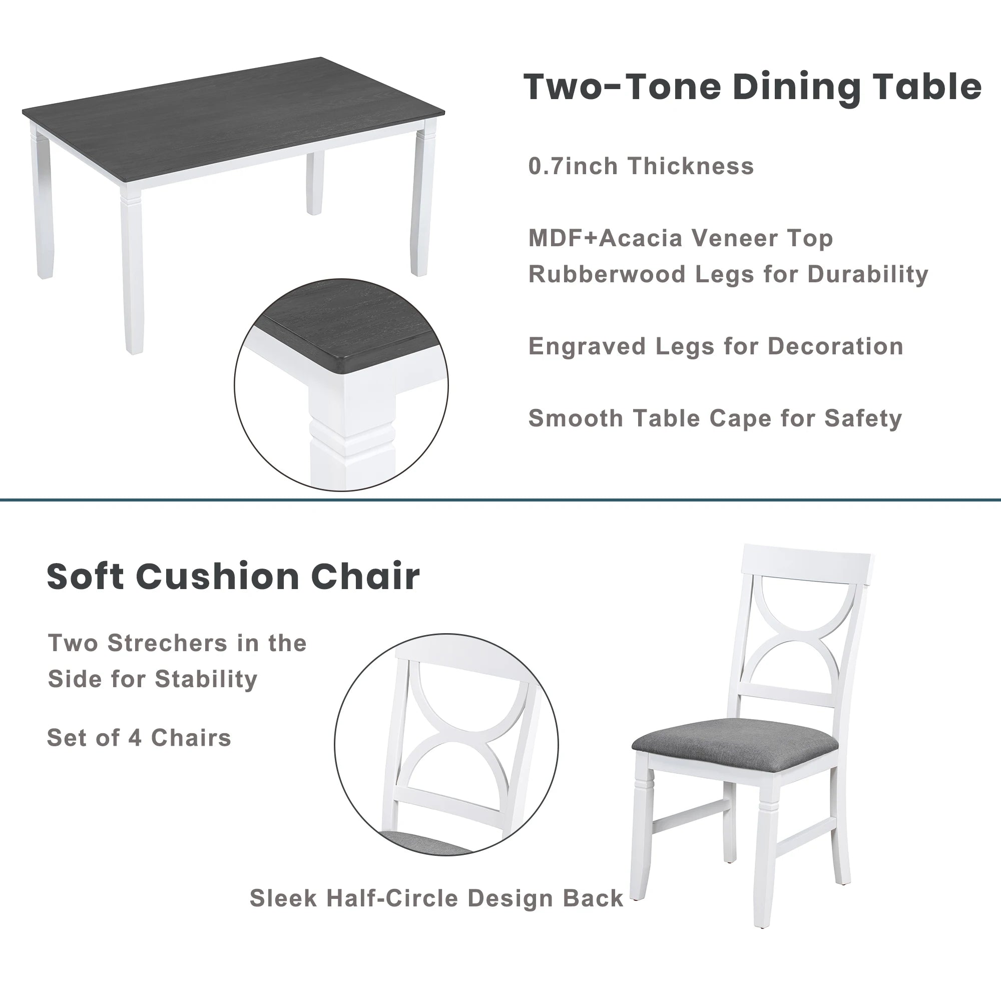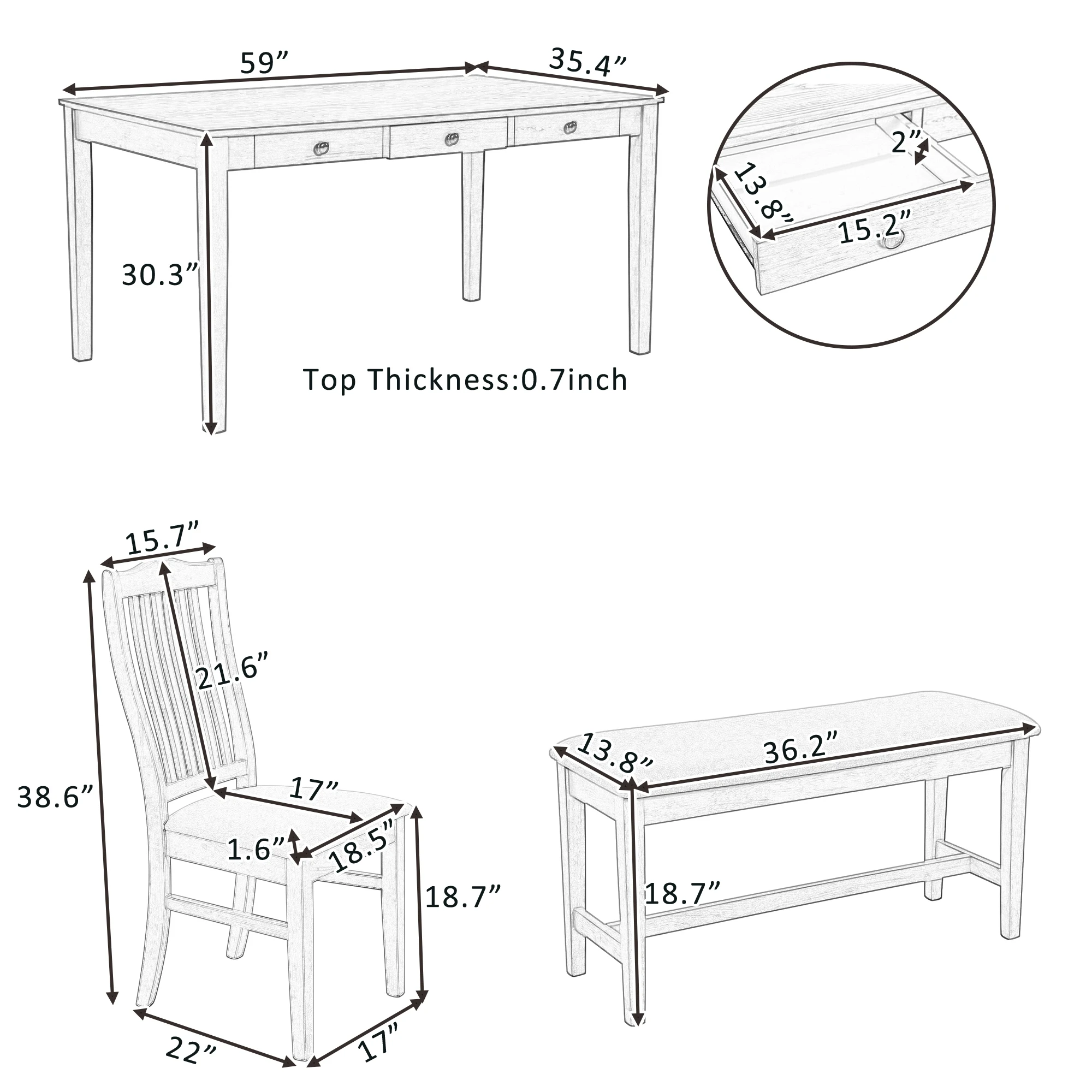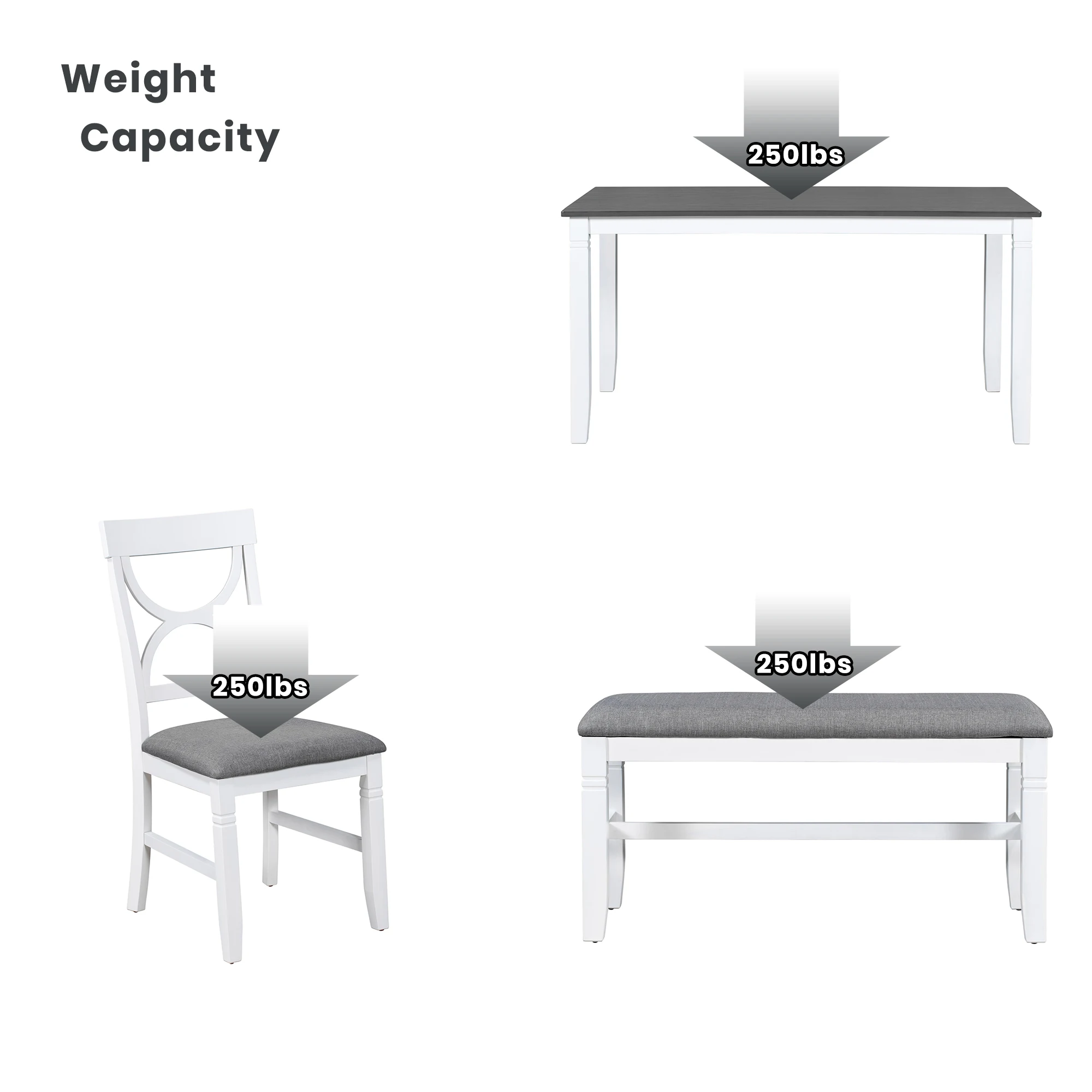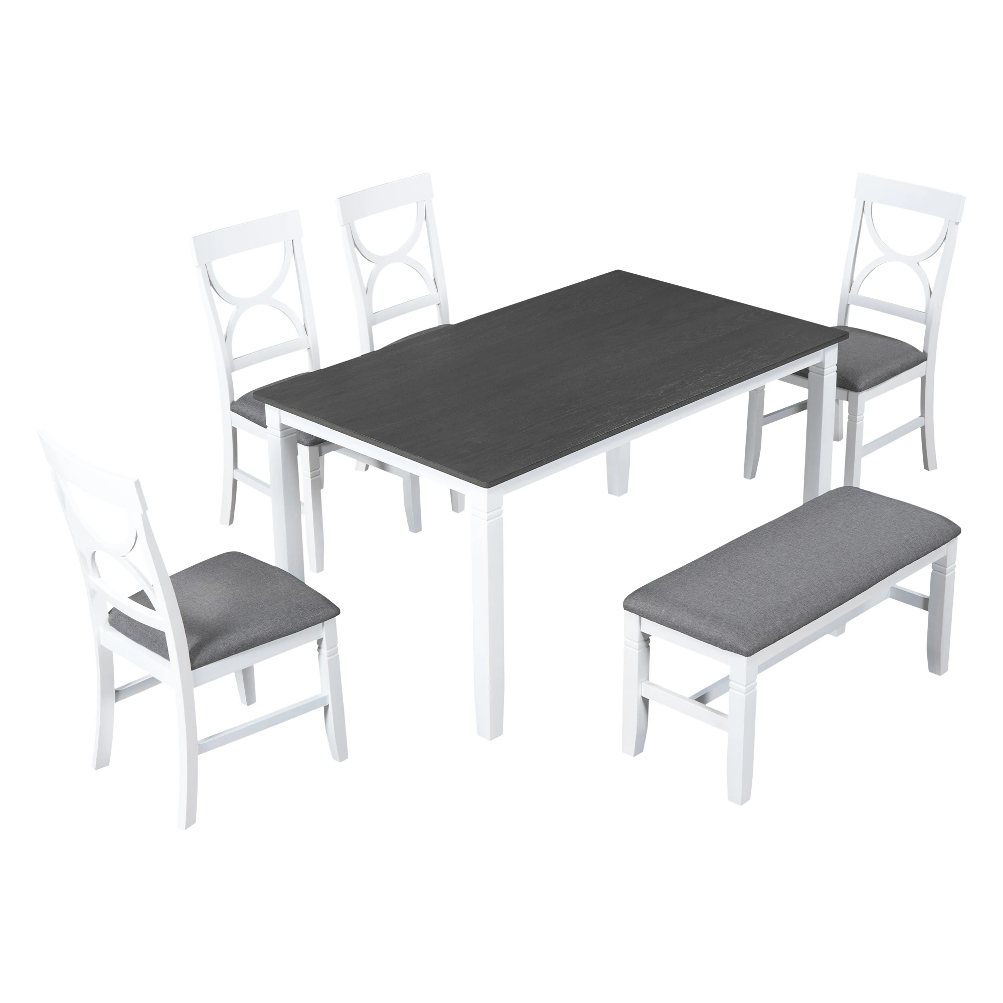 TOPMAX 6-Piece Wood Dining Table Set Kitchen Table Set with Upholstered Bench and 4 Dining Chairs, Farmhouse Style